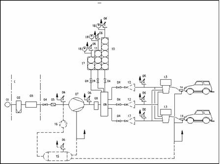 Schema de principiu a unei staţii de distribuţie a GNCV