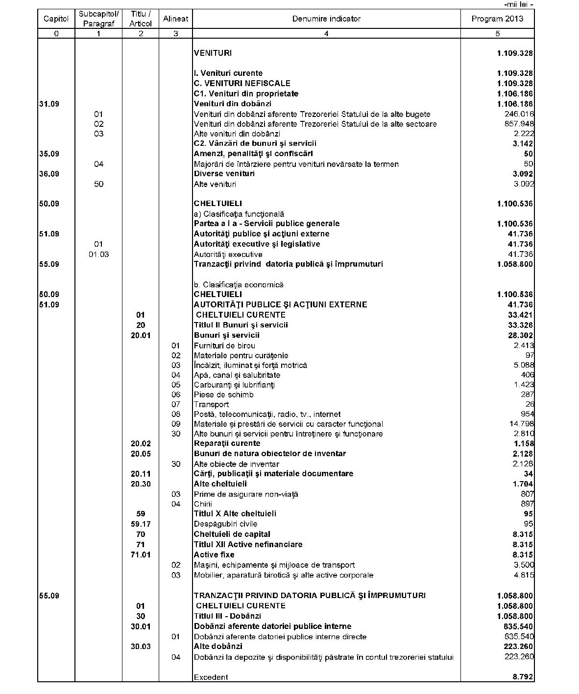 privind aprobarea bugetului Trezoreriei Statului pe anul 2013