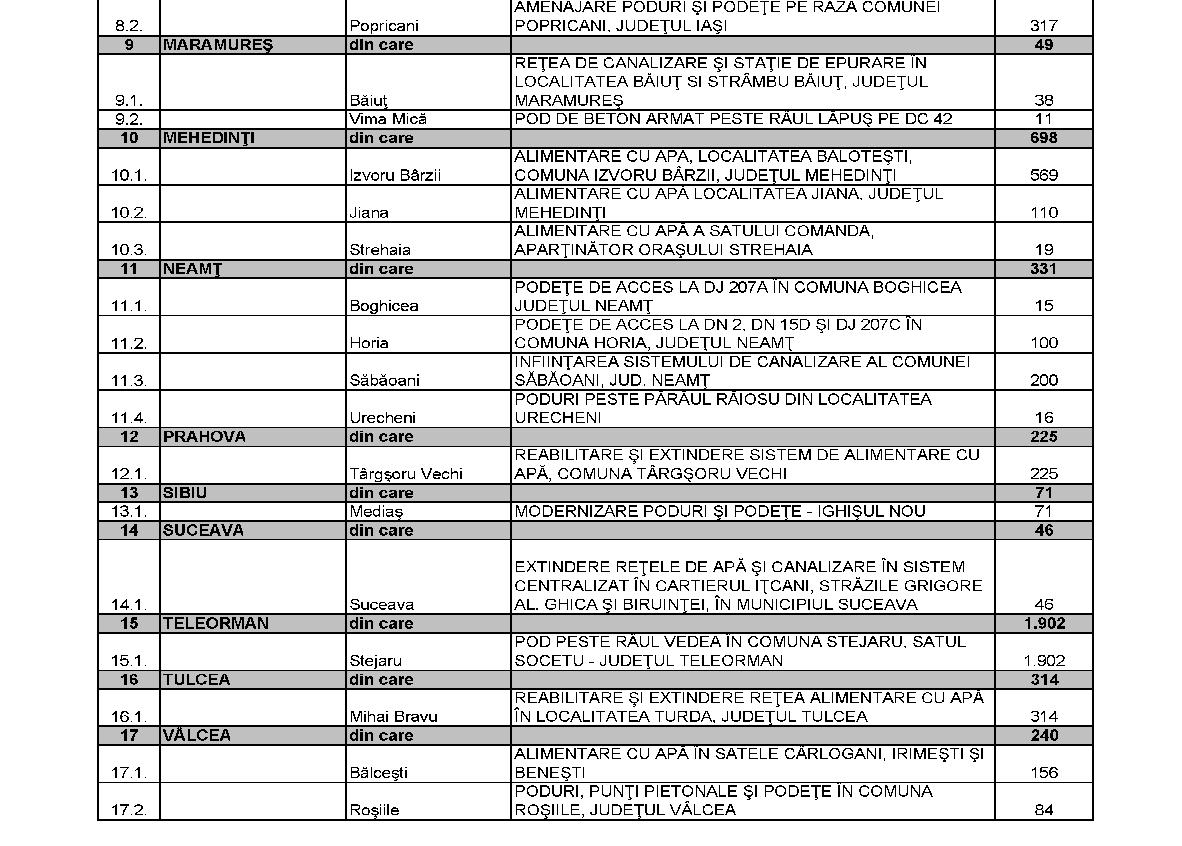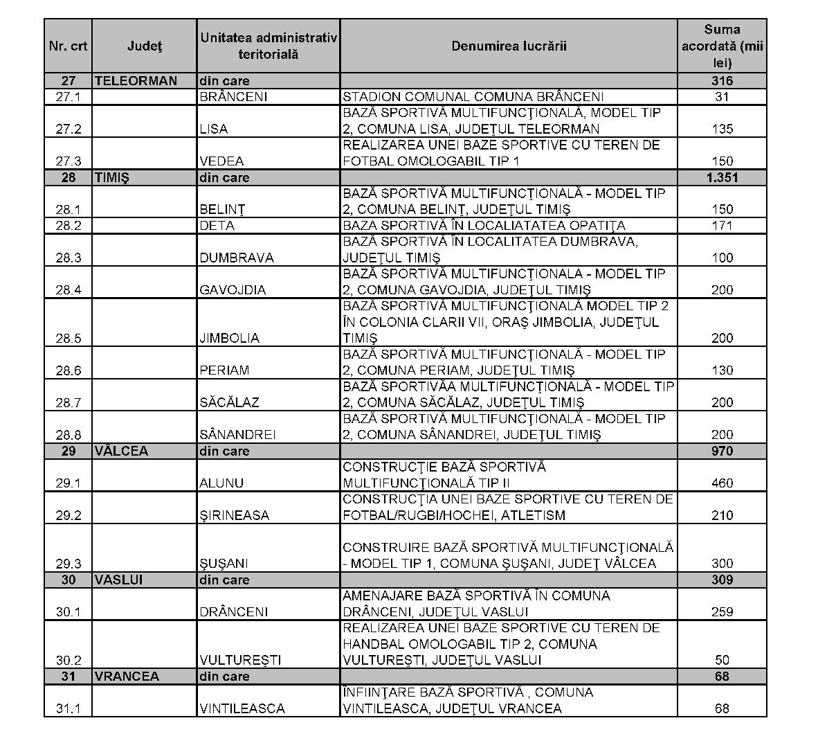 privind repartizarea pe proiecte a sumelor defalcate din taxa pe valoarea adăugată pentru finanţarea Programului de dezvoltare a infrastructurii şi a unor baze sportive din spaţiul rural