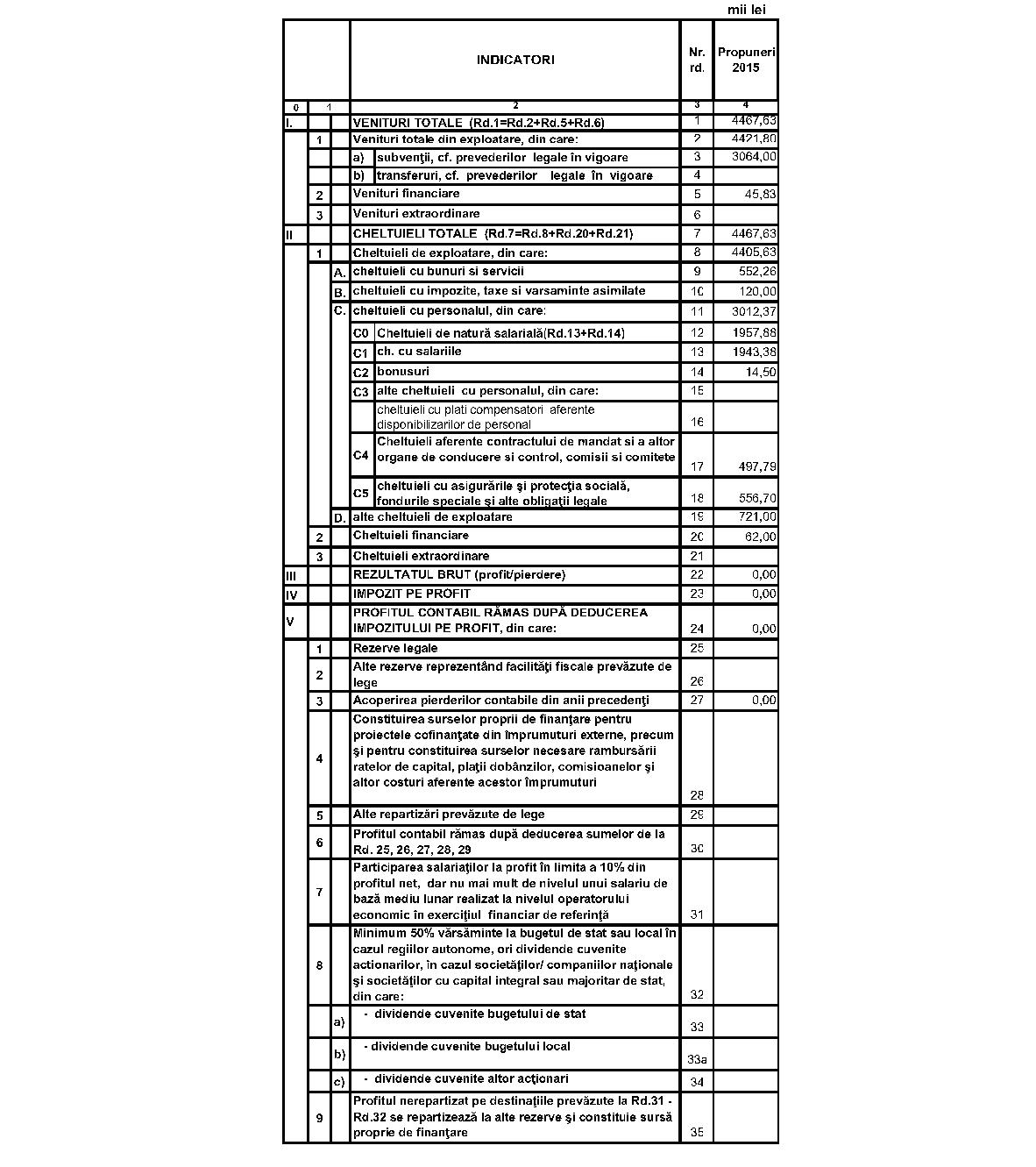 ANEXĂ*)*) Anexa este reprodusă în facsimil.MINISTERUL TRANSPORTURILOR Compania Naţională de Radiocomunicaţii Navale „Radionav“ - S.A. Constanţa, localitatea Agigea, Str. Ecluzei nr. 3 Cod unic de înregistrare: 11121156 BUGETUL DE VENITURI ŞI CHELTUIELI pe anul 2015