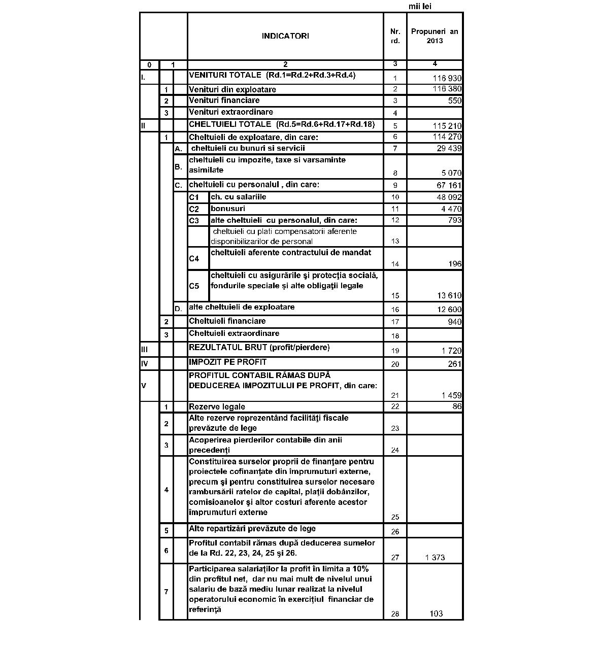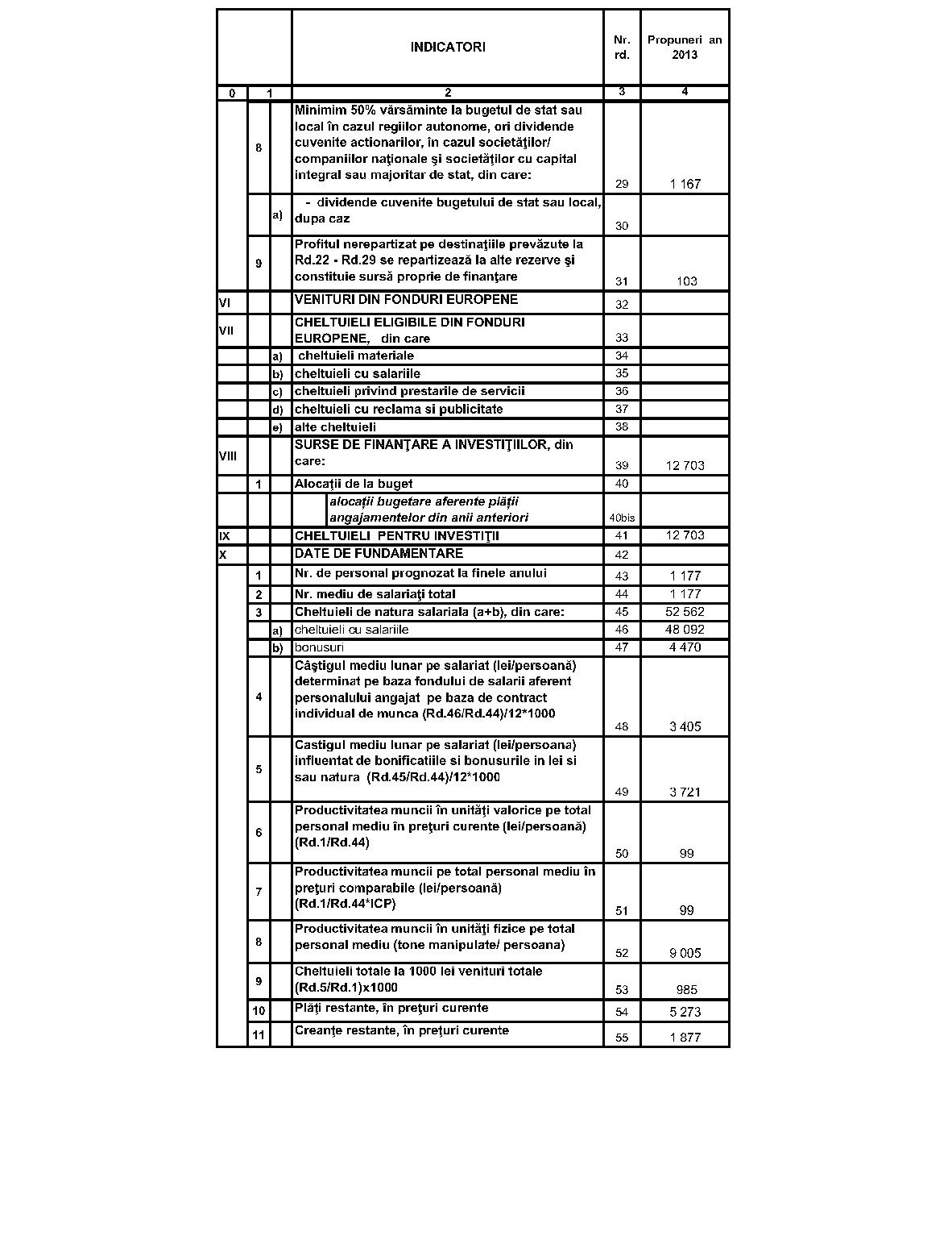 ANEXĂ*)____*) Anexa este reprodusă în facsimil.MINISTERUL ECONOMIEI Operatorul economic: Societatea Comercială „OIL TERMINAL“ - S.A. Constanţa Sediul/Adresa: Str. Caraiman nr. 2, municipiul Constanţa Cod unic de înregistrare: 2410163 BUGETUL DE VENITURI ŞI CHELTUIELI PE ANUL 2013