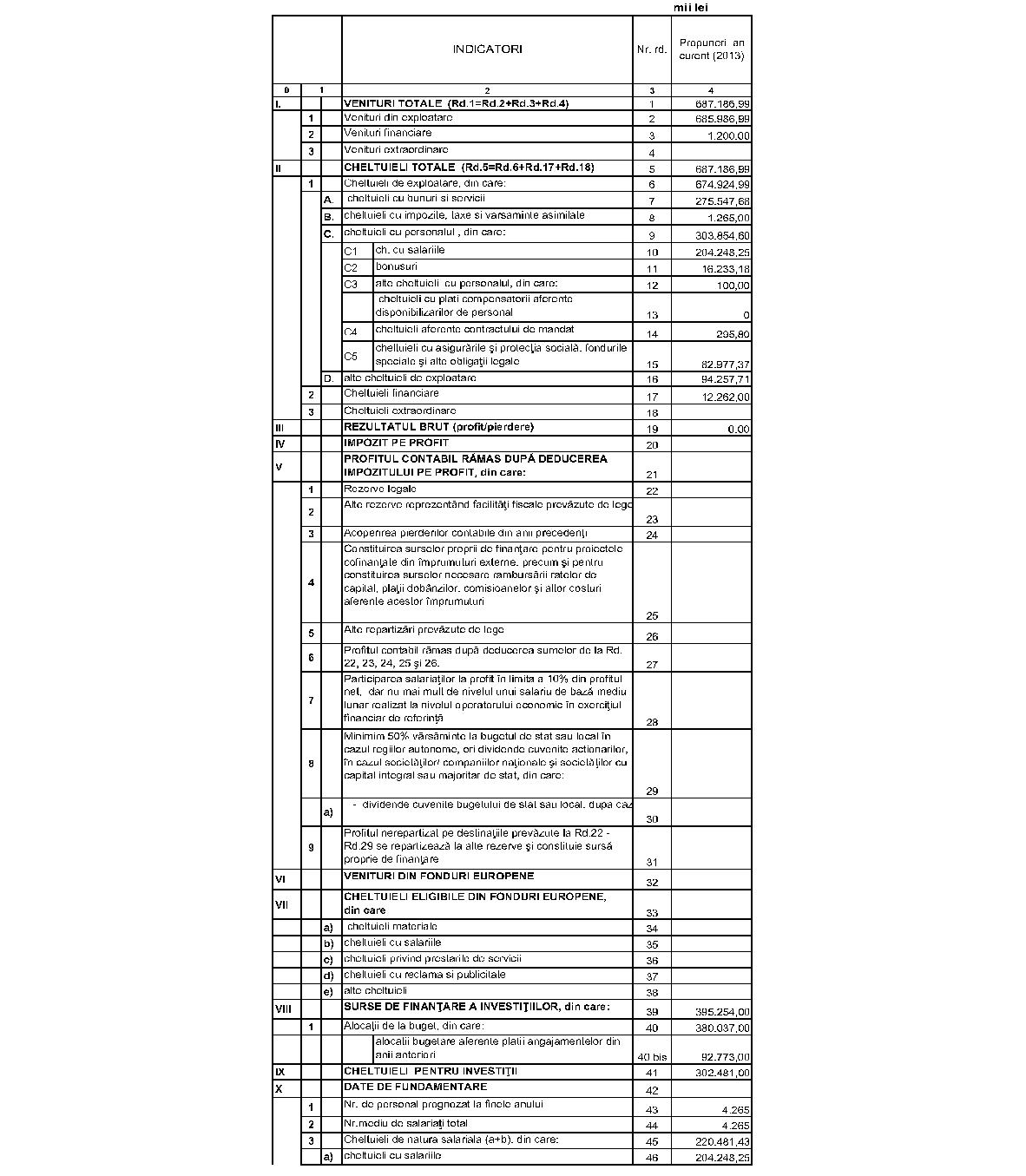 ANEXĂ*)____*) Anexa este reprodusă în facsimil.MINISTERUL TRANSPORTURILOR Societatea Comercială de Transport cu Metroul Bucureşti „METROREX“ - S.A. Cod unic de înregistrare: 13863739 BUGETUL DE VENITURI ŞI CHELTUIELI PE ANUL 2013