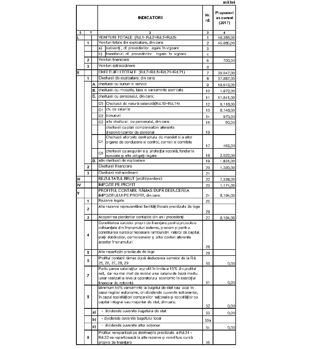 privind aprobarea bugetului de venituri şi cheltuieli pe anul 2017 al Societăţii Naţionale „Aeroportul Internaţional Timişoara - Traian Vuia" - S.A., aflată sub autoritatea Ministerului Transporturilor