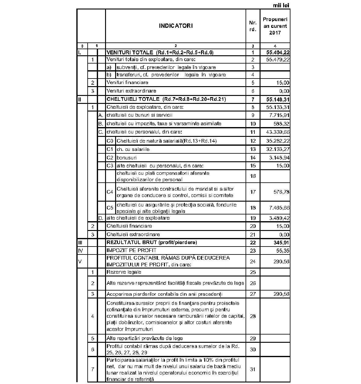 privind aprobarea bugetului de venituri şi cheltuieli pe anul 2017 al Societăţii „Telecomunicaţii C.F.R." - S.A., aflată sub autoritatea Ministerului Transporturilor
