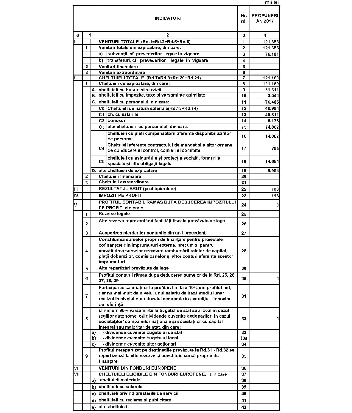 În temeiul art. 108 din Constituţia României, republicată, şi al art. 4 alin. (1) lit. a) din Ordonanţa Guvernului nr. 26/2013 privind întărirea disciplinei financiare la nivelul unor operatori economici la care statul sau unităţile administrativ-teritoriale sunt acţionari unici ori majoritari sau deţin direct ori indirect o participaţie majoritară, aprobată cu completări prin Legea nr. 47/2014, cu modificările şi completările ulterioare,Guvernul României adoptă prezenta hotărâre.ARTICOL UNIC Se aprobă bugetul de venituri şi cheltuieli pe anul 2017 pentru Societatea Naţională de Închideri Mine Valea Jiului - S.A., aflată sub autoritatea Ministerului Energiei, prevăzut în anexa care face parte integrantă din prezenta hotărâre.PRIM-MINISTRUSORIN MIHAI GRINDEANUContrasemnează:p. Ministrul energiei,Doru Vişan,secretar de statMinistrul muncii şi justiţiei sociale,Lia-Olguţa VasilescuMinistrul finanţelor publice,Viorel ŞtefanANEXĂ*)*) Anexa este reprodusă în facsimil.MINISTERULUI ENERGIEI SOCIETATEA NAŢIONALĂ DE ÎNCHIDERI MINE VALEA JIULUI - S.A. BUGETUL DE VENITURI ŞI CHELTUIELI pe anul 2017