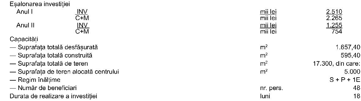 Hotărârea Guvernului nr. 647/2010) INDICATORII TEHNICO-ECONOMICI ai obiectivului de investiţii „Centru de Recuperare şi Reabilitare Neuropsihiatrică Sf. Maria Brâncoveneşti“, din cadrul Proiectului privind incluziunea socială