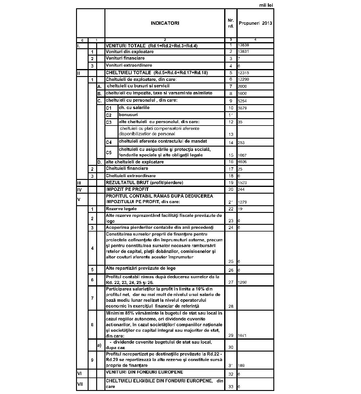 ANEXĂ*)*) Anexa este reprodusă în facsimil.MINISTERUL CULTURII Operatorul economic: Regia Autonomă de Distribuţie şi Exploatare a Filmelor „Româniafilm“ Sediul/Adresa: Bucureşti, Gh. Magheru nr. 12-14 Cod unic de înregistrare: 2351458 BUGETUL DE VENITURI ŞI CHELTUIELI pe anul 2013