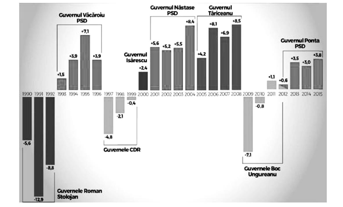 Astăzi, economia României este a 16-a în UE. PIB-ul României este estimat la 761,5 mld. lei în 2016 şi va ajunge, conform propunerilor şi modelului economic prezentat în actualul program de guvernare, la 1.014 mld. lei în 2020. Acest lucru presupune o creştere economică medie, în următorii 4 ani, de 5,5% pe an. Încă din semestrul al doilea al anului 2015, România a intrat pe un trend de creştere economică de peste 5%, ca urmare a măsurilor de impulsionare a investiţiilor publice sau private, reducerii de taxe, dar şi ca urmare a măsurilor de creştere a veniturilor populaţiei. Aşadar, un ritm de 5,5% creştere economică va putea fi atins dacă acest model va fi continuat. Acest lucru implică şi trecerea de la o economie bazată pe eficienţă la o economie bazată pe inovaţie, dar şi depăşirea pragului de 70% din media UE privind PIB-ul pe locuitor raportat la paritatea puterii de cumpărare. Ca urmare a ieşirii Marii Britanii din UE, dar şi a depăşirii PIB-ului din Portugalia şi Grecia, România va avea, în 2020, a 13-a cea mai mare economie din UE, intrând practic pentru prima dată, după 1990, între ţările membre UE aflate în prima jumătate a clasamentului în ceea ce priveşte mărimea economiei naţionale. Toate acestea se vor face respectând criteriile din Tratatul de la Maastricht, şi anume un deficit bugetar mai mic de 3% din PIB şi o datorie publică mai mică de 60% din PIB. Încredere Guvernarea noastră va renunţa la acel complex pe care multe guvernări în România l-au avut, şi anume că sunt unele lucruri care nu se pot face în ţara noastră, deşi foarte multe state le-au făcut cu mult înainte şi cu rezultate foarte bune. Avem încredere, aşadar, să spunem că, pornind de la experienţa unor state precum Norvegia, Franţa, Italia sau Polonia, vom înfiinţa un Fond Suveran de Dezvoltare şi Investiţii (FSDI). Acesta va fi alcătuit, în principal, din companiile de stat profitabile, a cărui valoare va depăşi 10 mld. €. Fondul se va putea folosi de veniturile din privatizări, din dividende ale acestor companii, precum şi din veniturile provenite din emisiuni de obligaţiuni sau din vânzarea de active neperformante (case de odihnă, hoteluri - aparţinând unor companii al căror obiect de activitate este cu totul altul). Scopul fondului va fi de a dezvolta sau construi de la zero afaceri în domenii prioritare pentru statul român, care să se susţină economic (deci cu un anumit grad de profitabilitate), singur sau împreună cu alte fonduri de investiţii sau investitori privaţi. Estimăm că 10 mld. € vor intra în economia României în următorii 4 ani prin FSDI. Fondul va duce, printre altele, la apariţia a numeroase fabrici în agricultură şi industrie, dar şi la capitalizarea unor firme precum Tarom, CFR, Şantierul Naval Constanţa, C.E.C., Nuclearelectrica, astfel încât acestea să-şi poată extinde activitatea sau, după caz, să achiziţioneze noi capacităţi: flotă de avioane, de nave, de garnituri de tren. Cele mai mari investiţii ale FSDI în următorii 4 ani se vor realiza în sănătate, prin construcţia unui spital republican şi a 8 spitale regionale. Valoarea totală finanţată din FSDI este estimată la 3,5 mld. €. Alte 3 mld. € vor viza construcţia de autostrăzi şi căi ferate rapide, având prioritate autostrăzile care nu pot fi finalizate sau demarate din fonduri europene până în 2020. FSDI, împreună cu alte bănci internaţionale, BEI, BERD şi Banca Mondială, care şi-au exprimat deja interesul în discuţiile pe care le-am avut, va construi în parteneriat public-privat autostrăzi, pe care le va deţine pentru o perioadă de 30 ani şi care vor fi cedate înapoi statului român, pe măsură ce bugetul de stat va avea disponibilităţi pentru a le răscumpăra. Proiectele principale asupra cărora finanţatorii şi-au arătat interesul sunt acelea care se susţin economic. Spre exemplu, cele care au un trafic care să susţină necesitatea unei autostrăzi, pentru a concura cu proiecte propuse de state vecine. Sunt cinci autostrăzi care respectă aceste criterii, dintre care una, Piteşti-Craiova, este prevăzută a se finaliza pe fonduri europene până în anul 2021. Celelalte patru, dacă nu vor fi finanţate de la buget, vor fi lansate prin aceste fonduri: o autostradă care să străbată munţii între Transilvania şi Moldova (Târgu Mureş-Iaşi), o a 2-a autostradă prin sudul României, care să unească Transilvania cu Oltenia şi Ţara Românească (Timişoara-Bucureşti), a 3-a, care să străbată munţii de pe Valea Prahovei (Comarnic-Braşov) şi o a 4-a care să unească Moldova cu Ţara Românească (Iaşi-Bucureşti). În ceea ce priveşte calea ferată rapidă, finanţarea prioritară se va face pentru refacerea căii ferate şi modernizarea acesteia, astfel încât să avem în România trenuri care circulă cu viteze de peste 100 km/h, din direcţia Vest-Bucureşti, Chişinău-Iaşi-Bucureşti, Bucureşti-Constanţa, Bucureşti-Braşov. O altă industrie dezvoltată prin FSDI va fi cea de armament, prin extinderea capacităţilor fabricilor existente. Deşi bugetul de stat se va diminua iniţial cu 2,6 mld. lei, bani care nu se vor mai încasa din dividendele companiilor de stat, datorită activităţii economice puternice a FSDI, se vor încasa la buget sume din taxe şi impozite de aproximativ 9 mld. lei. În acest fel, în 2020, surplusul anual adus la bugetul de stat de către FSDI va fi de cel puţin 6 mld. lei. Avem încredere că vom reuşi să sprijinim crearea a 850.000 de noi locuri de muncă, asta şi pentru că în primele 4 luni ale anului 2017 am reuşit să sprijinim crearea a 128.000 de noi locuri de muncă. Mizăm pe 50.000 de noi locuri de muncă în construcţii şi ca urmare a propunerii noastre de reducere a TVAului pentru vânzarea de locuinţe (5% pentru locuinţele cu o suprafaţă mai mică de 120 mp). Al