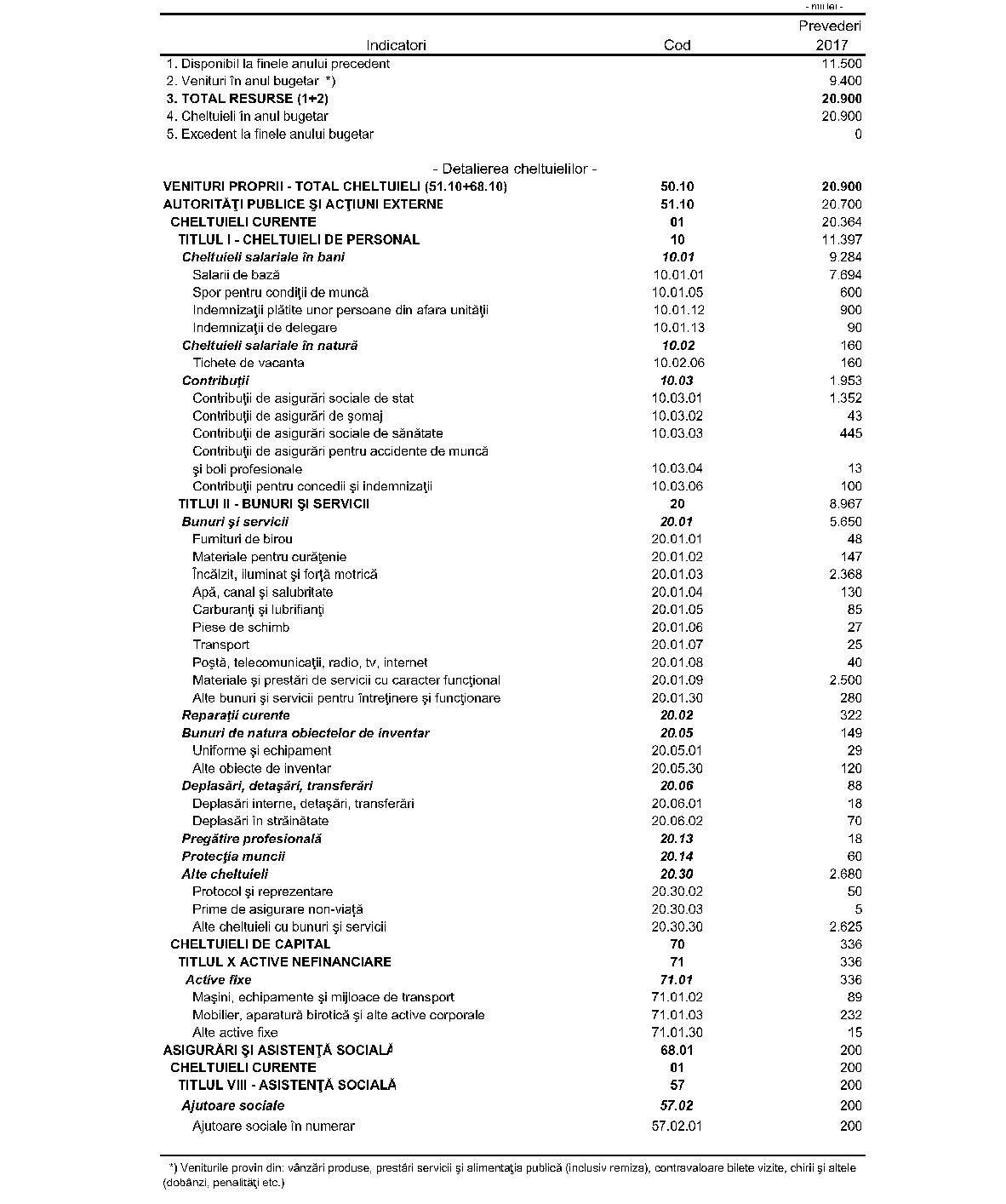 (3) Detalierea bugetului pe anul 2017 este prezentată în anexa nr. 1.