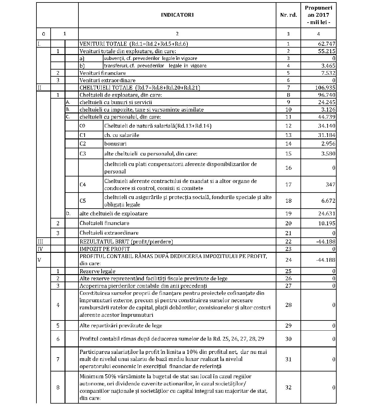 În temeiul art. 108 din Constituţia României, republicată, şi al art. 4 alin. (1) lit. a) din Ordonanţa Guvernului nr. 26/2013 privind întărirea disciplinei financiare la nivelul unor operatori economici la care statul sau unităţile administrativ-teritoriale sunt acţionari unici ori majoritari sau deţin direct ori indirect o participaţie majoritară, aprobată cu completări prin Legea nr. 47/2014, cu modificările şi completările ulterioare,Guvernul României adoptă prezenta hotărâre.ARTICOL UNIC Se aprobă bugetul de venituri şi cheltuieli pe anul 2017 pentru Societatea ROMAERO - S.A., aflată sub autoritatea Ministerului Economiei, prevăzut în anexa care face parte integrantă din prezenta hotărâre.PRIM-MINISTRUMIHAI TUDOSE Contrasemnează:Ministrul economiei,Gheorghe Şimonp. Ministrul finanţelor publice,Daniela Pescaru,secretar de statp. Ministrul muncii şi justiţiei sociale,Adrian Marius Rîndunică,secretar de statANEXĂ*)*) Anexa este reprodusă în facsimil. MINISTERUL ECONOMIEI Societatea ROMAERO - S.A. Bd. Ficusului nr. 44 Cd unic de înregistrare 1576401 BUGETUL DE VENITURI ŞI CHELTUIELI pe anul 2017