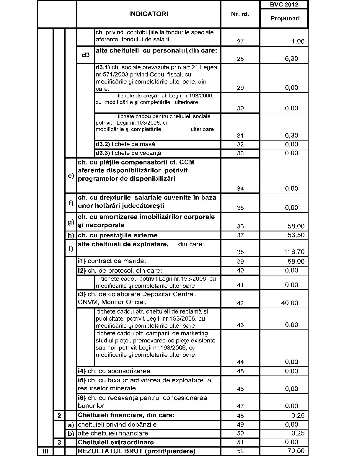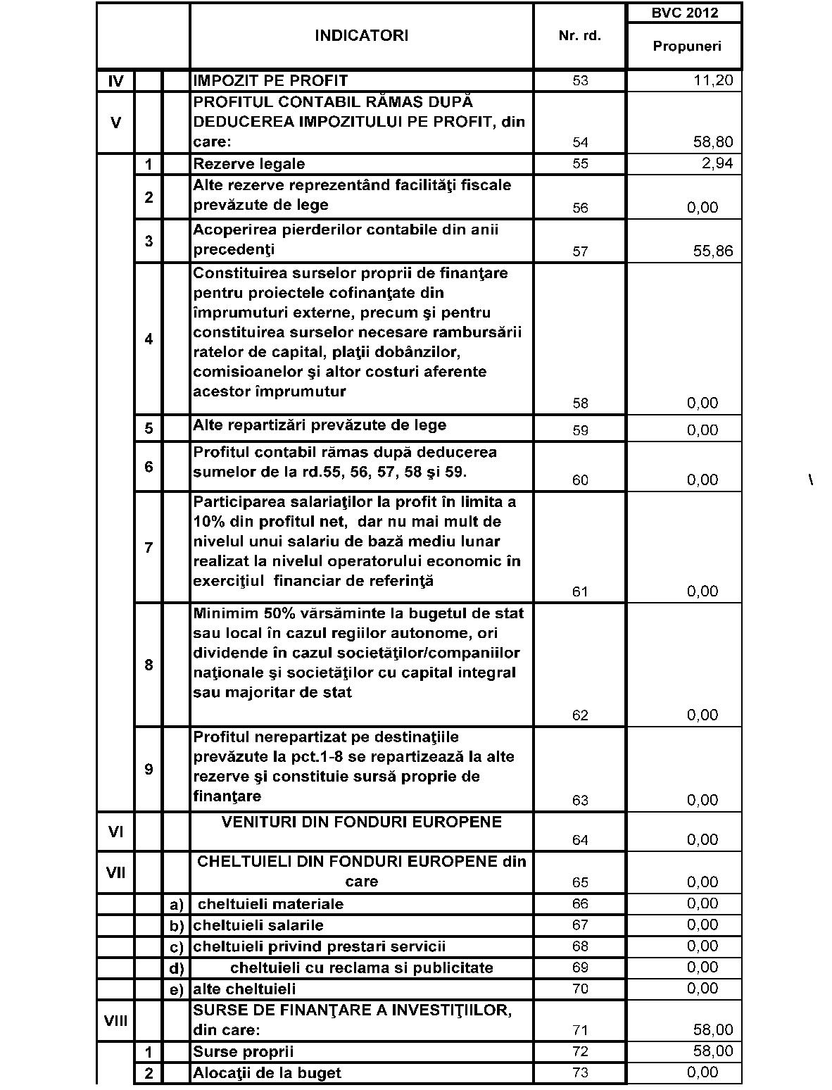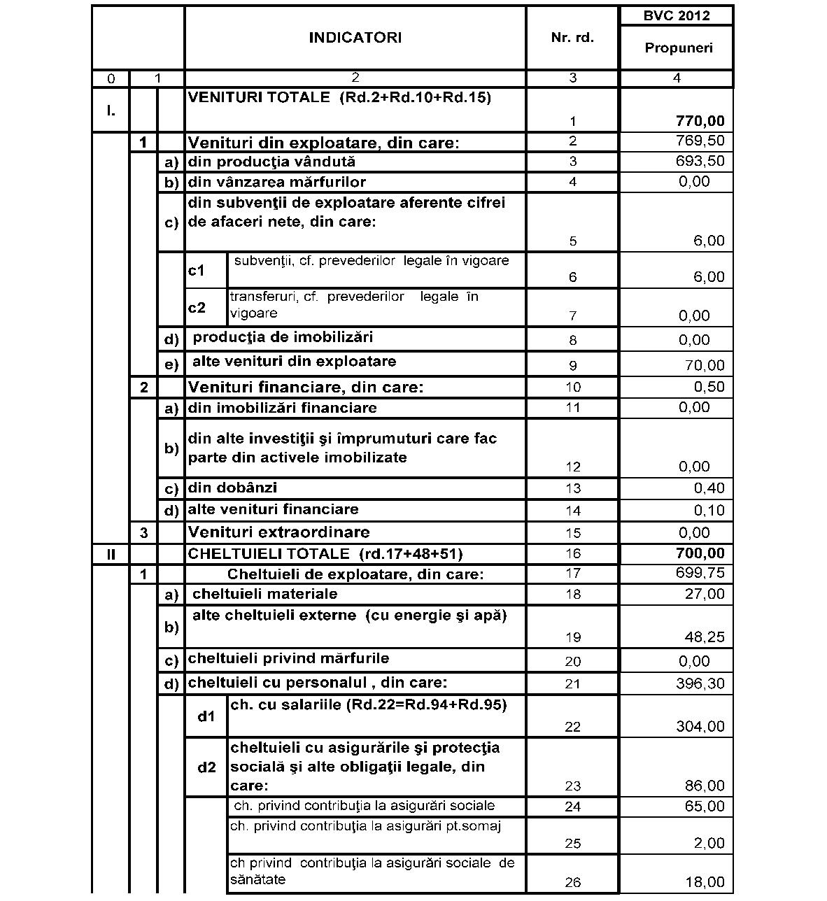 ANEXĂ*)_____*) Anexa este reprodusă în facsimil.AUTORITATEA PENTRU VALORIFICAREA ACTIVELOR STATULUI Operatorul economic: Societatea Comercială INAR - S.A. Braşov Sediul/Adresa: Braşov, Str. Poienelor nr. 5 Cod unic de înregistrare 1114208 BUGETUL DE VENITURI ŞI CHELTUIELI pe anul 2012 mii lei