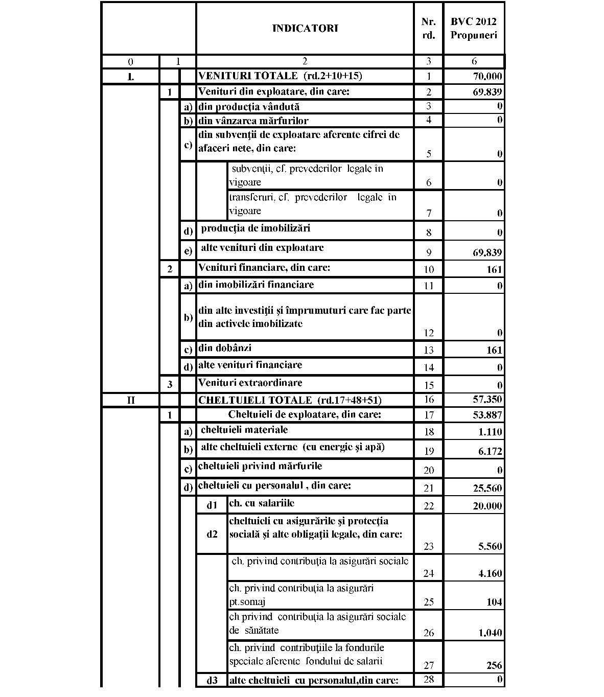 ANEXĂ*)*) Anexa este reprodusă în facsimil.Autoritatea Administraţiei Publice Centrale - Operatorul economic S.C. CYPRINUS -S.A. Sediul/Adresa: Vaslui, Str. Agroindustrială nr. 1 Cod unic de înregistrare RO 826135 BUGETUL DE VENITURI ŞI CHELTUIELI PE ANUL 2012