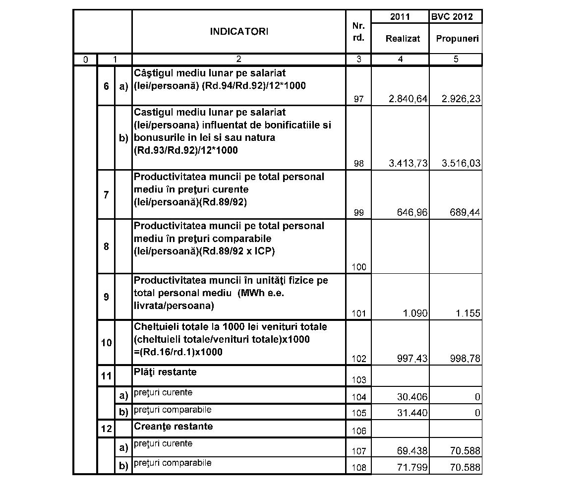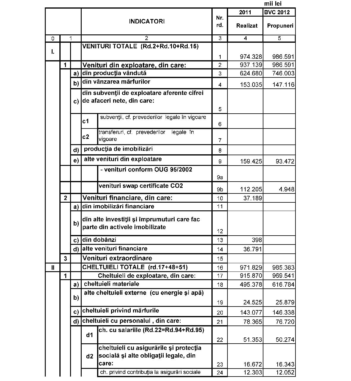 ANEXĂ*)__*) Anexa este reprodusă în facsimil.MINISTERUL ECONOMIEI, COMERŢULUI ŞI MEDIULUI DE AFACERI Societatea Comercială „Electrocentrale Deva“ - S.A. Sediul: localitatea Mintia, Str. Şantierului nr. 1, judeţul Hunedoara Cod unic de înregistrare: 14348448 BUGETUL DE VENITURI ŞI CHELTUIELI PE ANUL 2012
