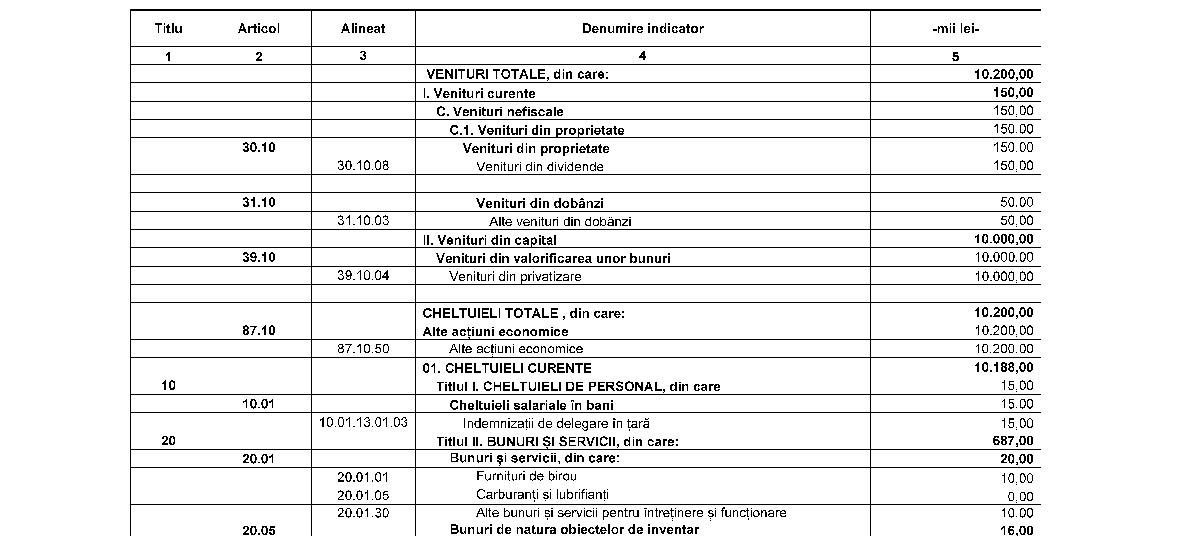 În conformitate cu dispoziţiile art. 15 alin. (3) din Ordonanţa de urgenţă a Guvernului nr. 37/2008 privind reglementarea unor măsuri financiare în domeniul bugetar, aprobată cu modificări prin Legea nr. 275/2008, cu modificările şi completările ulterioare,în temeiul art. 108 din Constituţia României, republicată, al art. 9 alin. (1) din Ordonanţa de urgenţă a Guvernului nr. 88/1997 privind privatizarea societăţilor comerciale, aprobată prin Legea nr. 44/1998, cu modificările şi completările ulterioare, şi al art. 51 din Legea nr. 137/2002 privind unele măsuri pentru accelerarea privatizării, cu modificările şi completările ulterioare,Guvernul României adoptă prezenta hotărâre. Articolul 1Se aprobă bugetul de venituri şi cheltuieli al Ministerului Dezvoltării Regionale şi Turismului privind activitatea de privatizare pe anul 2012, prevăzut în anexa care face parte integrantă din prezenta hotărâre. Articolul 2(1) Cheltuielile totale aferente veniturilor înscrise în bugetul de venituri şi cheltuieli al Ministerului Dezvoltării Regionale şi Turismului reprezintă limite maxime care nu pot fi depăşite decât în cazuri justificate şi numai cu aprobarea Guvernului.(2) În cazul în care în execuţia bugetului de venituri şi cheltuieli se înregistrează nerealizări ale veniturilor totale aprobate, Ministerul Dezvoltării Regionale şi Turismului va efectua cheltuieli totale proporţional cu gradul de realizare a veniturilor totale. Articolul 3(1) Nerespectarea prevederilor art. 2 constituie contravenţie şi se sancţionează cu amendă de la 1.000 lei la 5.000 lei.(2) Contravenţiei prevăzute la alin. (1) i se aplică dispoziţiile Ordonanţei Guvernului nr. 2/2001 privind regimul juridic al contravenţiilor, aprobată cu modificări şi completări prin Legea nr. 180/2002, cu modificările şi completările ulterioare.(3) Contravenţia se constată de către organele de control financiar ale statului, împuternicite potrivit legii, şi amenda se aplică persoanelor vinovate de nerespectarea prevederilor prezentei hotărâri.PRIM-MINISTRU MIHAI-RĂZVAN UNGUREANU Contrasemnează: Ministrul dezvoltării regionale şi turismului, Cristian Petrescu p. Ministrul finanţelor publice, Gheorghe Gherghina, secretar de stat ANEXĂ*)*) Anexa este reprodusă în facsimil.BUGETUL DE VENITURI ŞI CHELTUIELI al Ministerului Dezvoltării Regionale şi Turismului privind activitatea de privatizare pe anul 2012