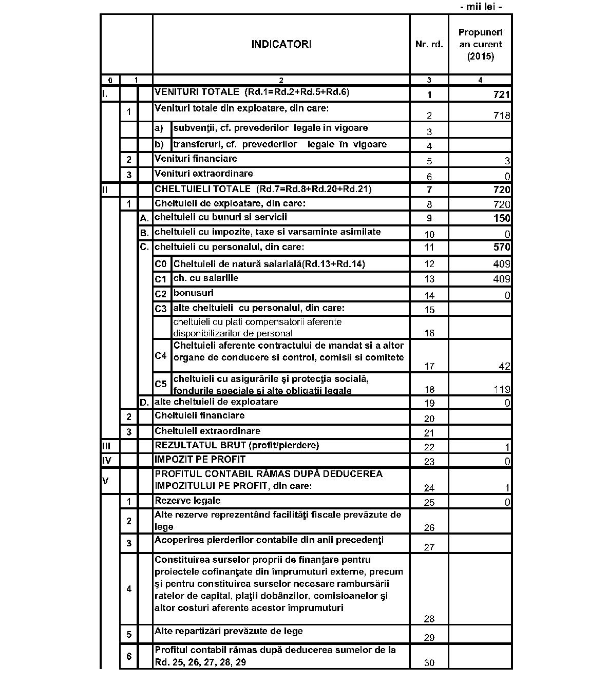 Având în vedere prevederile art. 4 alin. (1) lit. b) din Ordonanţa Guvernului nr. 26/2013 privind întărirea disciplinei financiare la nivelul unor operatori economici la care statul sau unităţile administrativ-teritoriale sunt acţionari unici ori majoritari sau deţin direct ori indirect o participaţie majoritară, aprobată cu completări prin Legea nr. 47/2014 , cu modificările şi completările ulterioare,în temeiul prevederilor art. 9 alin. (6) din Hotărârea Guvernului nr. 47/2013 privind organizarea şi funcţionarea Ministerului Economiei, Comerţului şi Turismului, cu modificările şi completările ulterioare, ale art. 10 alin. (4) din Hotărârea Guvernului nr. 34/2009 privind organizarea şi funcţionarea Ministerului Finanţelor Publice, cu modificările şi completările ulterioare, şi ale art. 18 alin. (3) din Hotărârea Guvernului nr. 344/2014 privind organizarea şi funcţionarea Ministerului Muncii, Familiei, Protecţiei Sociale şi Persoanelor Vârstnice, precum şi pentru modificarea unor acte normative, cu modificările şi completările ulterioare,ministrul economiei, comerţului şi turismului, ministrul finanţelor publice şi ministrul muncii, familiei, protecţiei sociale şi persoanelor vârstnice emit următorul ordin: Articolul 1Se aprobă bugetul de venituri şi cheltuieli pe anul 2015 pentru Societatea ICEMENERG SERVICE - S.A. - filiala Companiei Naţionale de Transport al Energiei Electrice „Transelectrica“ - S.A., prevăzut în anexa care face parte integrantă din prezentul ordin. Articolul 2Prezentul ordin se publică în Monitorul Oficial al României, Partea I. Ministrul economiei, comerţului şi turismului, Mihai Tudose p. Ministrul finanţelor publice, Daniela Pescaru, secretar de stat Ministrul muncii, familiei, protecţiei sociale şi persoanelor vârstnice, Rovana Plumb ANEXĂ*)*) Anexa este reprodusă în facsimil.MINISTERUL ECONOMIEI, COMERŢULUI ŞI TURISMULUI Operatorul economic: Societatea ICEMENERG SERVICE - S.A. Sediul/Adresa: Bd. Energeticienilor nr. 8 Cod unic de înregistrare: 15689117 BUGETUL DE VENITURI ŞI CHELTUIELI pe anul 2015