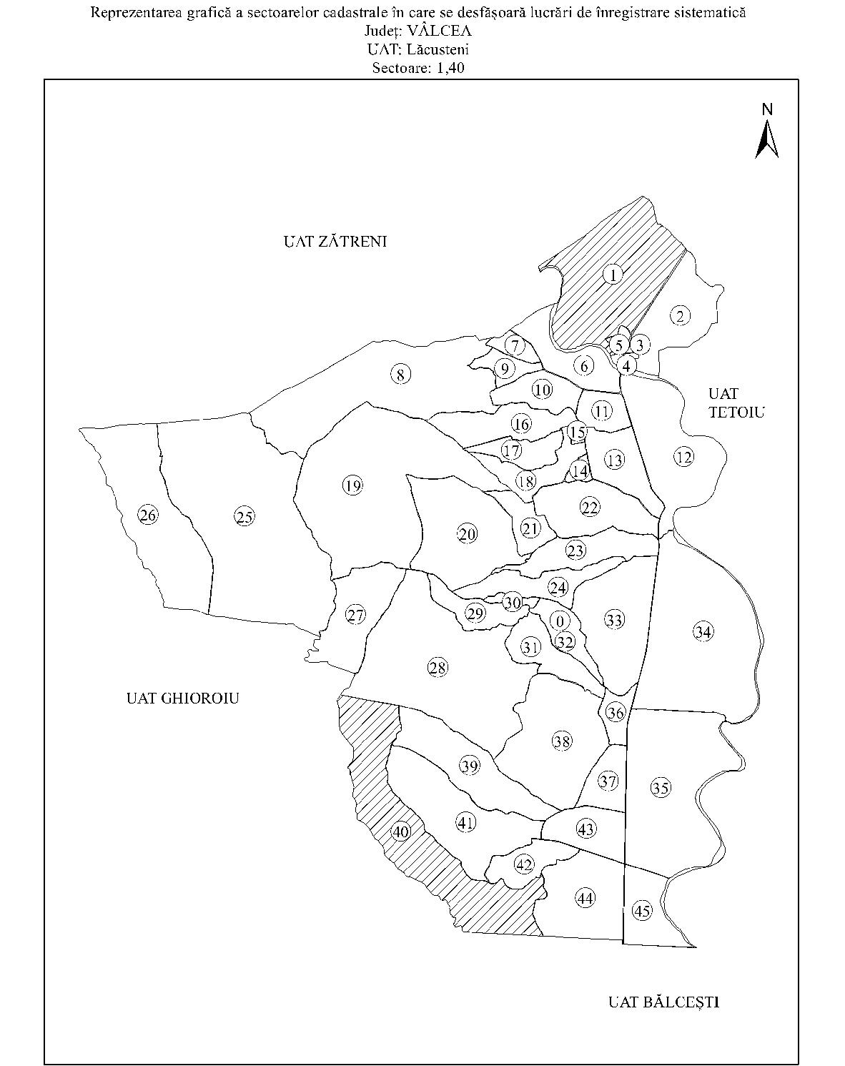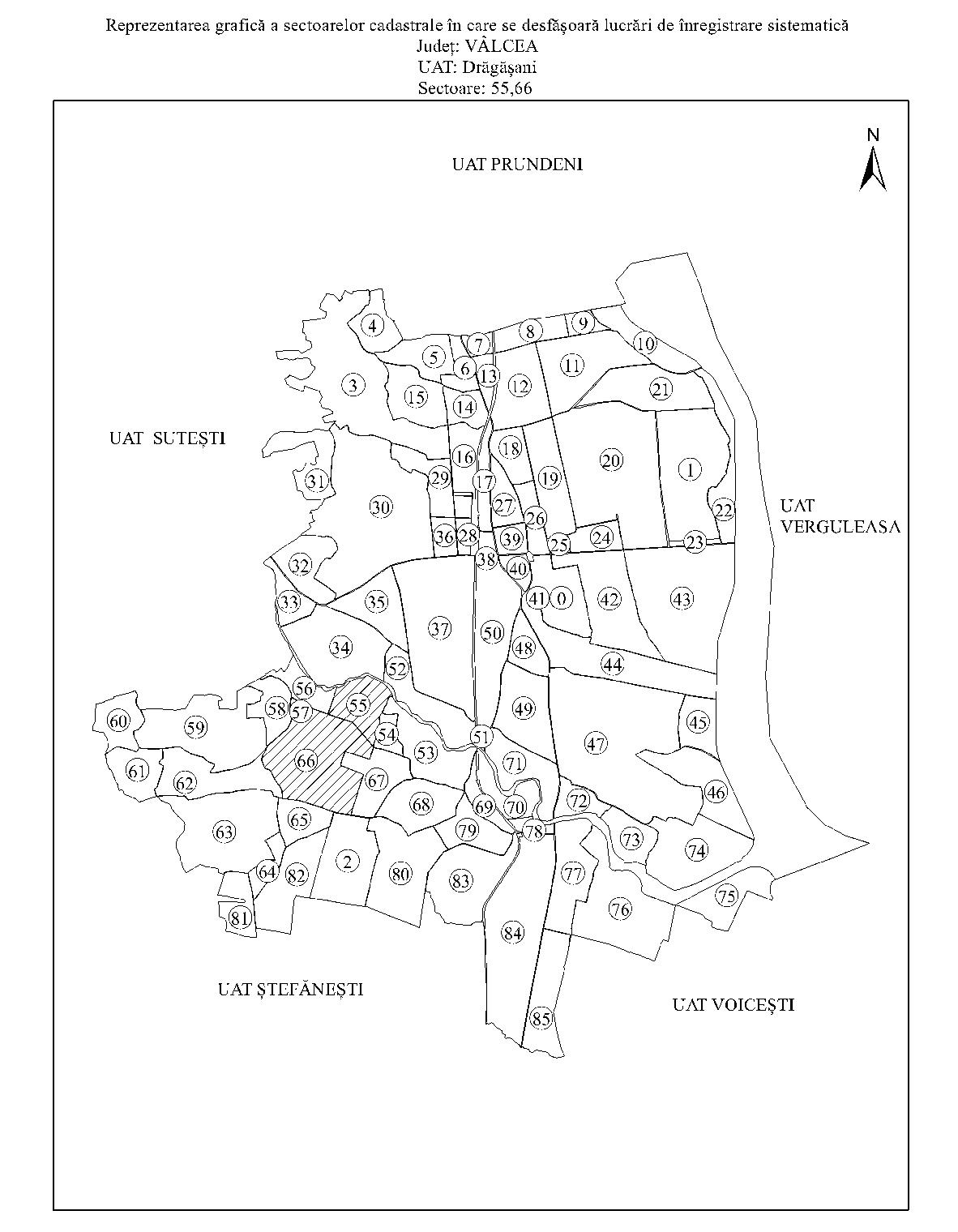 Având în vedere prevederile art. 11 alin. (1) din Legea cadastrului şi a publicităţii imobiliare nr. 7/1996, republicată, cu modificările şi completările ulterioare,în temeiul art. 3 alin. (13) din Legea cadastrului şi a publicităţii imobiliare nr. 7/1996, republicată, cu modificările şi completările ulterioare, şi al art. 15 alin. (3) din Regulamentul de organizare şi funcţionare a Agenţiei Naţionale de Cadastru şi Publicitate Imobiliară, aprobat prin Hotărârea Guvernului nr. 1.288/2012, cu modificările şi completările ulterioare,directorul general al Agenţiei Naţionale de Cadastru şi Publicitate Imobiliară emite prezentul ordin. Articolul 1Se aprobă începerea lucrărilor de înregistrare sistematică a imobilelor, pe sectoare cadastrale, situate pe teritoriul a două unităţi administrativ-teritoriale din judeţul Vâlcea, după cum urmează: a)unitatea administrativ-teritorială Drăgăşani - sectoarele cadastrale nr. 55 şi 56; b)unitatea administrativ-teritorială Lăcusteni - sectoarele cadastrale nr. 1 şi 40. Articolul 2Reprezentarea grafică a sectoarelor cadastrale în care se desfăşoară lucrările de înregistrare sistematică a imobilelor este prevăzută în anexele nr. 1 şi 2 la prezentul ordin. Articolul 3Anexele nr. 1 şi 2*) fac parte integrantă din prezentul ordin. *) Anexele nr. 1 şi 2 sunt reproduse în facsimil. Articolul 4Prezentul ordin se publică în Monitorul Oficial al României, Partea I. Directorul general al Agenţiei Naţionale de Cadastru şi Publicitate Imobiliară, Radu Codruţ Ştefănescu ANEXA Nr. 1 ANEXA Nr. 2