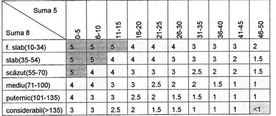 (tone) mai mari sau egale cu cele din coloana 2 şi mai mici decât cele din coloana 3 a tabelelor nr. 1 si 3 din anexa