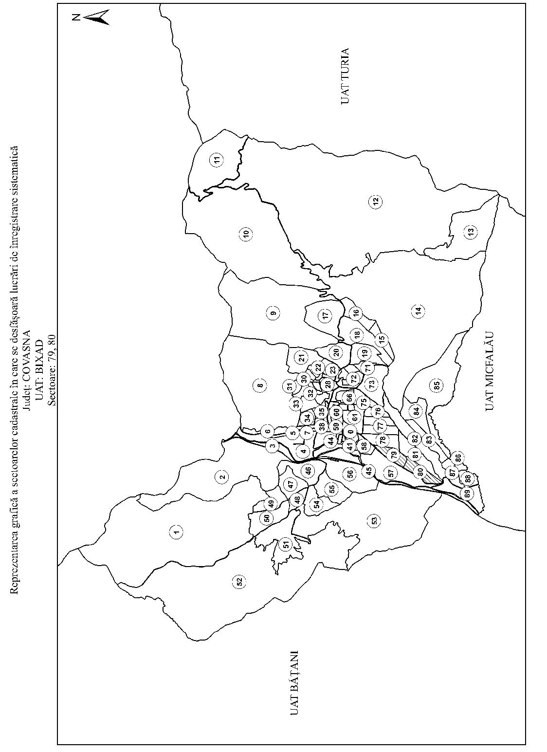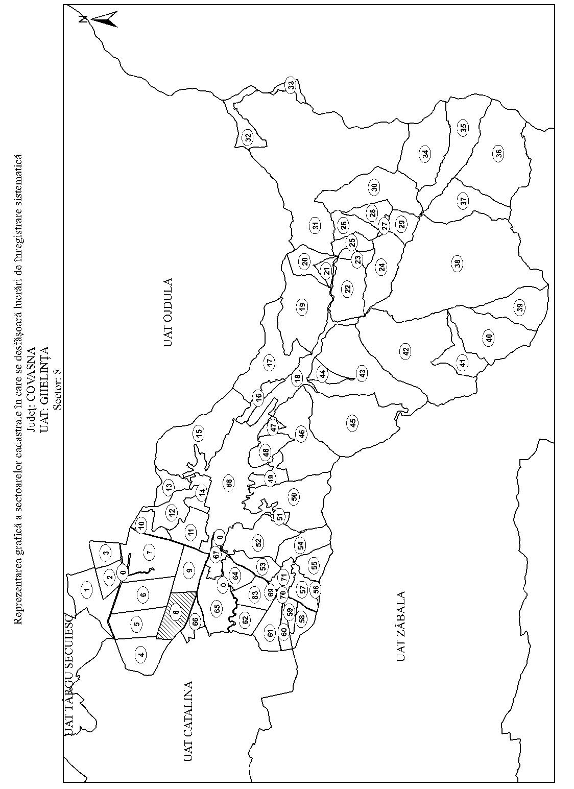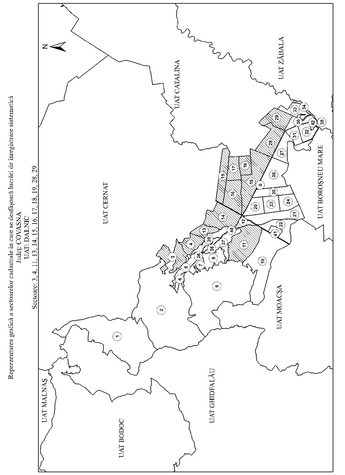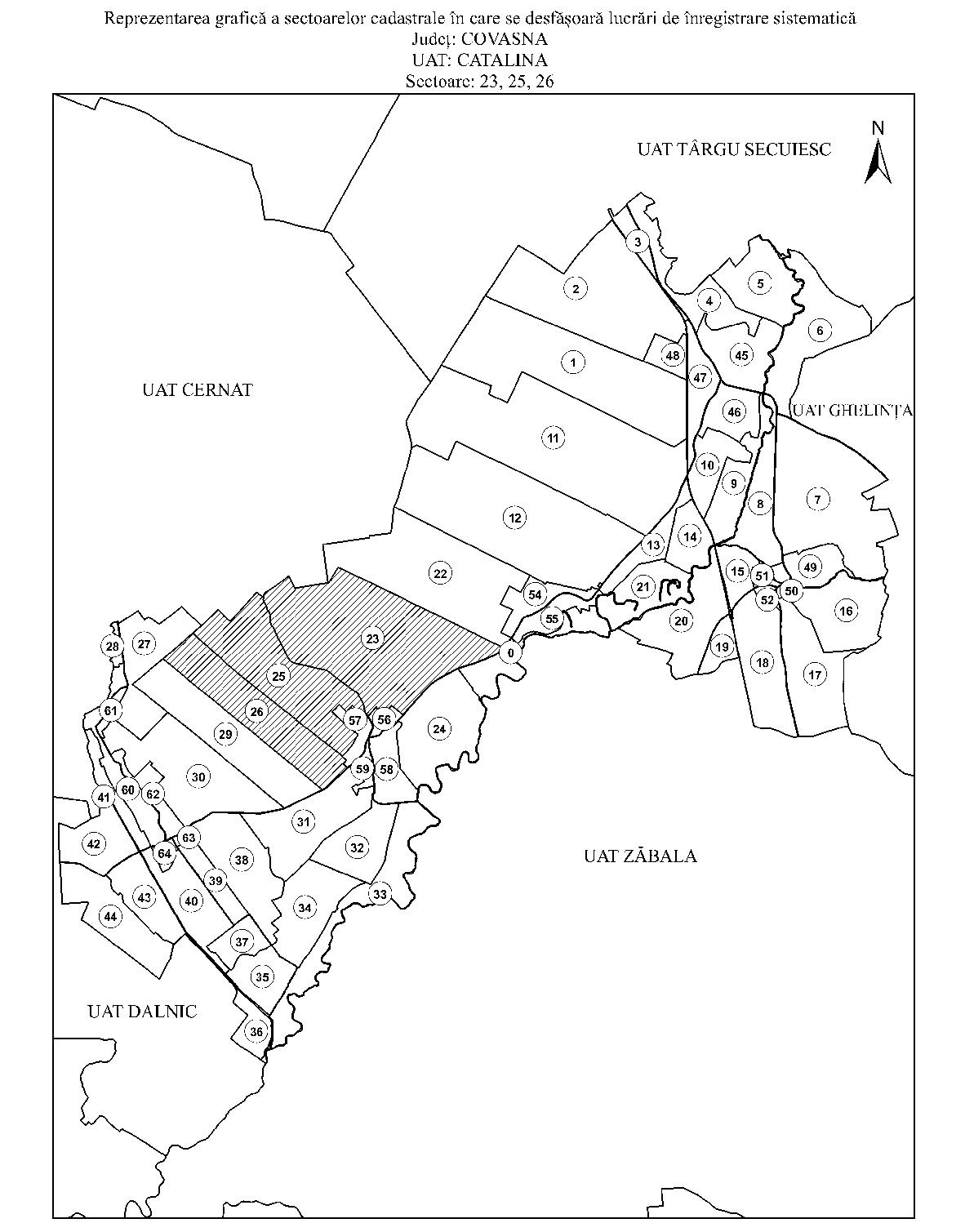 Având în vedere prevederile art. 11 alin. (1) din Legea cadastrului şi a publicităţii imobiliare nr. 7/1996, republicată, cu modificările şi completările ulterioare,în temeiul art. 3 alin. (13) din Legea cadastrului şi a publicităţii imobiliare nr. 7/1996, republicată, cu modificările şi completările ulterioare, şi al art. 15 alin. (3) din Regulamentul de organizare şi funcţionare a Agenţiei Naţionale de Cadastru şi Publicitate Imobiliară, aprobat prin Hotărârea Guvernului nr. 1.288/2012, cu modificările şi completările ulterioare,directorul general al Agenţiei Naţionale de Cadastru şi Publicitate Imobiliară emite prezentul ordin. Articolul 1Se aprobă începerea lucrărilor de înregistrare sistematică a imobilelor, pe sectoare cadastrale, situate pe teritoriul a patru unităţi administrativ-teritoriale din judeţul Covasna, după cum urmează: a)unitatea administrativ-teritorială Bixad - sectoarele cadastrale nr. 79 şi 80; b)unitatea administrativ-teritorială Catalina - sectoarele cadastrale nr. 23, 25 şi 26; c)unitatea administrativ-teritorială Dalnic - sectoarele cadastrale nr. 3, 4, 11, 13, 14, 15, 16, 17, 18, 19, 28 şi 29; d)unitatea administrativ-teritorială Ghelinţa - sectorul cadastral nr. 8. Articolul 2Reprezentarea grafică a sectoarelor cadastrale în care se desfăşoară lucrările de înregistrare sistematică a imobilelor este prevăzută în anexele nr. 1-4 la prezentul ordin. Articolul 3Anexele nr. 1-4*) fac parte integrantă din prezentul ordin. *) Anexele nr. 1-4 sunt reproduse în facsimil. Articolul 4 Prezentul ordin se publică în Monitorul Oficial al României, Partea I. p. Directorul general al Agenţiei Naţionale de Cadastru şi Publicitate Imobiliară,Ileana SpiroiuANEXA Nr. 1 ANEXA Nr. 2 ANEXA Nr. 3 ANEXA Nr. 4