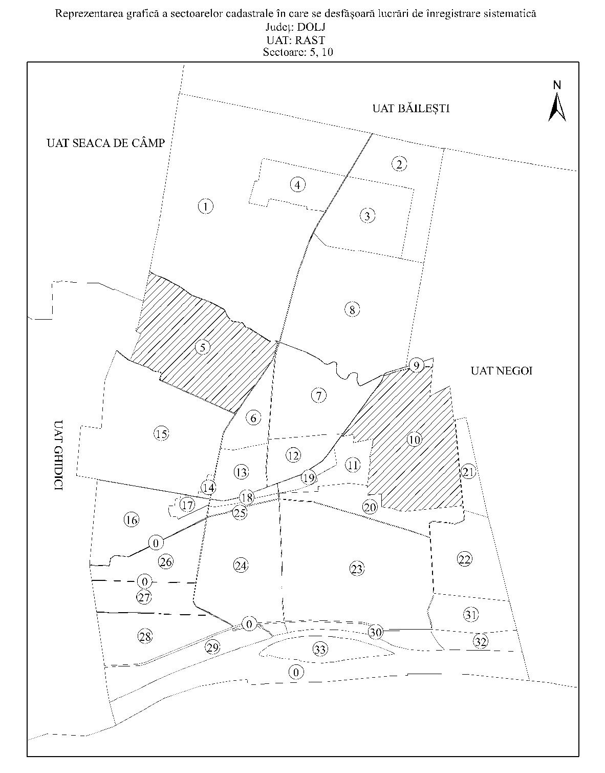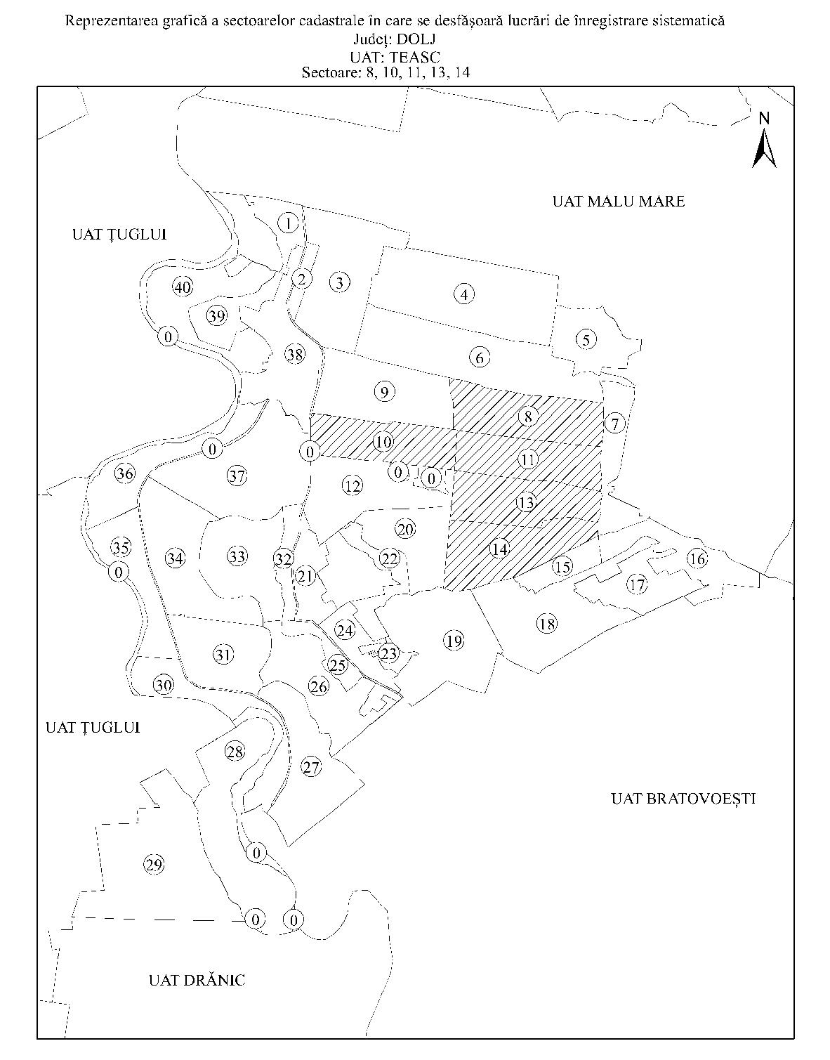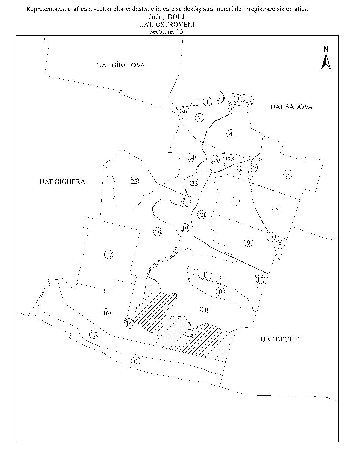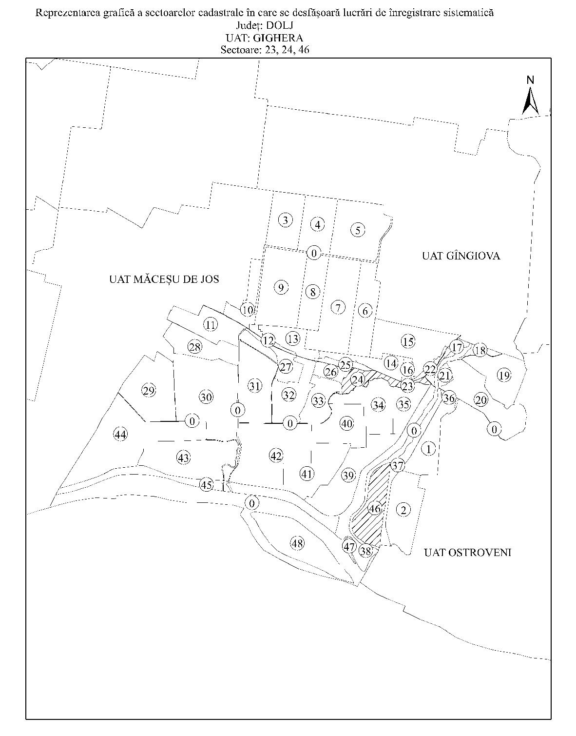 Având în vedere prevederile art. 11 alin. (1) din Legea cadastrului şi a publicităţii imobiliare nr. 7/1996, republicată, cu modificările şi completările ulterioare, şi ale art. 15 alin. (3) din Regulamentul de organizare şi funcţionare a Agenţiei Naţionale de Cadastru şi Publicitate Imobiliară, aprobat prin Hotărârea Guvernului nr. 1.288/2012, cu modificările şi completările ulterioare, în temeiul art. 3 alin. (13) din Legea cadastrului şi a publicităţii imobiliare nr. 7/1996, republicată, cu modificările şi completările ulterioare, directorul general al Agenţiei Naţionale de Cadastru şi Publicitate Imobiliară emite prezentul ordin. Articolul 1 Se aprobă începerea lucrărilor de înregistrare sistematică a imobilelor, pe sectoare cadastrale, situate pe teritoriul a 7 unităţi administrativ-teritoriale din judeţul Dolj, după cum urmează: a)unitatea administrativ-teritorială Coţofenii din Faţă - sectoarele cadastrale nr. 9, 15 şi 21; b)unitatea administrativ-teritorială Gighera - sectoarele cadastrale nr. 23, 24 şi 46; c)unitatea administrativ-teritorială Ostroveni - sectorul cadastral nr. 13; d)unitatea administrativ-teritorială Rast - sectoarele cadastrale nr. 5 şi 10; e)unitatea administrativ-teritorială Sadova - sectoarele cadastrale nr. 10, 18, 19, 31, 40, 53, 54, 55 şi 57; f)unitatea administrativ-teritorială Segarcea - sectoarele cadastrale nr. 3, 4 şi 14; g)unitatea administrativ-teritorială Teasc - sectoarele cadastrale nr. 8, 10, 11, 13 şi 14. Articolul 2 Reprezentarea grafică a sectoarelor cadastrale în care se desfăşoară lucrările de înregistrare sistematică a imobilelor este prevăzută în anexele nr. 1-7 la prezentul ordin. Articolul 3 Anexele nr. 1-7*) fac parte integrantă din prezentul ordin. *) Anexele nr. 1-7 sunt reproduse în facsimil. Articolul 4 Prezentul ordin se publică în Monitorul Oficial al României, Partea I. Directorul general al Agenţiei Naţionale de Cadastru şi Publicitate Imobiliară, Radu Codruţ Ştefănescu ANEXA Nr. 1 ANEXA Nr. 2 ANEXA Nr. 3 ANEXA Nr. 4 ANEXA Nr. 5 ANEXA Nr. 6 ANEXA Nr. 7