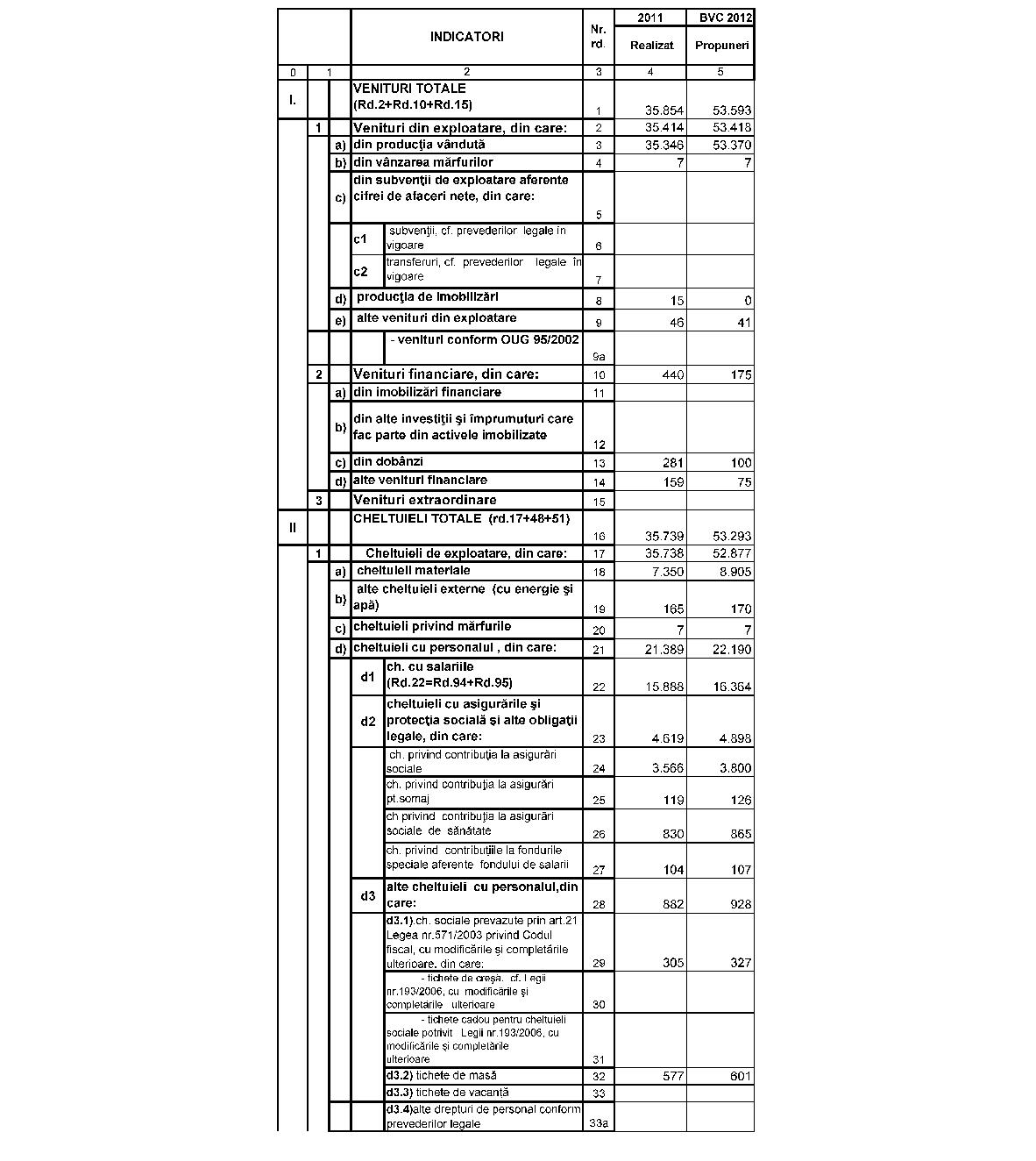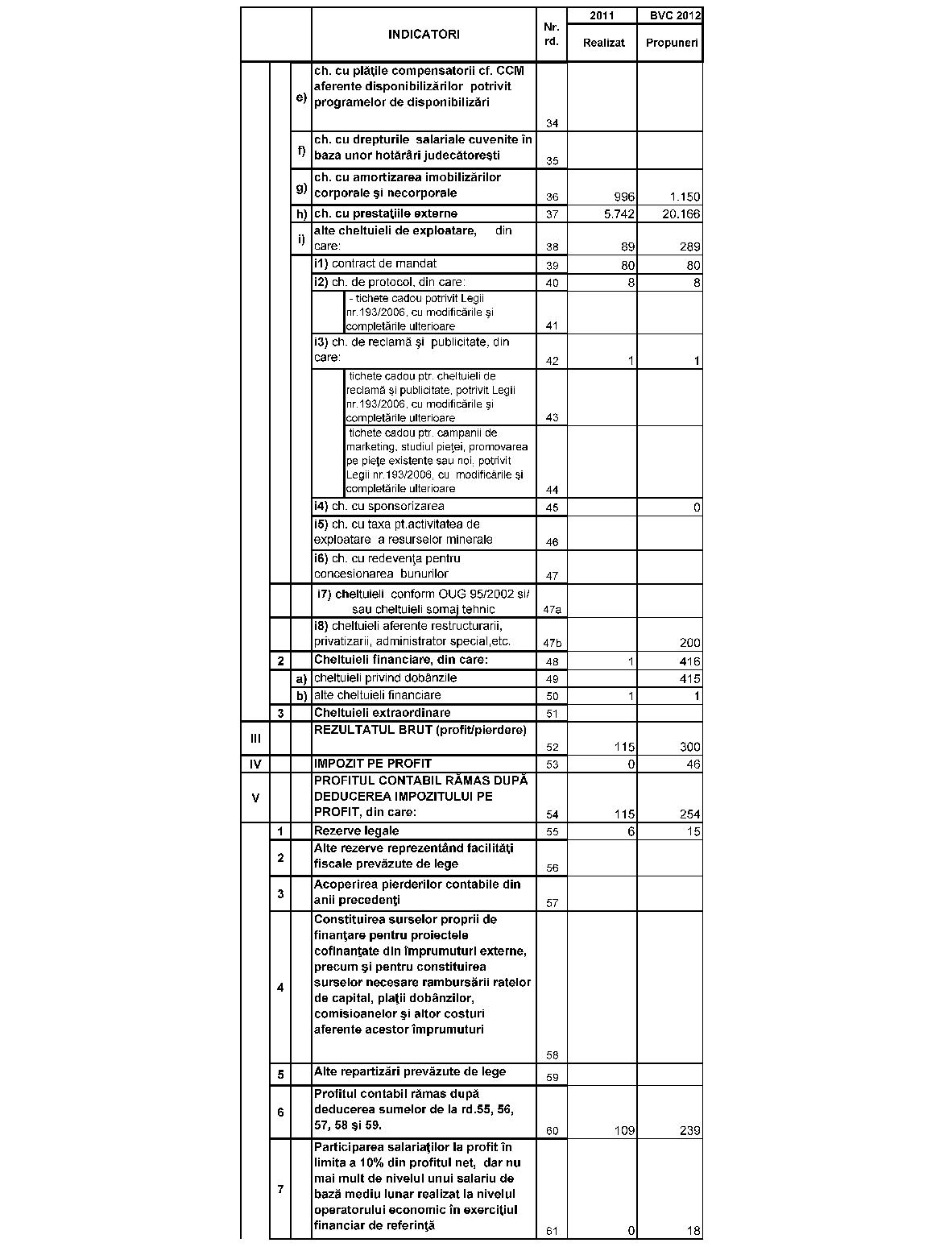 În baza art. 15 alin. (2) din Ordonanţa de urgenţă a Guvernului nr. 37/2008 privind reglementarea unor măsuri financiare din domeniul bugetar, aprobată cu modificări prin Legea nr. 275/2008, cu modificările şi completările ulterioare, şi ale art. 6 alin. (8) din Ordonanţa de urgenţă a Guvernului nr. 79/2008 privind măsuri economico-financiare la nivelul unor operatori economici, aprobată cu modificări şi completări prin Legea nr. 203/2009, cu modificările şi completările ulterioare,în conformitate cu prevederile art. 9 alin. (4) din Hotărârea Guvernului nr. 1.634/2009 privind organizarea şi funcţionarea Ministerului Economiei, Comerţului şi Mediului de Afaceri, cu modificările şi completările ulterioare, ale art. 10 alin. (4) din Hotărârea Guvernului nr. 34/2009 privind organizarea şi funcţionarea Ministerului Finanţelor Publice, cu modificările şi completările ulterioare, şi ale art. 12 din Hotărârea Guvernului nr. 11/2009 privind organizarea şi funcţionarea Ministerului Muncii, Familiei şi Protecţiei Sociale, cu modificările şi completările ulterioare,având în vedere prevederile Legii bugetului de stat pe anul 2012 nr. 293/2011, cu modificările şi completările ulterioare,ministrul economiei, comerţului şi mediului de afaceri, viceprim-ministrul, ministrul finanţelor publice, şi ministrul muncii, familiei şi protecţiei sociale emit următorul ordin: Articolul 1Se aprobă bugetul de venituri şi cheltuieli pe anul 2012 pentru Societatea Comercială HIDROSERV Cluj - S.A. - filială a Societăţii Comerciale de Producere a Energiei Electrice HIDROELECTRICA - S.A., prevăzut în anexa care face parte integrantă din prezentul ordin. Articolul 2(1) Nivelul cheltuielilor totale aferente veniturilor totale înscrise în bugetul de venituri şi cheltuieli, precum şi nivelul cheltuielilor în structură reprezintă limită maximă şi nu pot fi depăşite decât în cazuri justificate, prin aprobarea de către Ministerul Economiei, Comerţului şi Mediului de Afaceri, Ministerul Finanţelor Publice şi Ministerul Muncii, Familiei şi Protecţiei Sociale a unui ordin de rectificare a bugetului de venituri şi cheltuieli.(2) În cazul în care în execuţie se înregistrează nerealizări ale veniturilor totale aprobate, Societatea Comercială HIDROSERV Cluj - S.A. poate efectua cheltuieli totale proporţional cu gradul de realizare a veniturilor totale, cu încadrarea în indicatorii de eficienţă aprobaţi.Ministrul economiei, comerţului şi mediului de afaceri, Daniel Chiţoiu Viceprim-ministru, ministrul finanţelor publice, Florin Georgescu Ministrul muncii, familiei şi protecţiei sociale, Mariana Câmpeanu ANEXĂ*)*) Anexa este reprodusă în facsimil.MINISTERUL ECONOMIEI, COMERŢULUI ŞI MEDIULUI DE AFACERI Operatorul economic Societatea Comercială HIDROSERV Cluj - S.A. Sediul/Adresa: Cluj-Napoca, Str. Taberei nr. 1A Cod unic de înregistrare: 14968563 BUGETUL DE VENITURI ŞI CHELTUIELI PE ANUL 2012
