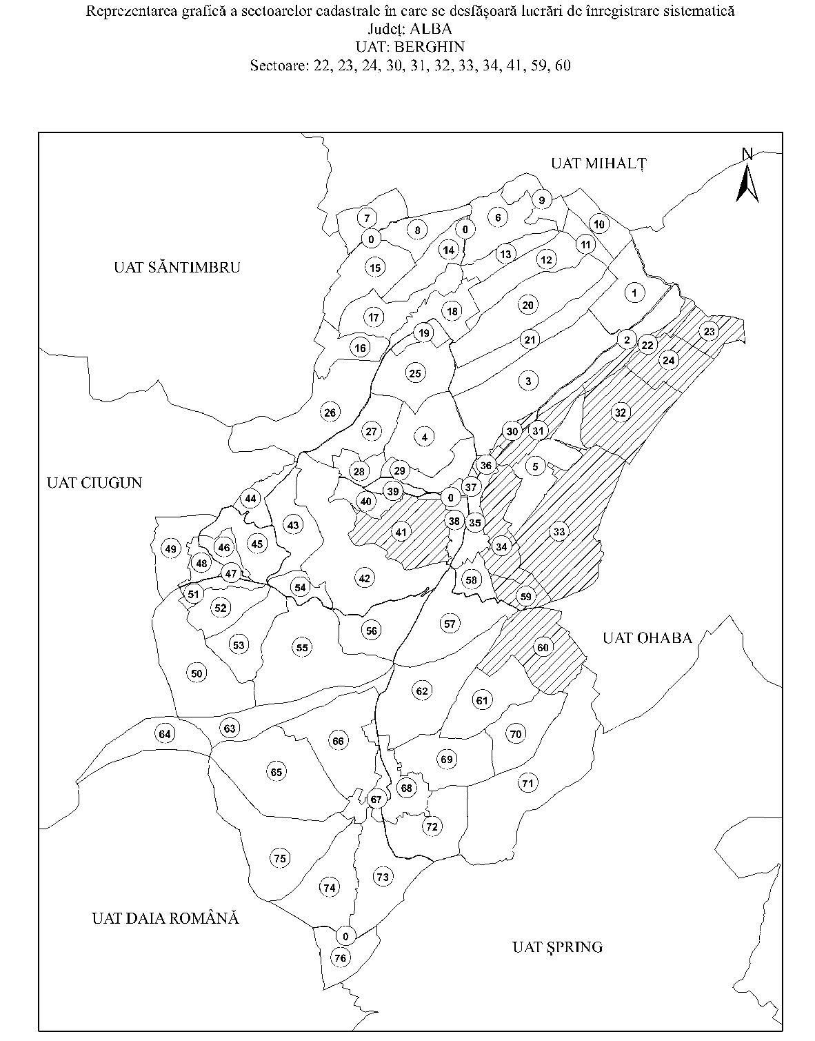 Având în vedere prevederile art. 11 alin. (1) din Legea cadastrului şi a publicităţii imobiliare nr. 7/1996, republicată, cu modificările şi completările ulterioare, şi ale art. 15 alin. (3) din Regulamentul de organizare şi funcţionare a Agenţiei Naţionale de Cadastru şi Publicitate Imobiliară, aprobat prin Hotărârea Guvernului nr. 1.288/2012, cu modificările şi completările ulterioare, în temeiul art. 3 alin. (13) din Legea cadastrului şi a publicităţii imobiliare nr. 7/1996, republicată, cu modificările şi completările ulterioare, directorul general al Agenţiei Naţionale de Cadastru şi Publicitate Imobiliară emite prezentul ordin. Articolul 1 Se aprobă începerea lucrărilor de înregistrare sistematică a imobilelor, pe sectoare cadastrale, situate pe teritoriul a 3 unităţi administrativ-teritoriale din judeţul Alba, după cum urmează: a)unitatea administrativ-teritorială Berghin - sectoarele cadastrale nr. 22, 23, 24, 30, 31, 32, 33, 34, 41, 59 şi 60; b)unitatea administrativ-teritorială Bucium - sectoarele cadastrale nr. 24 şi 27; c)unitatea administrativ-teritorială Gârbova - sectoarele cadastrale nr. 3, 4, 5, 11, 12, 13, 15, 18 şi 36. Articolul 2 Reprezentarea grafică a sectoarelor cadastrale în care se desfăşoară lucrările de înregistrare sistematică a imobilelor este prevăzută în anexele nr. 1-3 la prezentul ordin. Articolul 3 Anexele nr. 1-3*) fac parte integrantă din prezentul ordin. *) Anexele nr. 1-3 sunt reproduse în facsimil. Articolul 4 Prezentul ordin se publică în Monitorul Oficial al României, Partea I. Directorul general al Agenţiei Naţionale de Cadastru şi Publicitate Imobiliară, Radu Codruţ Ştefănescu . ANEXA Nr. 1 ANEXA Nr. 2 ANEXA Nr. 3