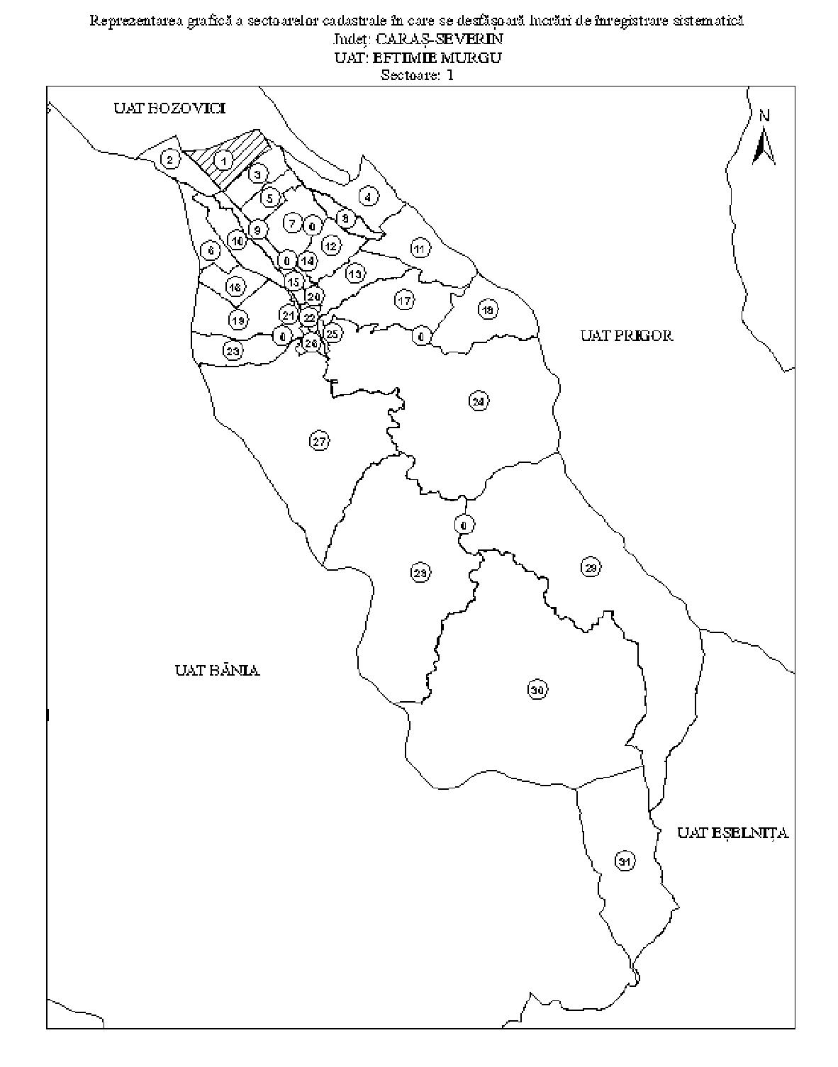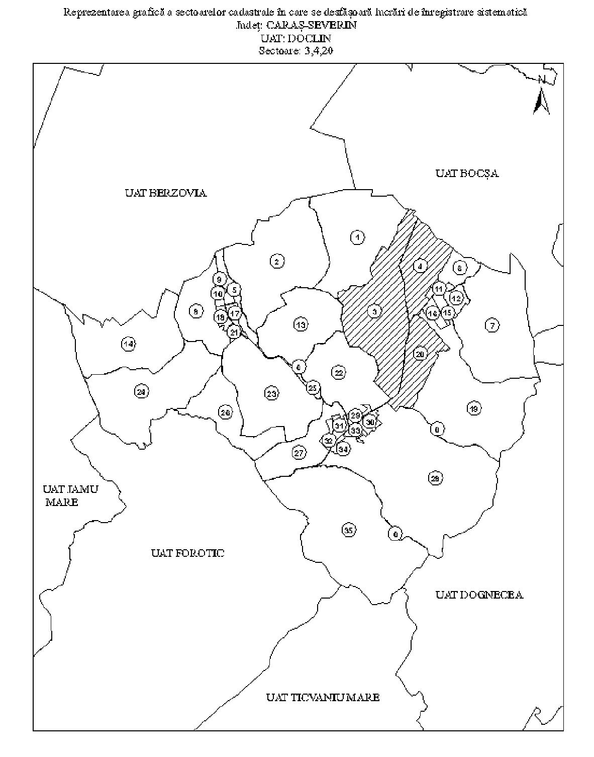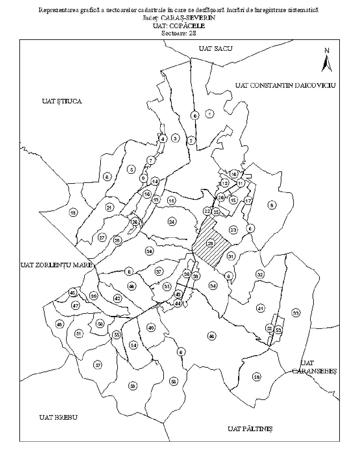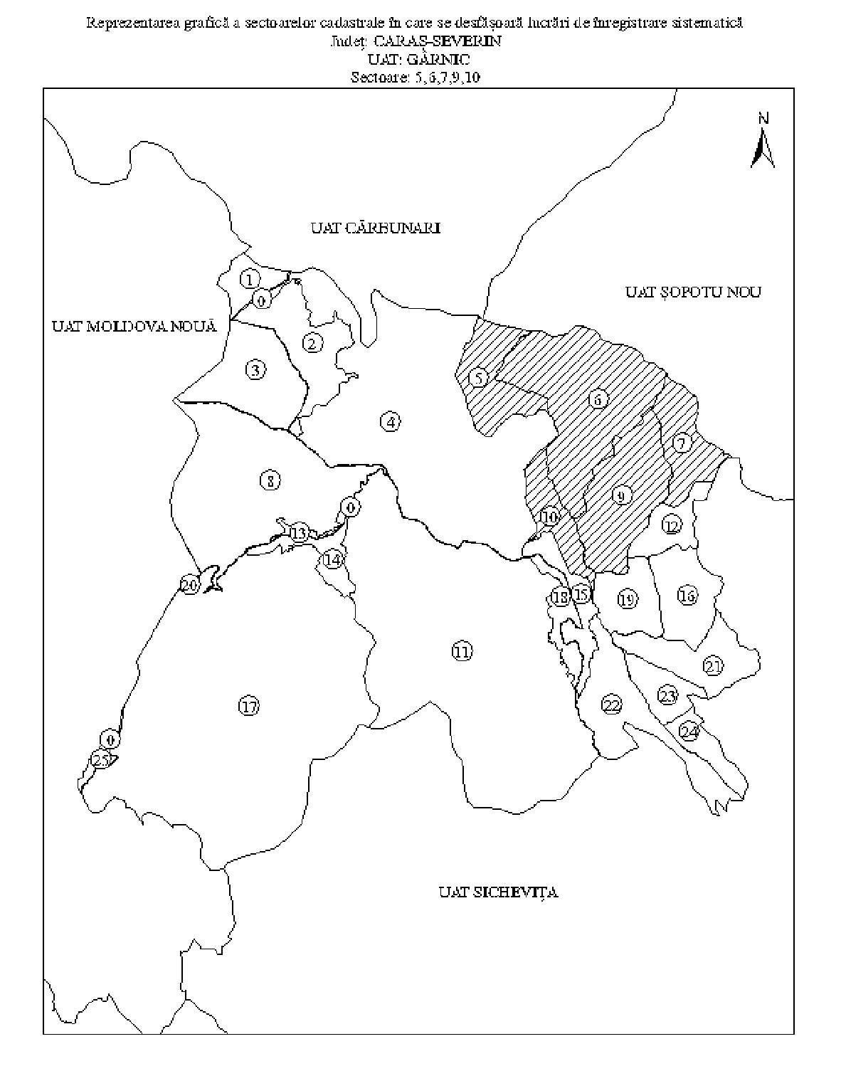Având în vedere prevederile art. 11 alin. (1) din Legea cadastrului şi a publicităţii imobiliare nr. 7/1996, republicată, cu modificările şi completările ulterioare, şi ale art. 15 alin. (3) din Regulamentul de organizare şi funcţionare a Agenţiei Naţionale de Cadastru şi Publicitate Imobiliară, aprobat prin Hotărârea Guvernului nr. 1.288/2012, cu modificările şi completările ulterioare, în temeiul art. 3 alin. (13) din Legea cadastrului şi a publicităţii imobiliare nr. 7/1996, republicată, cu modificările şi completările ulterioare, directorul general al Agenţiei Naţionale de Cadastru şi Publicitate Imobiliară emite prezentul ordin. Articolul 1 Se aprobă începerea lucrărilor de înregistrare sistematică a imobilelor, pe sectoare cadastrale, situate pe teritoriul a 19 unităţi administrativ–teritoriale din judeţul Caraş-Severin, după cum urmează: a)unitatea administrativ-teritorială Bănia - sectoarele cadastrale nr. 4, 5, 7, 8 şi 14; b)unitatea administrativ-teritorială Băuţar - sectorul cadastral nr. 13; c)unitatea administrativ-teritorială Brebu - sectoarele cadastrale nr. 14, 15, 16, 18, 23, 25, 27, 28, 30, 31, 32, 36, 37 şi 39; d)unitatea administrativ-teritorială Constantin Daicoviciu - sectoarele cadastrale nr. 5, 7, 8, 16, 19, 20, 21, 22, 25, 28, 30, 34, 36, 43, 47, 49 şi 53; e)unitatea administrativ-teritorială Copăcele - sectorul cadastral nr. 28; f)unitatea administrativ-teritorială Dalboşeţ - sectoarele cadastrale nr. 1, 6, 7, 8, 10, 11, 13, 15, 23 şi 26; g)unitatea administrativ-teritorială Doclin - sectoarele cadastrale nr. 3, 4 şi 20; h)unitatea administrativ-teritorială Eftimie Murgu - sectorul cadastral nr. 1; i)unitatea administrativ-teritorială Fârliug - sectorul cadastral nr. 58; j)unitatea administrativ-teritorială Gârnic - sectoarele cadastrale nr. 5, 6, 7, 9 şi 10; k)unitatea administrativ-teritorială Glimboca - sectoarele cadastrale nr. 6, 8, 9, 11, 12, 13, 18, 23, 26, 29 şi 30; l)unitatea administrativ-teritorială Lăpuşnicu Mare - sectoarele cadastrale nr. 36 şi 38; m)unitatea administrativ-teritorială Obreja - sectoarele cadastrale nr. 28 şi 29; n)unitatea administrativ-teritorială Oraviţa - sectoarele cadastrale nr. 34, 40, 42, 43, 52, 56, 58, 59, 61 şi 76; o)unitatea administrativ-teritorială Pojejena - sectoarele cadastrale nr. 42, 43, 45, 48, 55, 56, 59, 78, 83, 86, 90 şi 93; p)unitatea administrativ-teritorială Sicheviţa - sectoarele cadastrale nr. 1, 2, 3, 4, 5, 6, 7, 8, 9, 10, 11, 12, 13, 14, 15, 16, 17, 22, 40, 51, 54, 55, 58, 61, 63 şi 71; q)unitatea administrativ-teritorială Socol - sectoarele cadastrale nr. 53, 54, 55, 56, 63, 64, 83, 93, 95 şi 96; r)unitatea administrativ-teritorială Teregova - sectoarele cadastrale nr. 11, 12, 13, 14, 18, 19, 20, 27, 28, 29, 30, 31, 32, 33, 35, 36, 37, 38, 39, 40, 41, 42, 43, 45, 46, 47, 48, 49, 50, 51, 52, 54, 55, 56, 57, 58, 59, 60, 61, 63, 64, 65, 69, 71, 72, 76, 77, 81, 85, 88, 89, 99, 103, 115, 116, 126, 128, 129 şi 136; s)unitatea administrativ-teritorială Turnu Ruieni - sectoarele cadastrale nr. 18, 24, 27, 36, 41, 42, 55, 57, 59, 66, 68, 70, 75, 76, 79, 80, 87 şi 89. Articolul 2 Reprezentarea grafică a sectoarelor cadastrale în care se desfăşoară lucrările de înregistrare sistematică a imobilelor este prevăzută în anexele nr. 1-19 la prezentul ordin. Articolul 3 Anexele nr. 1-19*) fac parte integrantă din prezentul ordin. *) Anexele nr. 1-19 sunt reproduse în facsimil. Articolul 4 Prezentul ordin se publică în Monitorul Oficial al României, Partea I. Directorul general al Agenţiei Naţionale de Cadastru şi Publicitate Imobiliară, Radu Codruţ Ştefănescu ANEXA Nr. 1