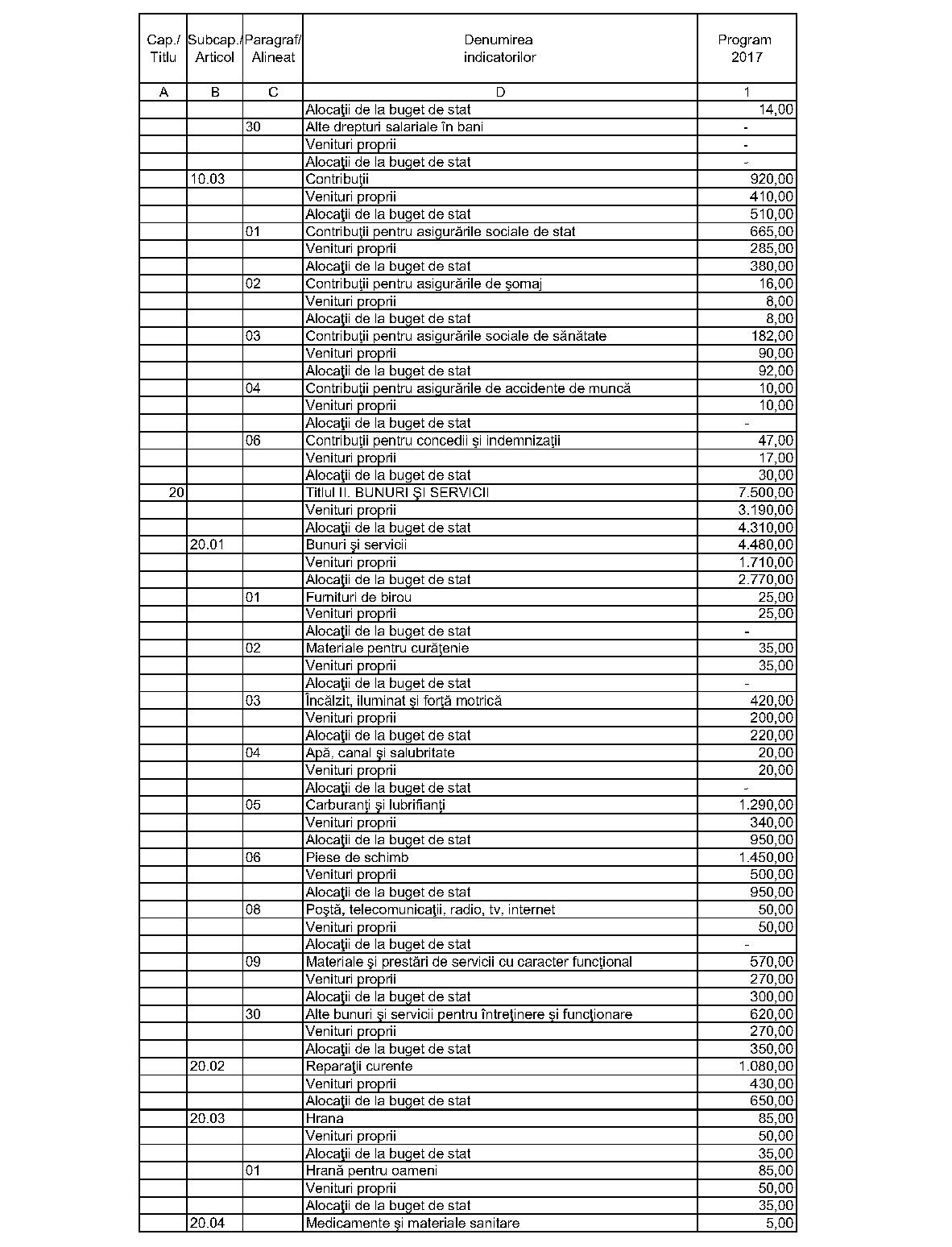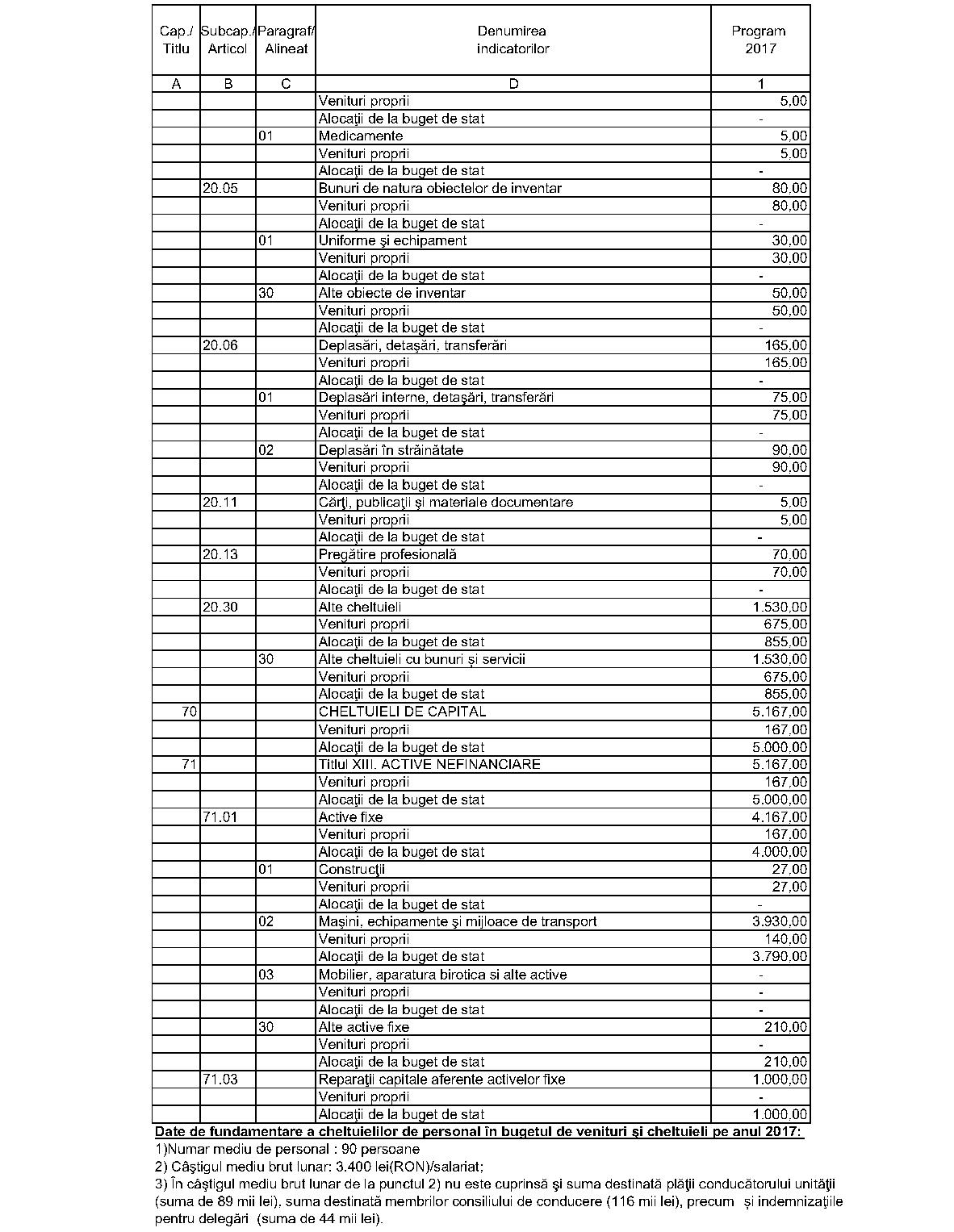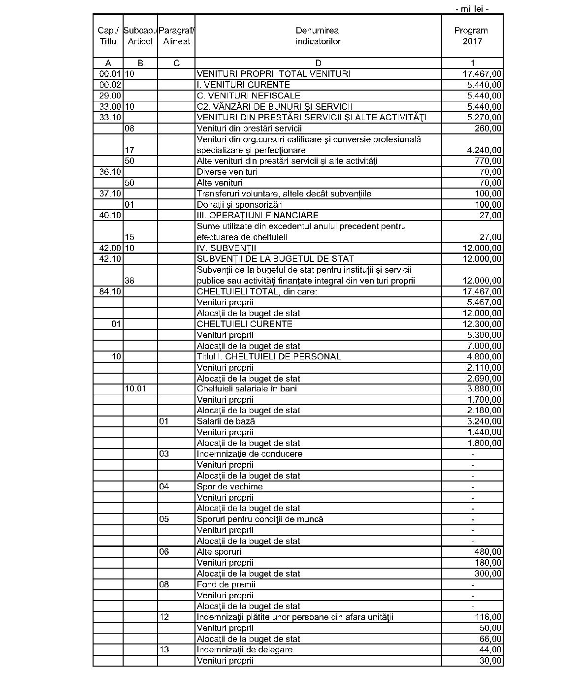 privind aprobarea bugetului de venituri şi cheltuieli modificat pe anul 2017 al Şcolii Superioare de Aviaţie Civilă