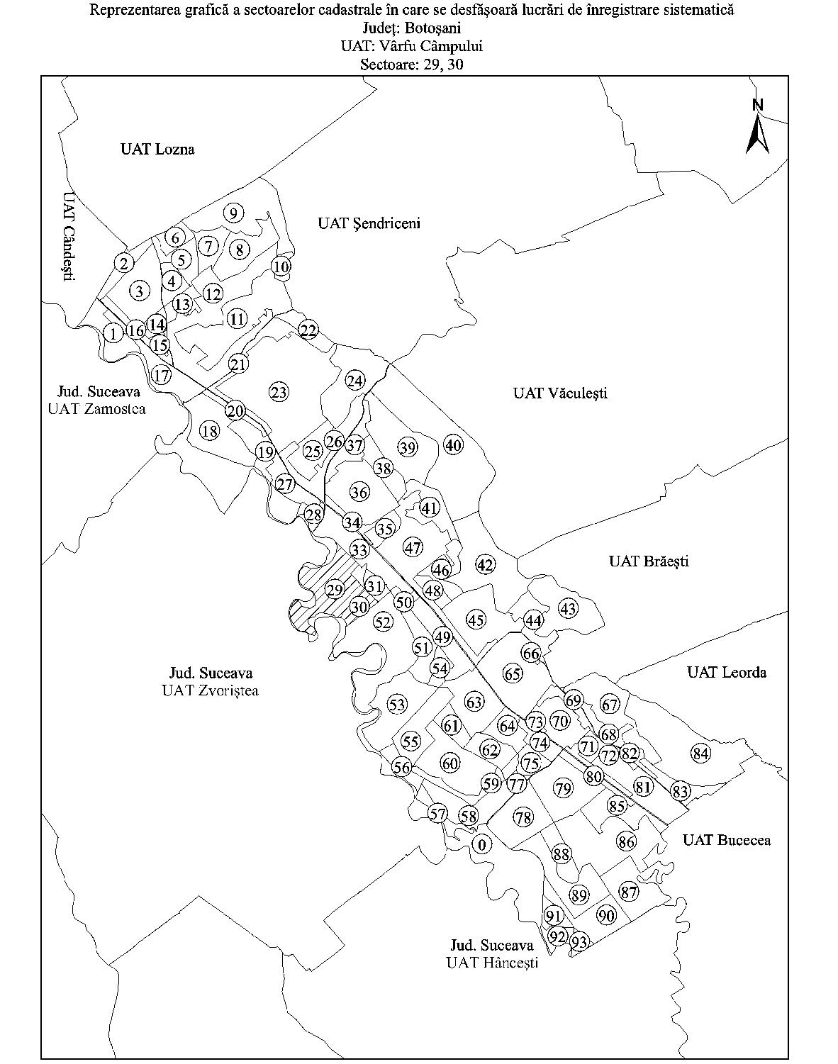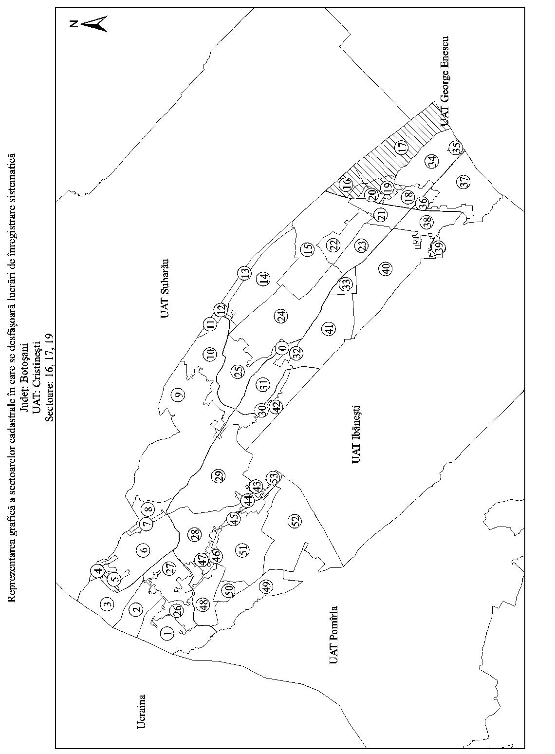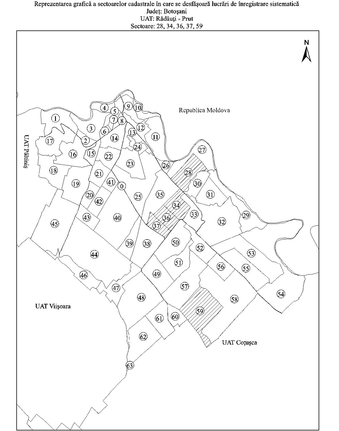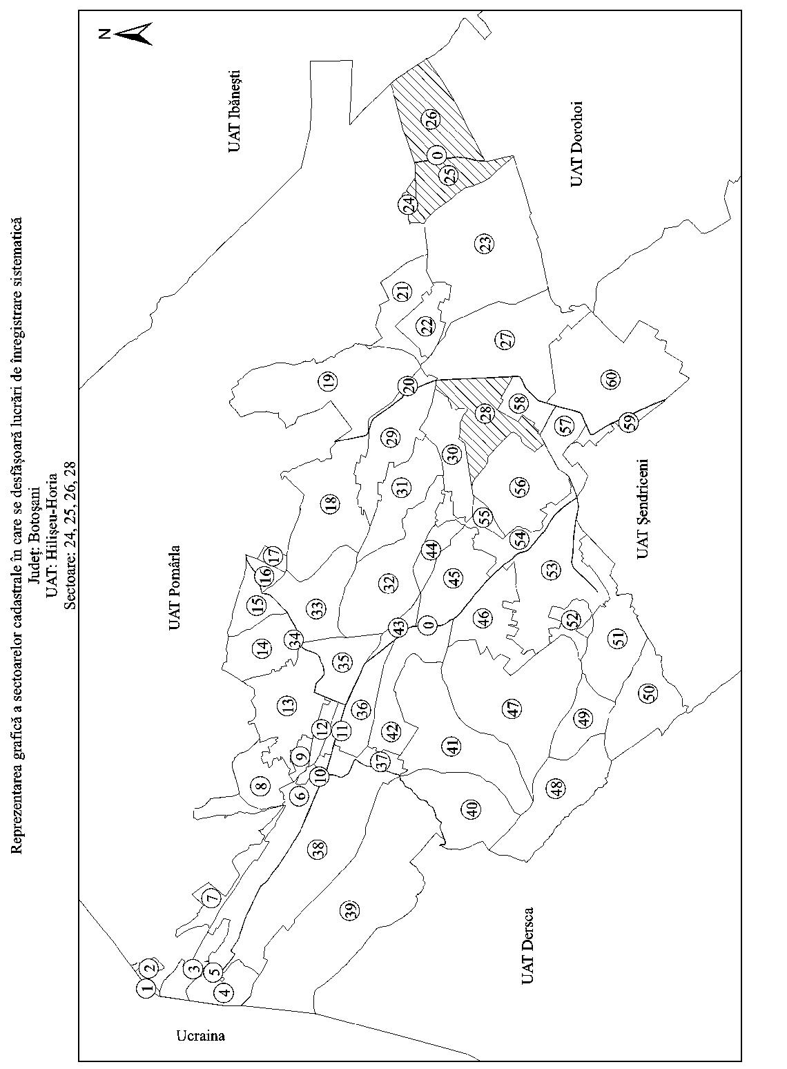Având în vedere prevederile art. 11 alin. (1) din Legea cadastrului şi a publicităţii imobiliare nr. 7/1996, republicată, cu modificările şi completările ulterioare,în temeiul art. 3 alin. (13) din Legea cadastrului şi a publicităţii imobiliare nr. 7/1996, republicată, cu modificările şi completările ulterioare,directorul general al Agenţiei Naţionale de Cadastru şi Publicitate Imobiliară emite prezentul ordin. Articolul 1Se aprobă începerea lucrărilor de înregistrare sistematică a imobilelor, pe sectoare cadastrale, situate pe teritoriul a 18 unităţi administrativ-teritoriale din judeţul Botoşani, după cum urmează: a)unitatea administrativ-teritorială Cândeşti - sectoarele cadastrale nr. 10, 11, 12, 13, 15, 17, 18, 36 şi 37; b)unitatea administrativ-teritorială Conceşti - sectoarele cadastrale nr. 22 şi 27; c)unitatea administrativ-teritorială Corlăteni - sectorul cadastral nr. 18; d)unitatea administrativ-teritorială Coţuşca - sectoarele cadastrale nr. 1, 3, 6, 51, 54, 56, 65, 66, 69, 73, 77, 78, 82, 84, 88, 89 şi 91; e)unitatea administrativ-teritorială Cristineşti - sectoarele cadastrale nr. 16, 17 şi 19; f)unitatea administrativ-teritorială Curteşti - sectoarele cadastrale nr. 44 şi 45; g)unitatea administrativ-teritorială Frumuşica - sectoarele cadastrale nr. 60, 61 şi 79; h)unitatea administrativ-teritorială Hilişeu-Horia - sectoarele cadastrale nr. 24, 25, 26 şi 28; i)unitatea administrativ-teritorială Ibăneşti - sectoarele cadastrale nr. 15 şi 44; j)unitatea administrativ-teritorială Lozna - sectoarele cadastrale nr. 1, 2, 3 şi 4; k)unitatea administrativ-teritorială Păltiniş - sectoarele cadastrale nr. 42, 46, 53 şi 54; l)unitatea administrativ-teritorială Răchiţi - sectoarele cadastrale nr. 8, 9,10 şi 11; m)unitatea administrativ-teritorială Rădăuţi-Prut - sectoarele cadastrale nr. 28, 34, 36, 37 şi 59; n)unitatea administrativ-teritorială Răuseni - sectoarele cadastrale nr. 20, 21, 22, 23, 24, 25, 26 şi 44; o)unitatea administrativ-teritorială Roma - sectoarele cadastrale nr. 1, 2, 3, 11 şi 24; p)unitatea administrativ-teritorială Todireni - sectoarele cadastrale nr. 55, 56 şi 63; q)unitatea administrativ-teritorială Vârfu Câmpului - sectoarele cadastrale nr. 29 şi 30; r)unitatea administrativ-teritorială Viişoara - sectoarele cadastrale nr. 40 şi 42. Articolul 2Reprezentarea grafică a sectoarelor cadastrale în care se desfăşoară lucrările de înregistrare sistematică a imobilelor este prevăzută în anexele nr. 1-18 la prezentul ordin. Articolul 3Anexele nr. 1-18*) fac parte integrantă din prezentul ordin.*) Anexele nr. 1-18 sunt reproduse în facsimil. Articolul 4Prezentul ordin se publică în Monitorul Oficial al României, Partea I. Directorul general al Agenţiei Naţionale de Cadastru şi Publicitate Imobiliară, Radu-Codruţ Ştefănescu ANEXA Nr. 1