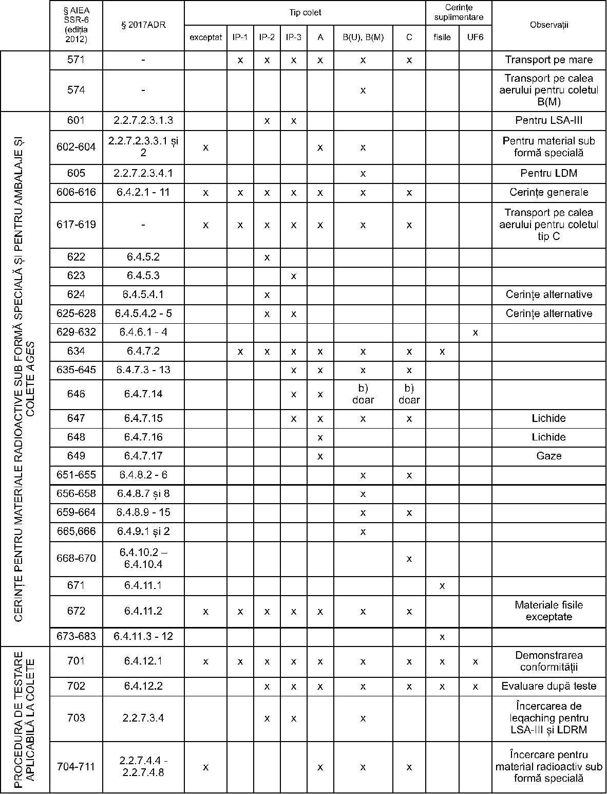 Paragrafele corespunzătoare, aşa cum sunt indicate în anexa nr. 1 la normă, pentru coletul tip B(U), B(M) sau coletul tip C trebuie luate în considerare. |