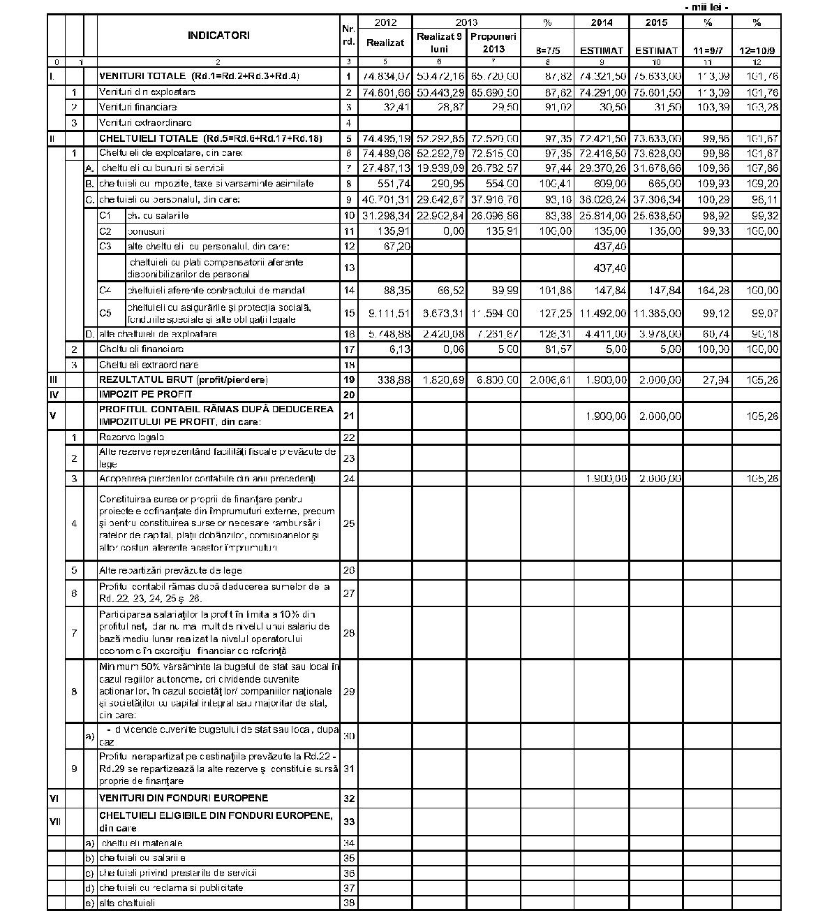 În temeiul art. 4 alin. (1) lit. b) din Ordonanţa Guvernului nr. 26/2013 privind întărirea disciplinei financiare la nivelul unor operatori economici la care statul sau unităţile administrativ-teritoriale sunt acţionari unici ori majoritari sau deţin direct ori indirect o participaţie majoritară, al art. 5 alin. (4) din Hotărârea Guvernului nr. 24/2013 privind organizarea şi funcţionarea Ministerului Transporturilor, cu modificările şi completările ulterioare, al art. 15 alin. (31) din Ordonanţa de urgenţă a Guvernului nr. 96/2012 privind stabilirea unor măsuri de reorganizare în cadrul administraţiei publice centrale şi pentru modificarea unor acte normative, aprobată cu modificări şi completări prin Legea nr. 71/2013, cu modificările şi completările ulterioare, şi al art. 12 din Hotărârea Guvernului nr. 10/2013 privind organizarea şi funcţionarea Ministerului Muncii, Familiei, Protecţiei Sociale şi Persoanelor Vârstnice, cu modificările şi completările ulterioare,ministrul transporturilor, ministrul delegat pentru buget şi ministrul muncii, familiei, protecţiei sociale şi persoanelor vârstnice emit următorul ordin: Articolul 1Se aprobă bugetul de venituri şi cheltuieli pe anul 2013 al Societăţii Comerciale „Întreţinere Mecanizată“ - S.A., prevăzut în anexa care face parte integrantă din prezentul ordin. Articolul 2 (1) Nivelul cheltuielilor totale aferente veniturilor totale prevăzute în bugetul de venituri şi cheltuieli reprezintă limite maxime şi nu poate fi depăşit decât în cazuri justificate, prin ordin comun al ministrului transporturilor, al ministrului delegat pentru buget şi al ministrului muncii, familiei, protecţiei sociale şi persoanelor vârstnice.(2) În cazul în care în execuţie se înregistrează depăşiri sau nerealizări ale veniturilor totale aprobate, operatorul economic poate efectua cheltuieli totale proporţional cu gradul de realizare a veniturilor totale, cu încadrarea în indicatorii de eficienţă aprobaţi. Articolul 3Prezentul ordin se publică în Monitorul Oficial al României, Partea I. Articolul 4Societatea Comercială „Întreţinere Mecanizată“ - S.A. va duce la îndeplinire prevederile prezentului ordin. p. Ministrul transporturilor, Manuel Marian Donescu, secretar de stat Ministrul delegat pentru buget, Liviu Voinea Ministrul muncii, familiei, protecţiei sociale şi persoanelor vârstnice, Mariana Câmpeanu ANEXĂ*)*) Anexa este reprodusă în facsimil.MINISTERUL TRANSPORTURILOR Societatea Comercială „Întreţinere Mecanizată“ - S.A. Bucureşti, Str. Inovatorilor nr. 36, sectorul 1 Cod unic de înregistrare RO 16896005 BUGETUL DE VENITURI ŞI CHELTUIELI pe anul 2013