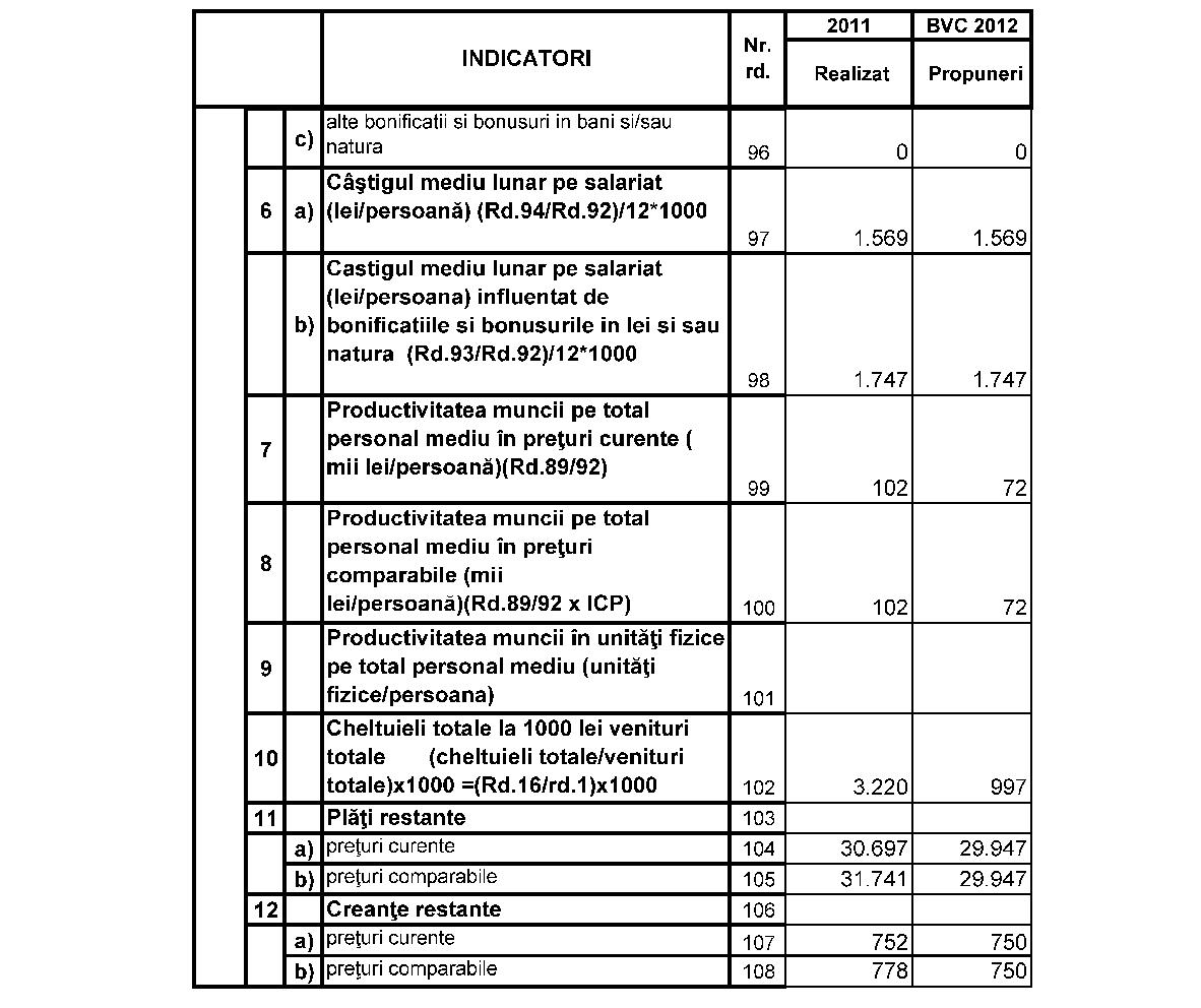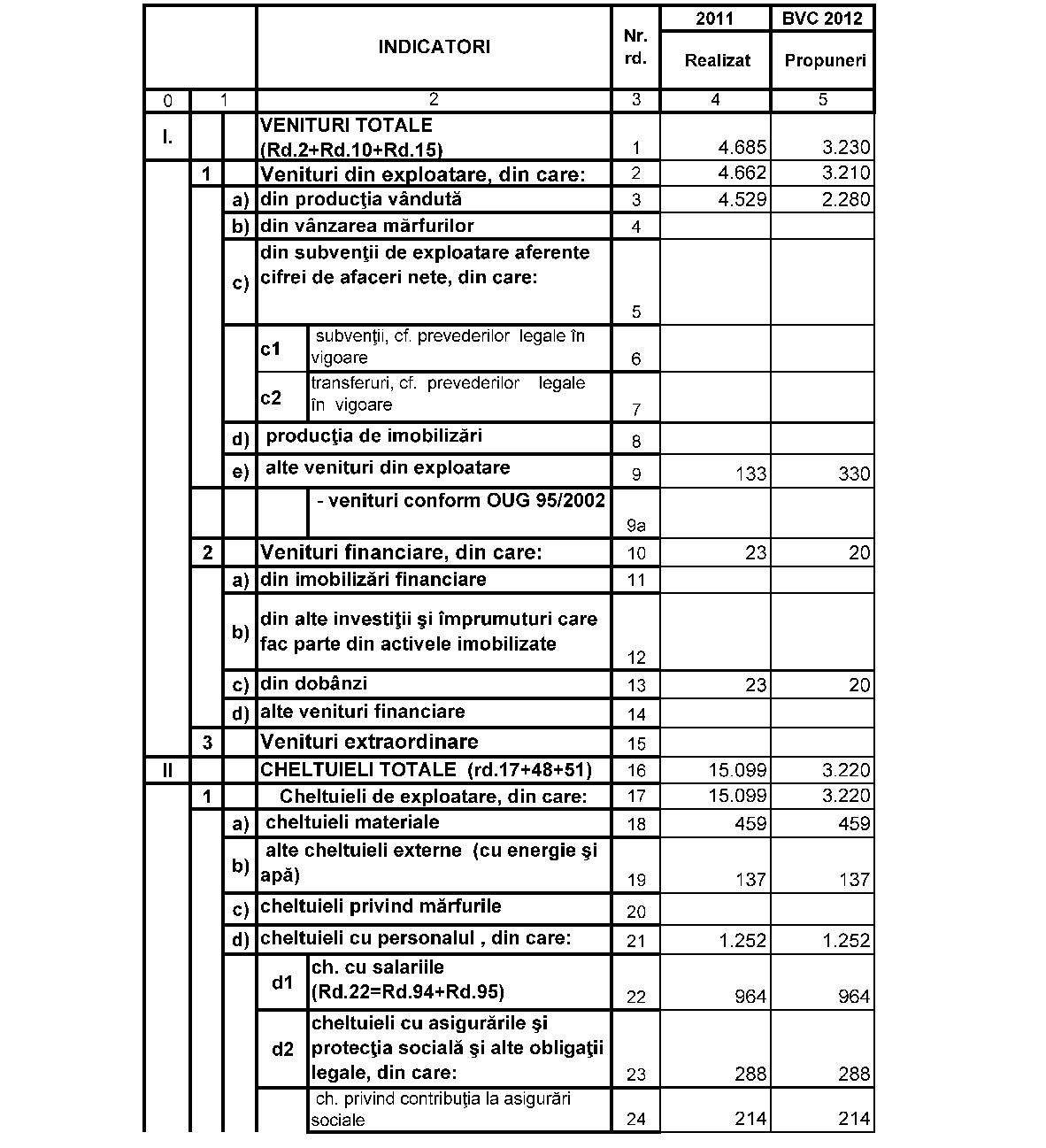 Având în vedere prevederile art. 15 alin. (2) din Ordonanţa de urgenţă a Guvernului nr. 37/2008 privind reglementarea unor măsuri financiare în domeniul bugetar, aprobată cu modificări prin Legea nr. 275/2008, cu modificările şi completările ulterioare, şi ale art. 6 alin. (8) din Ordonanţa de urgenţă a Guvernului nr. 79/2008 privind măsuri economico-financiare la nivelul unor operatori economici, aprobată cu modificări şi completări prin Legea nr. 203/2009, cu modificările şi completările ulterioare,în conformitate cu prevederile art. 9 alin. (4) din Hotărârea Guvernului nr. 1.634/2009 privind organizarea şi funcţionarea Ministerului Economiei, Comerţului şi Mediului de Afaceri, cu modificările şi completările ulterioare, ale art. 10 alin. (4) din Hotărârea Guvernului nr. 34/2009 privind organizarea şi funcţionarea Ministerului Finanţelor Publice, cu modificările şi completările ulterioare, şi ale art. 12 din Hotărârea Guvernului nr. 11/2009 privind organizarea şi funcţionarea Ministerului Muncii, Familiei şi Protecţiei Sociale, cu modificările şi completările ulterioare,având în vedere prevederile Legii bugetului de stat pe anul 2012 nr. 293/2011, cu modificările şi completările ulterioare,ministrul economiei, comerţului şi mediului de afaceri, viceprim-ministrul, ministrul finanţelor publice, şi ministrul muncii, familiei şi protecţiei sociale emit următorul ordin: Articolul 1Se aprobă bugetul de venituri şi cheltuieli pe anul 2012 pentru Societatea Comercială ICEMENERG SERVICE - S.A., filială a Companiei Naţionale de Transport al Energiei Electrice „Transelectrica“ - S.A., prevăzut în anexa care face parte integrantă din prezentul ordin. Articolul 2(1) Nivelul cheltuielilor totale aferente veniturilor totale înscrise în bugetul de venituri şi cheltuieli, precum şi nivelul cheltuielilor în structură reprezintă limită maximă şi nu pot fi depăşite decât în cazuri justificate, prin aprobarea de către Ministerul Economiei, Comerţului şi Mediului de Afaceri, Ministerul Finanţelor Publice şi Ministerul Muncii, Familiei şi Protecţiei Sociale a unui ordin de rectificare a bugetului de venituri şi cheltuieli.(2) În cazul în care în execuţie se înregistrează nerealizări ale veniturilor totale aprobate, Societatea Comercială ICEMENERG SERVICE - S.A. poate efectua cheltuieli totale proporţional cu gradul de realizare a veniturilor totale, cu încadrarea în indicatorii de eficienţă aprobaţi.p. Ministrul economiei, comerţului şi mediului de afaceri, Gelu-Ştefan Diaconu, secretar de stat Viceprim-ministru, ministrul finanţelor publice, Florin Georgescu Ministrul muncii, familiei şi protecţiei sociale, Mariana Câmpeanu ANEXĂ*)*) Anexa este reprodusă în facsimil.MINISTERUL ECONOMIEI, COMERŢULUI ŞI MEDIULUI DE AFACERI Operatorul economic: Societatea Comercială ICEMENERG SERVICE - S.A. Sediul/Adresa: Bd. Energeticienilor nr. 8 Cod unic de înregistrare 15689117 BUGETUL DE VENITURI ŞI CHELTUIELI pe anul 2012 - mii lei -