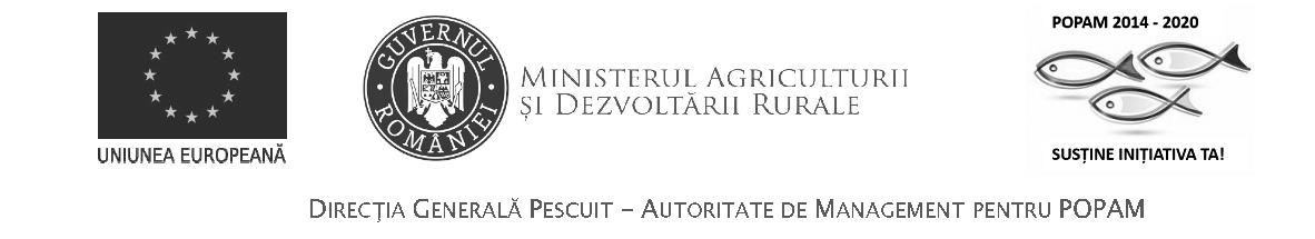 Având în vedere Referatul de aprobare al Direcţiei generale pescuit - Autoritatea de management pentru POPAM nr. 311.629 din 24.07.2017,în baza prevederilor:Regulamentului (UE) nr. 1.303/2013 al Parlamentului European şi al Consiliului din 17 decembrie 2013 de stabilire a unor dispoziţii comune privind Fondul european de dezvoltare regională, Fondul social european, Fondul de coeziune, Fondul european agricol pentru dezvoltare rurală şi Fondul european pentru pescuit şi afaceri maritime, precum şi de stabilire a unor dispoziţii generale privind Fondul european de dezvoltare regională, Fondul social european, Fondul de coeziune şi Fondul european pentru pescuit şi afaceri maritime şi de abrogare a Regulamentului (CE) nr. 1.083/2006 al Consiliului, cu modificările şi completările ulterioare;