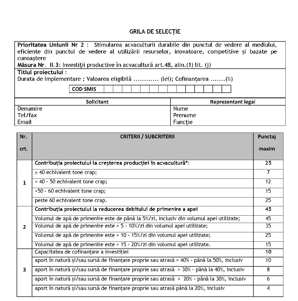 privind modificarea anexei nr. 5 la Ghidul solicitantului aferent măsurii II.3 „Investiţii productive în acvacultură - eficienţa resurselor, reducerea utilizării de apă şi substanţe chimice, sisteme de recirculare pentru reducerea la minimum a utilizării apei" din Programul operaţional pentru pescuit şi afaceri maritime 2014-2020, aprobat prin Ordinul ministrului agriculturii şi dezvoltării rurale nr. 167/2017
