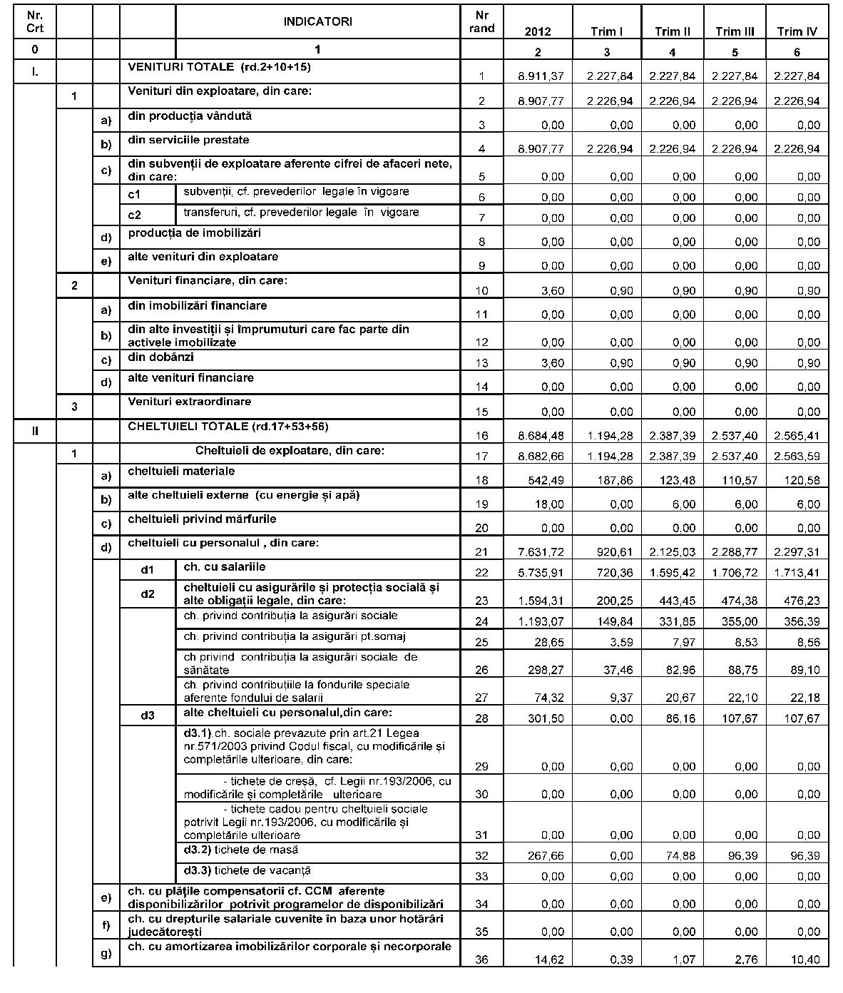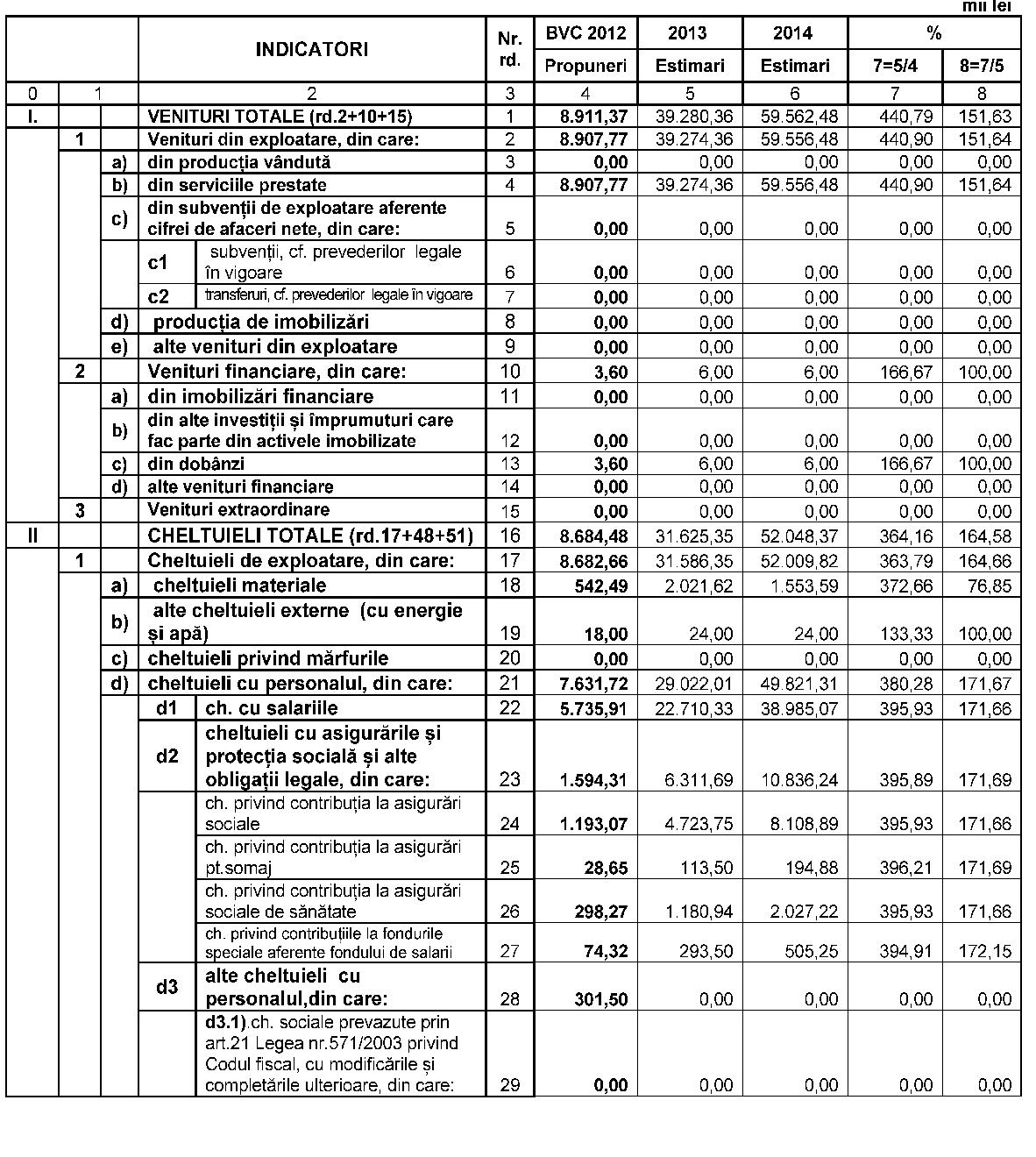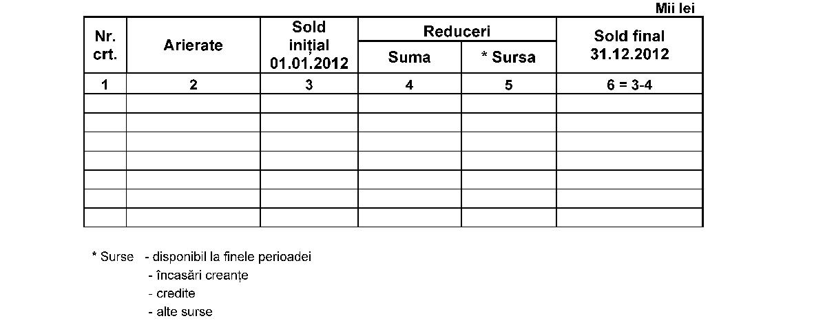 Pentru aplicarea prevederilor Legii bugetului de stat pe anul 2012 nr. 293/2011 şi ale art. 15 alin. (2) din Ordonanţa de urgenţă a Guvernului nr. 37/2008 privind reglementarea unor măsuri financiare în domeniul bugetar, aprobată cu modificări prin Legea nr. 275/2008, cu modificările şi completările ulterioare,având în vedere prevederile Legii nr. 329/2009 privind reorganizarea unor autorităţi şi instituţii publice, raţionalizarea cheltuielilor publice, susţinerea mediului de afaceri şi respectarea acordurilor-cadru cu Comisia Europeană şi Fondului Monetar Internaţional, cu modificările şi completările ulterioare, şi ale Ordonanţei de urgenţă a Guvernului nr. 79/2008 privind măsuri economico-financiare la nivelul unor operatori economici, aprobată cu modificări şi completări prin Legea nr. 203/2009, cu modificările şi completările ulterioare,în temeiul prevederilor art. 33 alin. (1) din Legea nr. 346/2006 privind organizarea şi funcţionarea Ministerului Apărării Naţionale, cu modificările ulterioare, ale art. 10 alin. (4) din Hotărârea Guvernului nr. 34/2009 privind organizarea şi funcţionarea Ministerului Finanţelor Publice, cu modificările şi completările ulterioare, şi ale art. 12 din Hotărârea Guvernului nr. 11/2009 privind organizarea şi funcţionarea Ministerului Muncii, Familiei şi Protecţiei Sociale, cu modificările şi completările ulterioare,ministrul apărării naţionale, ministrul finanţelor publice şi ministrul muncii, familiei şi protecţiei sociale emit prezentul ordin. Articolul 1(1) Se aprobă bugetul de venituri şi cheltuieli pe anul 2012 al Societăţii Comerciale RO-ARMYSECURITY - S.A., filială a Companiei Naţionale ROMTEHNICA - S.A., prevăzut în anexa nr. 1.(2) Repartizarea pe trimestre a indicatorilor economico-financiari pentru anul 2012, programul de investiţii şi dotări, dinamica stocurilor existente la data de 1 ianuarie 2012, programul de reducere a arieratelor, cu prezentarea surselor, precum şi situaţia datoriilor rezultate din împrumuturile contractate cu scadenţă în anul curent sunt prevăzute în anexele nr. 2-6. Articolul 2(1) Nivelul cheltuielilor totale aferente veniturilor totale prevăzute în bugetul de venituri şi cheltuieli reprezintă limită maximă şi nu poate fi depăşit decât în cazuri justificate, la propunerea Ministerului Apărării Naţionale, cu avizul Ministerului Finanţelor Publice şi al Ministerului Muncii, Familiei şi Protecţiei Sociale.(2) Orice depăşire a veniturilor şi cheltuielilor totale este admisă numai prin rectificarea bugetului de venituri şi cheltuieli, potrivit prevederilor legale în vigoare.(3) În cazul în care în execuţie se înregistrează nerealizări ale veniturilor totale aprobate, Societatea Comercială RO-ARMYSECURITY - S.A. poate efectua cheltuieli proporţional cu gradul de realizare a veniturilor totale, cu încadrarea în indicatorii de eficienţă aprobaţi. Articolul 3Anexele nr. 1-6 fac parte integrantă din prezentul ordin. Articolul 4Prezentul ordin se publică în Monitorul Oficial al României, Partea I. Ministrul apărării naţionale, Gabriel Oprea p. Ministrul finanţelor publice, Gheorghe Gherghina, secretar de stat Ministrul muncii, familiei şi protecţiei sociale, Claudia Boghicevici ANEXA Nr. 1AUTORITATEA: MINISTERUL APĂRĂRII NAŢIONALE Operatorul economic: Societatea Comercială RO-ARMYSECURITY - S.A. Sediul/Adresa: Bucureşti, sectorul 6, Calea Plevnei nr. 141A, camerele 5 şi 9 Cod unic de înregistrare: 29136150 BUGETUL DE VENITURI ŞI CHELTUIELI PE ANUL 2012 ANEXA Nr. 2REPARTIZAREA PE TRIMESTRE A INDICATORILOR ECONOMICO-FINANCIARI PENTRU ANUL 2012 ANEXA Nr. 3PROGRAMUL DE INVESTIŢII ŞI DOTĂRI ANEXA Nr. 4DINAMICA STOCURILOR EXISTENTE LA DATA DE 1 IANUARIE 2012 ANEXA Nr. 5PROGRAMUL DE REDUCERE A ARIERATELOR, CU PREZENTAREA SURSELOR ANEXA Nr. 6SITUAŢIA DATORIILOR REZULTATE DIN ÎMPRUMUTURILE CONTRACTATE CU SCADENŢĂ ÎN ANUL CURENT