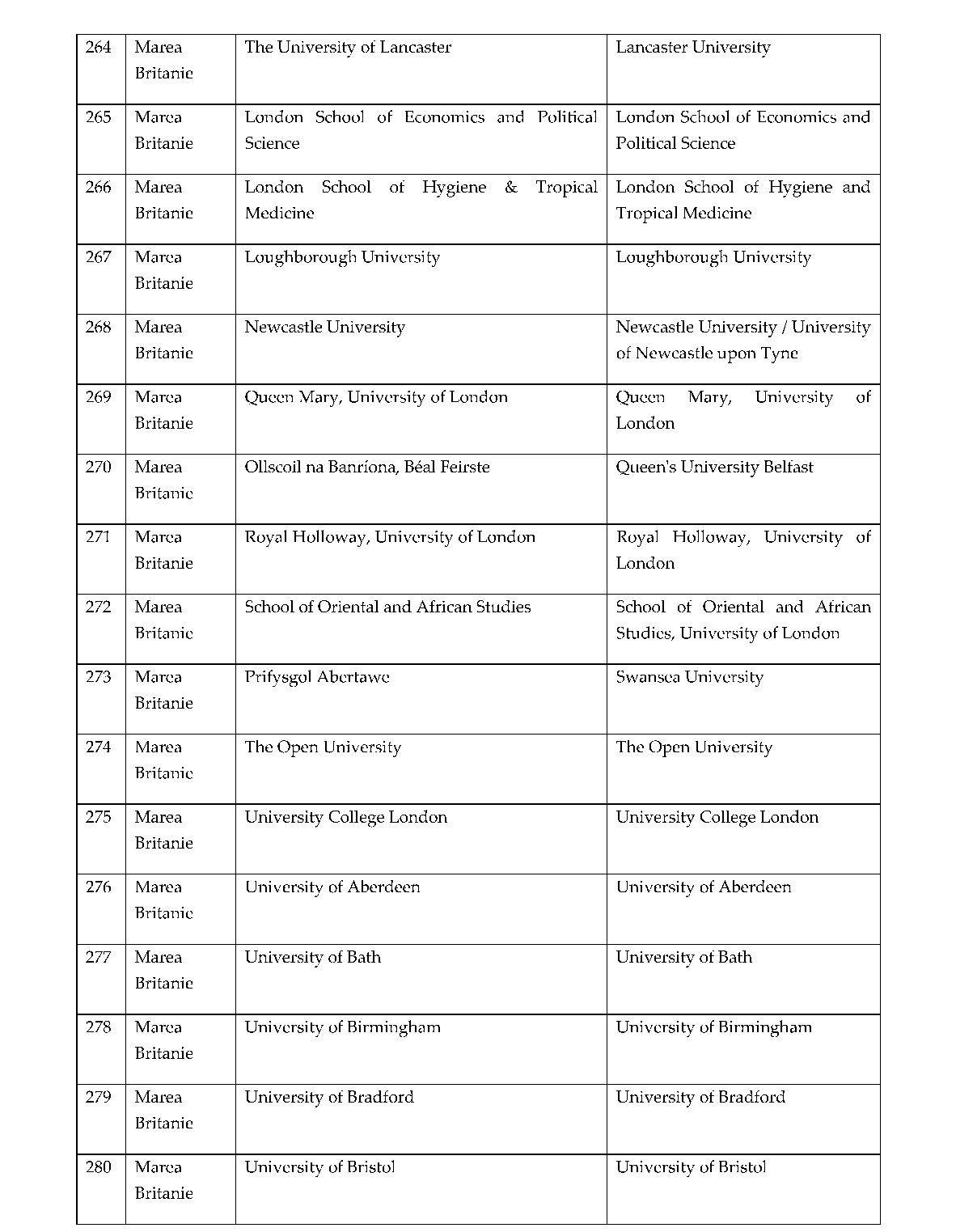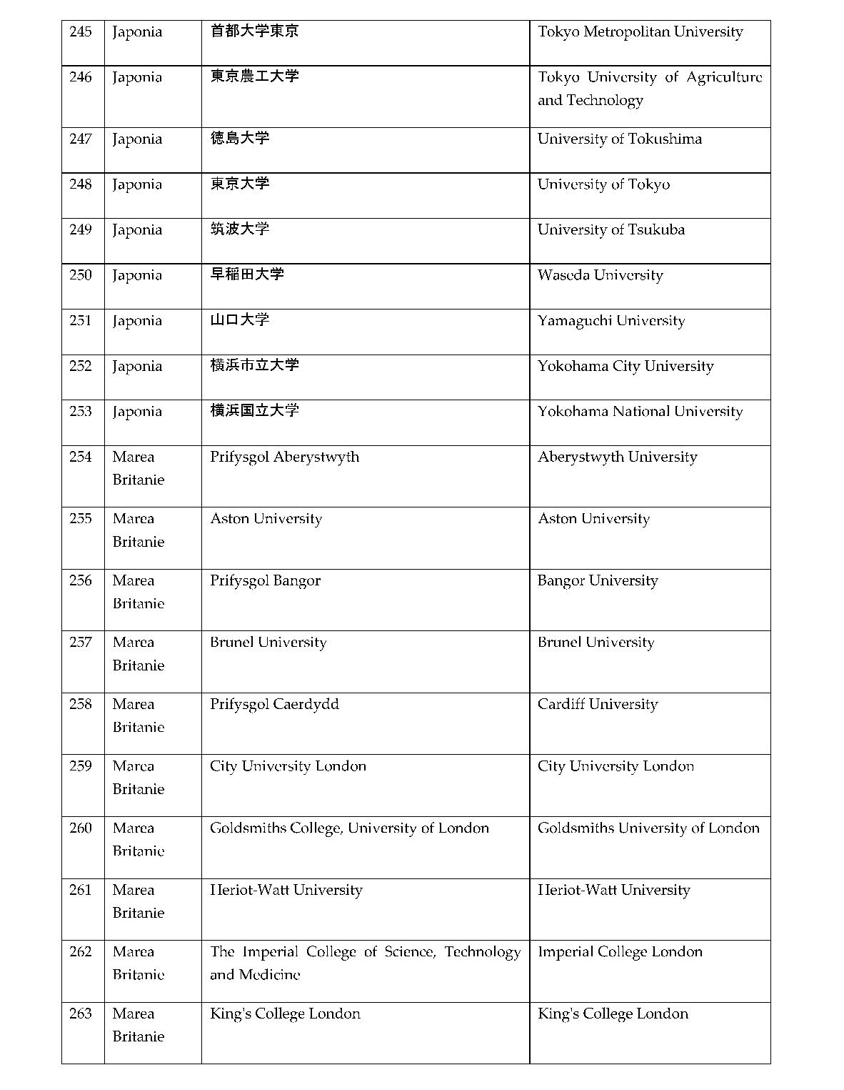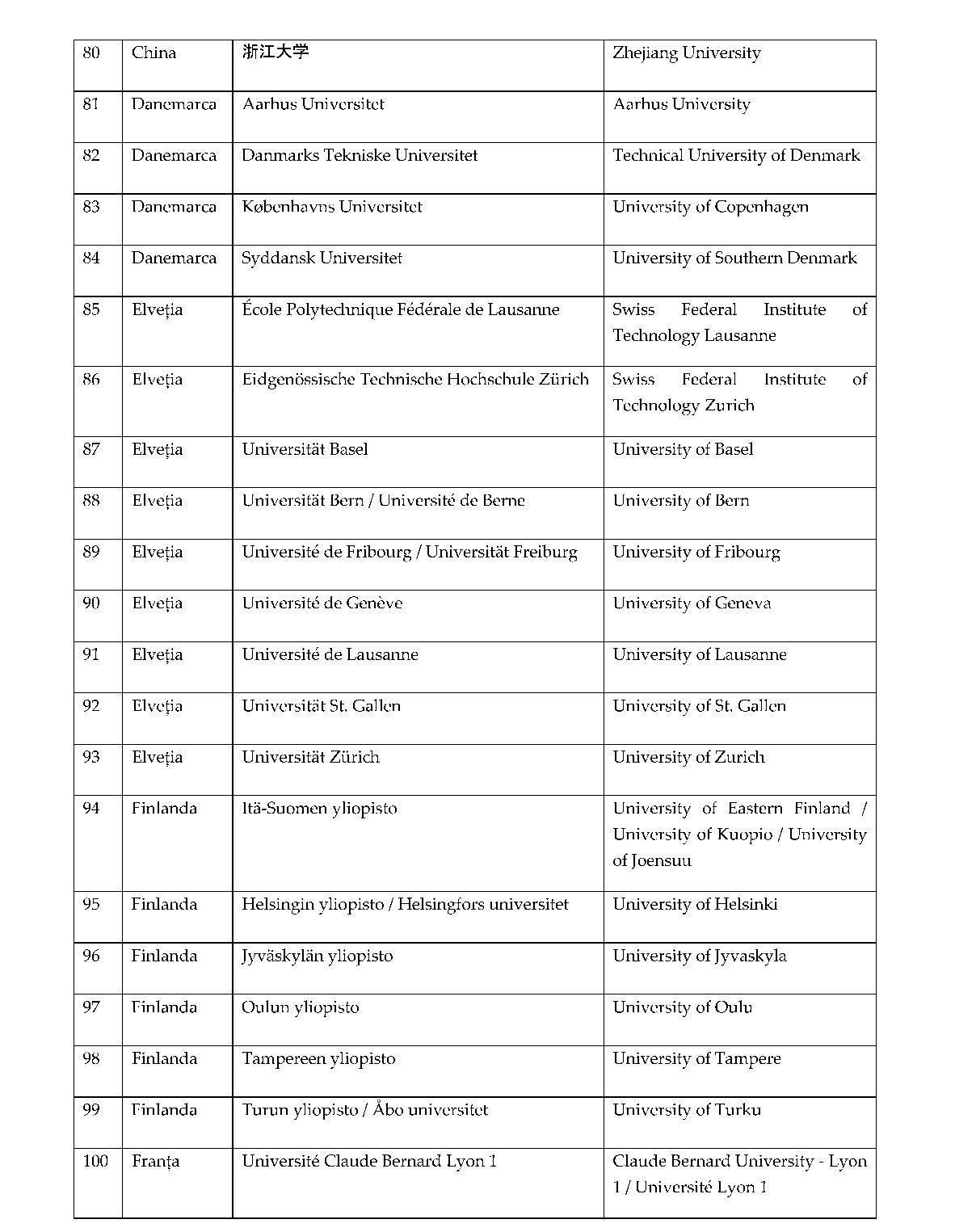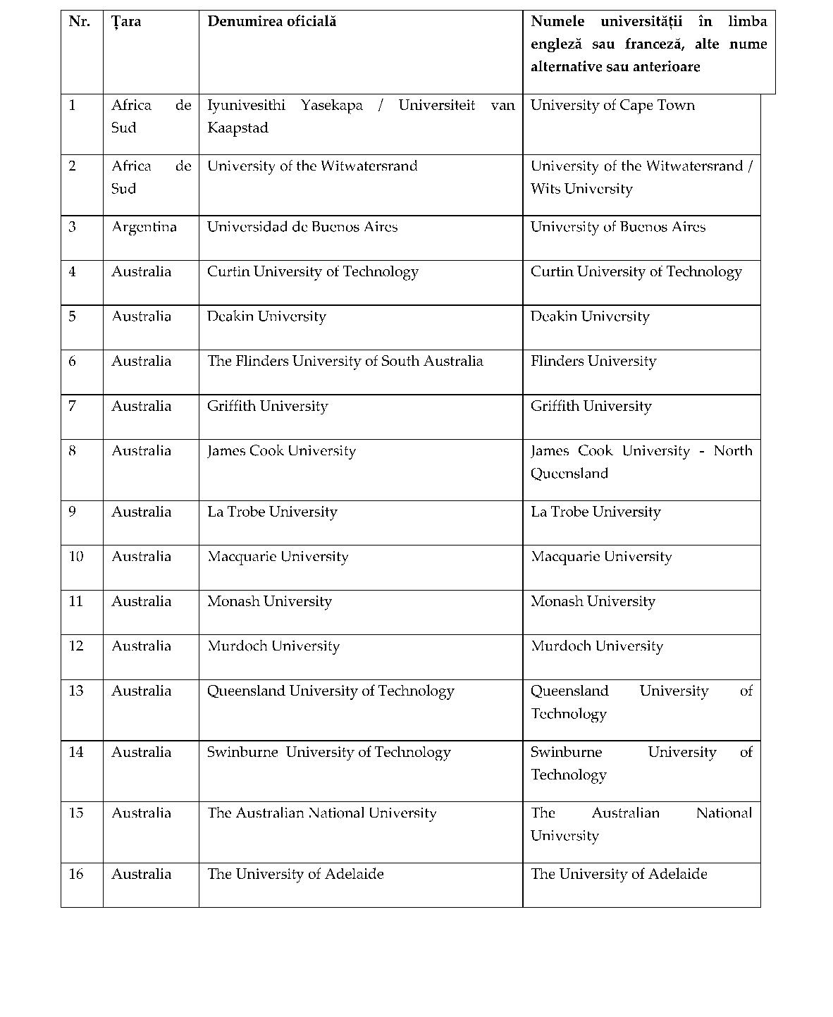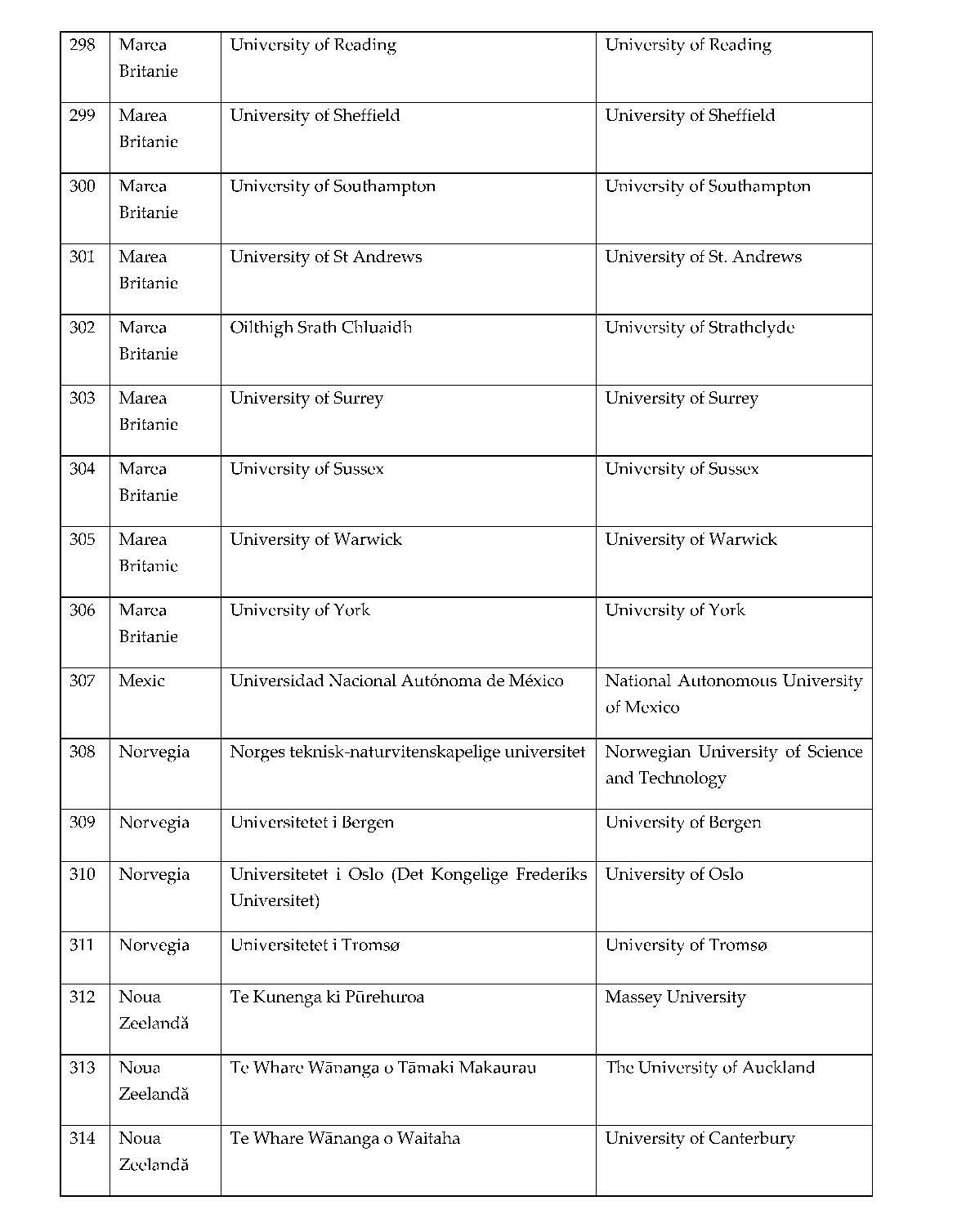 În baza art. 216 alin. (2) lit. f) din Legea educaţiei naţionale nr. 1/2011, cu modificările şi completările ulterioare,în temeiul Hotărârii Guvernului nr. 536/2011 privind organizarea şi funcţionarea Ministerului Educaţiei, Cercetării, Tineretului şi Sportului, cu modificările şi completările ulterioare,ministrul educaţiei, cercetării, tineretului şi sportului emite prezentul ordin. Articolul 1Se aprobă Lista universităţilor de prestigiu din alte state, menţionată la art. 216 alin. (2) lit. f) din Legea educaţiei naţionale nr. 1/2011, cu modificările şi completările ulterioare, prevăzută în anexa*) care face parte integrantă din prezentul ordin.______*) Anexa este reprodusă în facsimil. Articolul 2Lista prevăzută la art. 1 va fi reactualizată de Ministerul Educaţiei, Cercetării, Tineretului şi Sportului, conform prevederilor art. 216 alin. (2) lit. f) din Legea nr. 1/2011, cu modificările şi completările ulterioare. Articolul 3Consiliul Naţional de Atestare a Titlurilor, Diplomelor şi Certificatelor Universitare, Direcţia generală învăţământ superior, Centrul Naţional de Recunoaştere şi Echivalare a Diplomelor şi instituţiile de învăţământ superior duc la îndeplinire prevederile prezentului ordin. Articolul 4Prezentul ordin se publică în Monitorul Oficial al României, Partea I. Ministrul educaţiei, cercetării, tineretului şi sportului, Daniel Petru Funeriu ANEXĂLISTA universităţilor de prestigiu din alte state