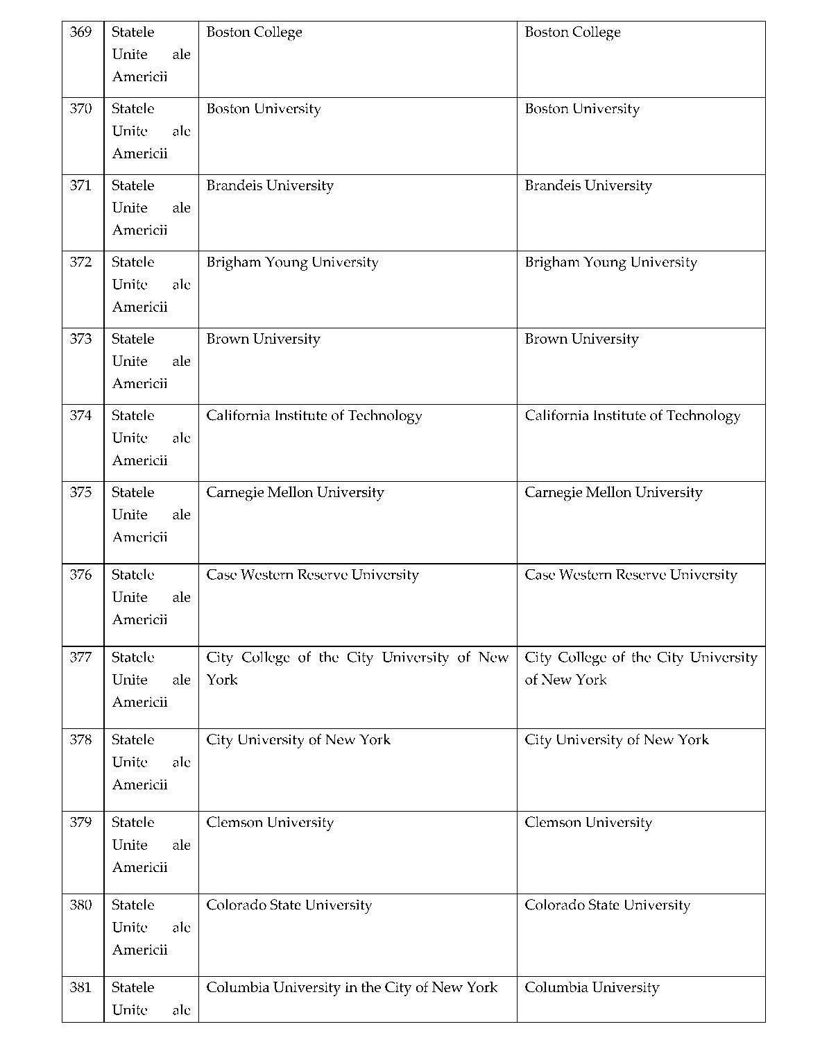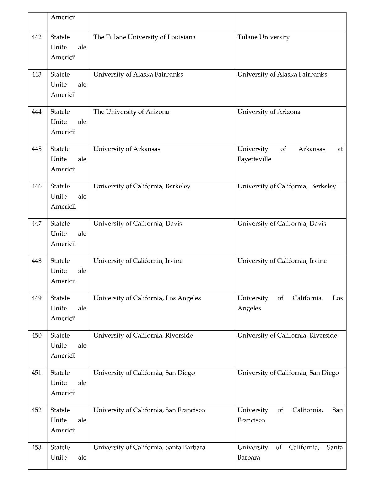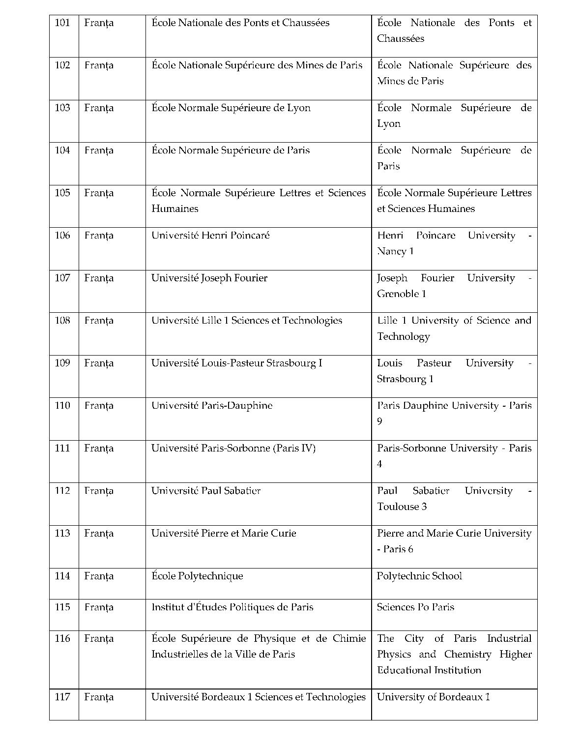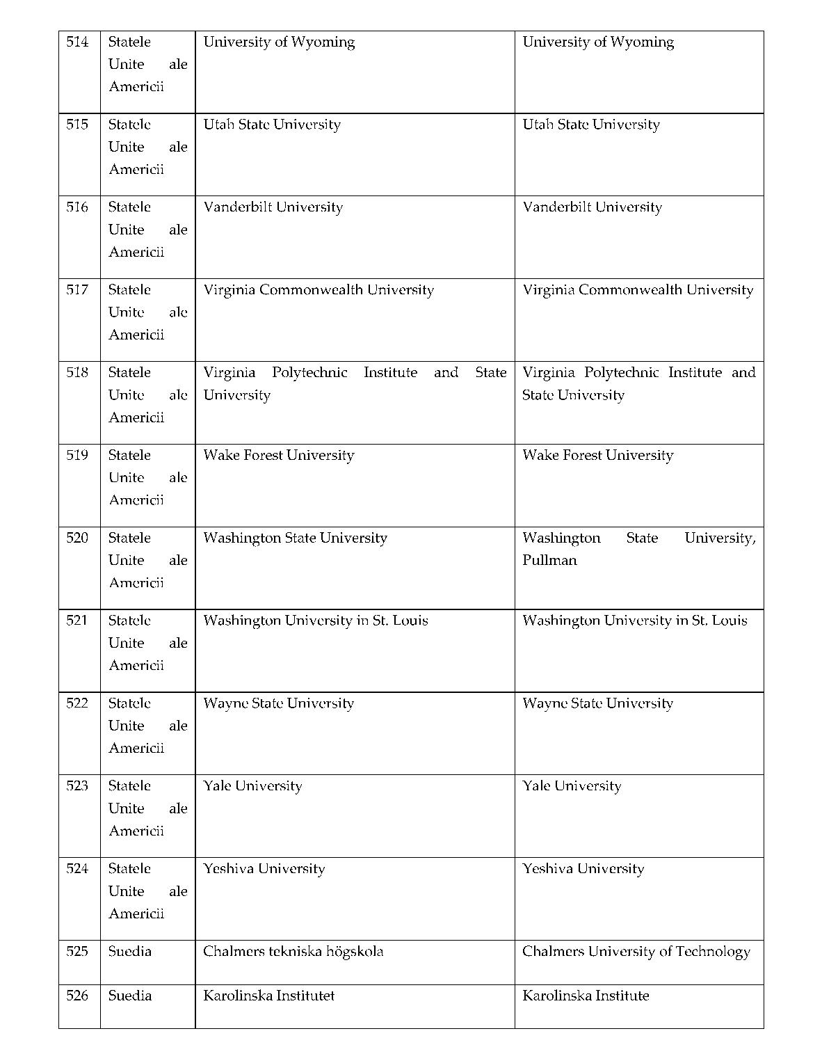privind aprobarea Listei universităţilor de prestigiu din alte state