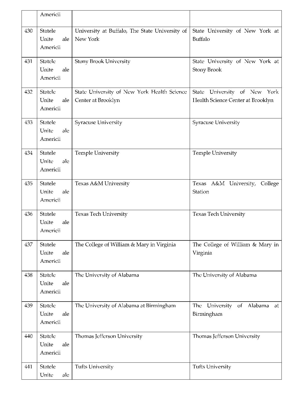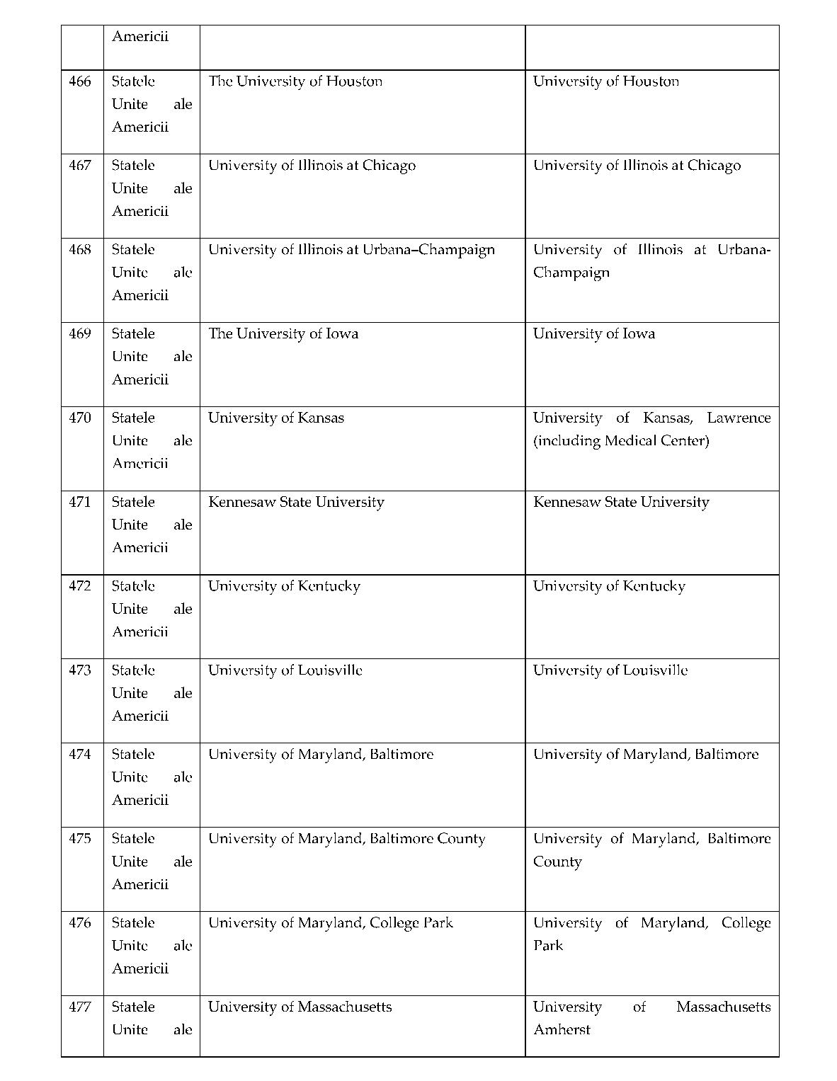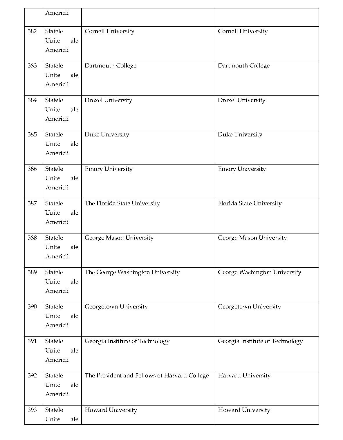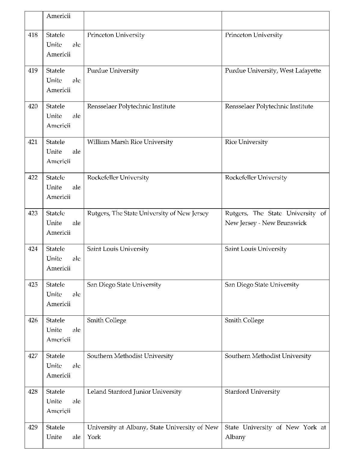 privind aprobarea Listei universităţilor de prestigiu din alte state