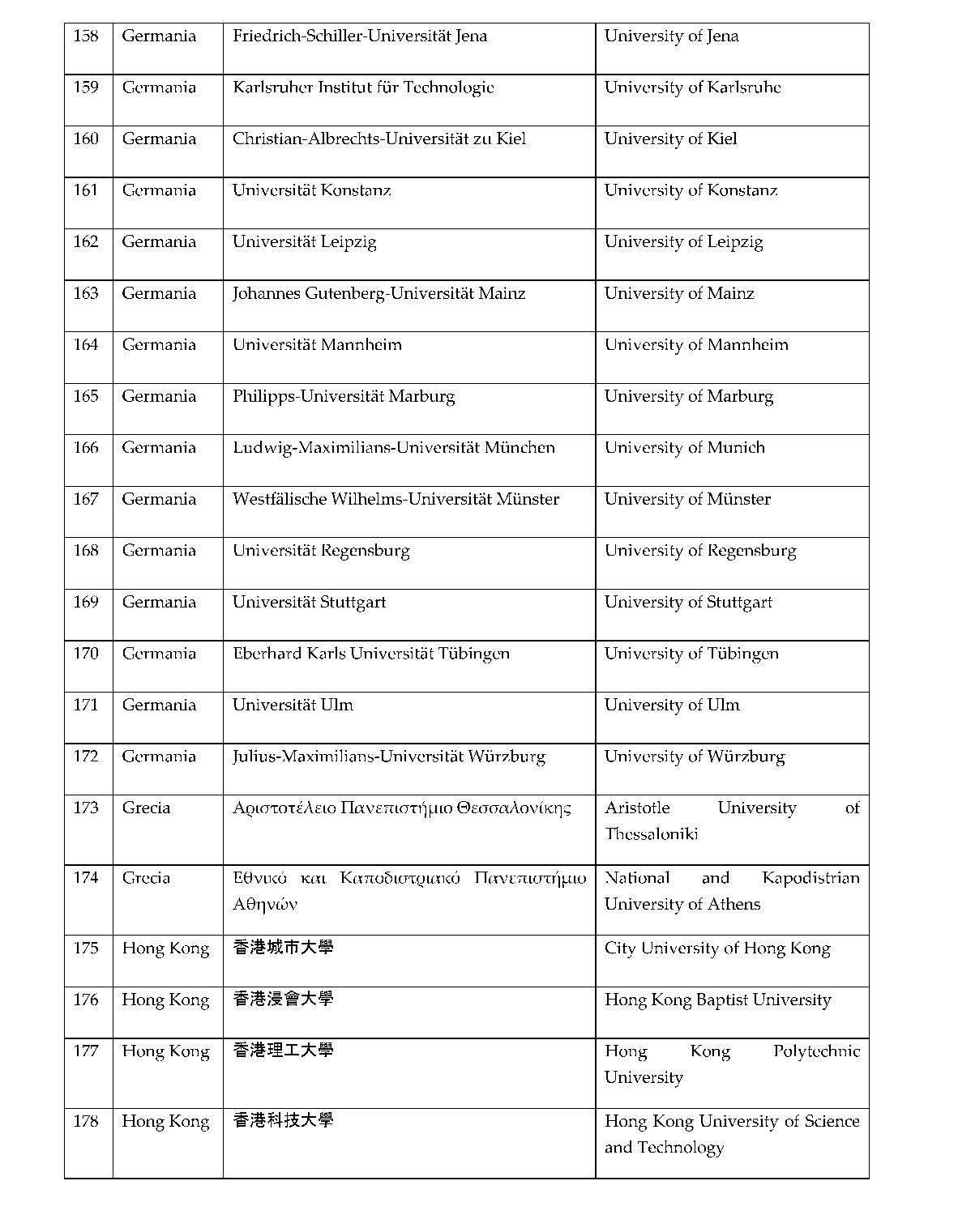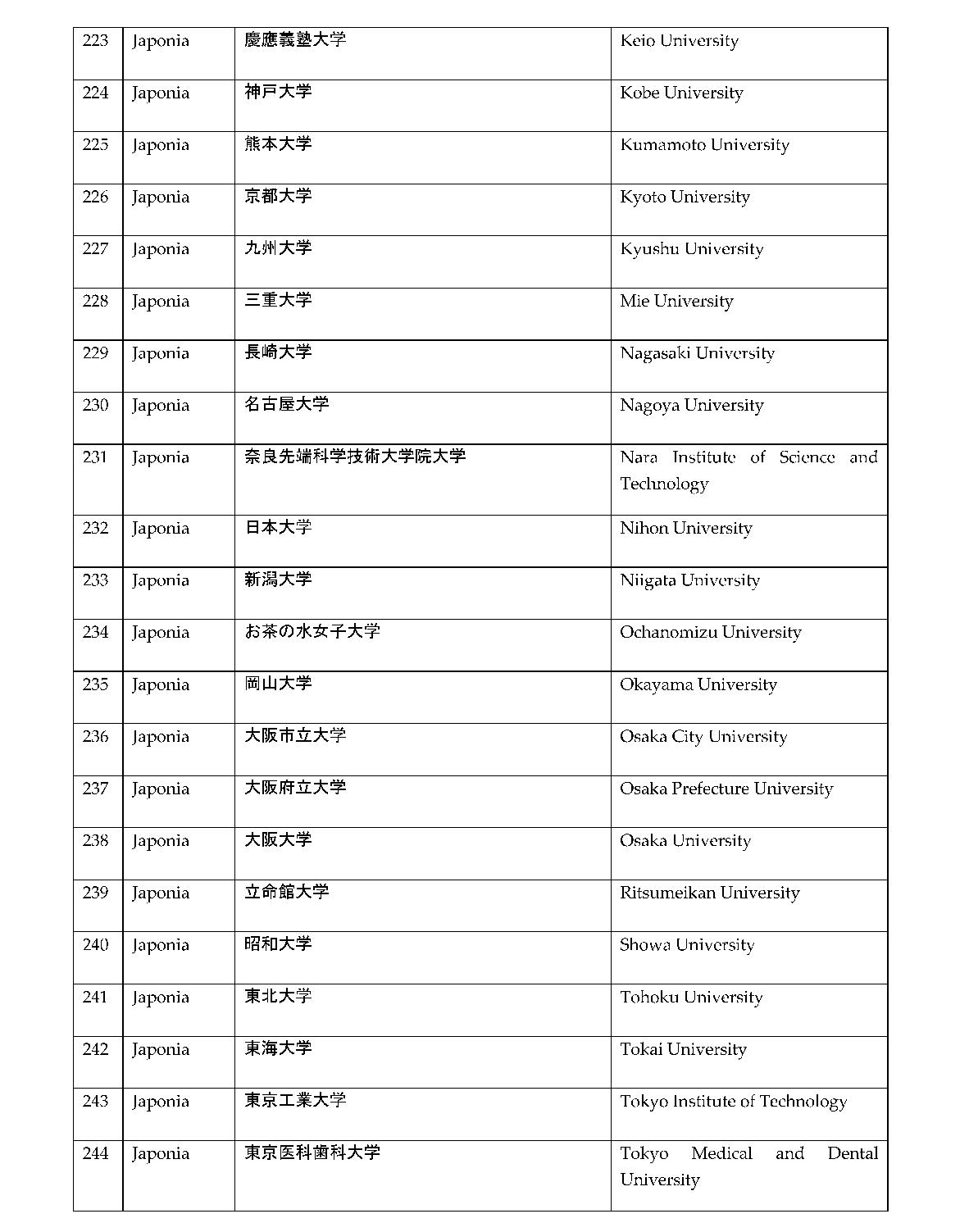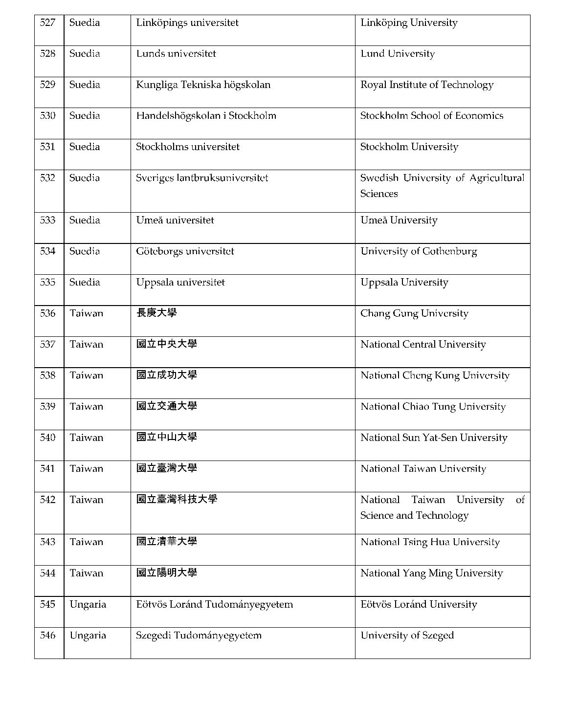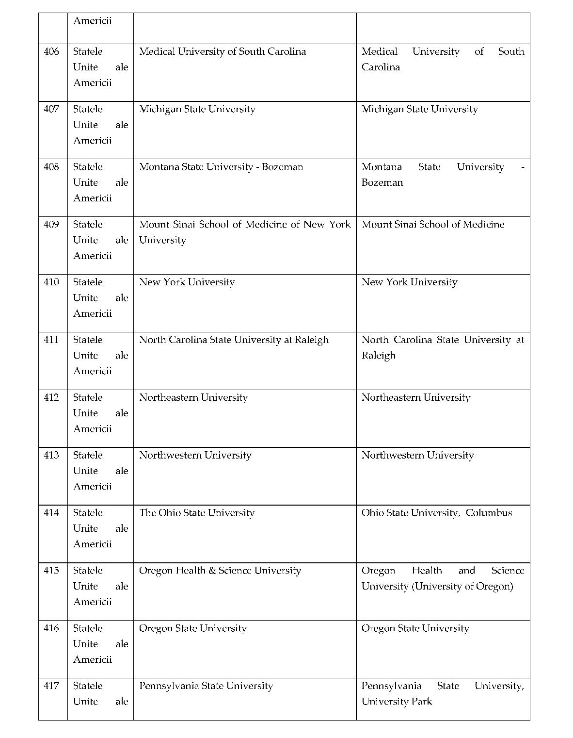 privind aprobarea Listei universităţilor de prestigiu din alte state