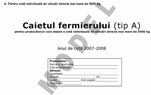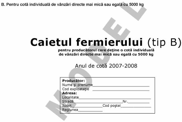 caietului fermierului, pentru producătorii cu cotă individuală de vanzări directe mai mică sau egală cu 5000 k