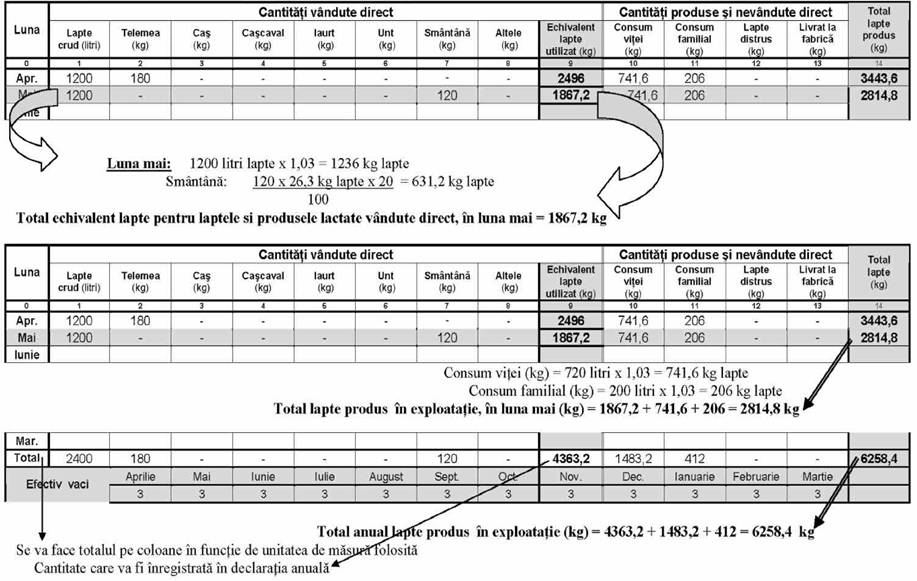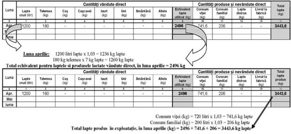 Total lapte produs (kg) = Echivalent lapte utilizat