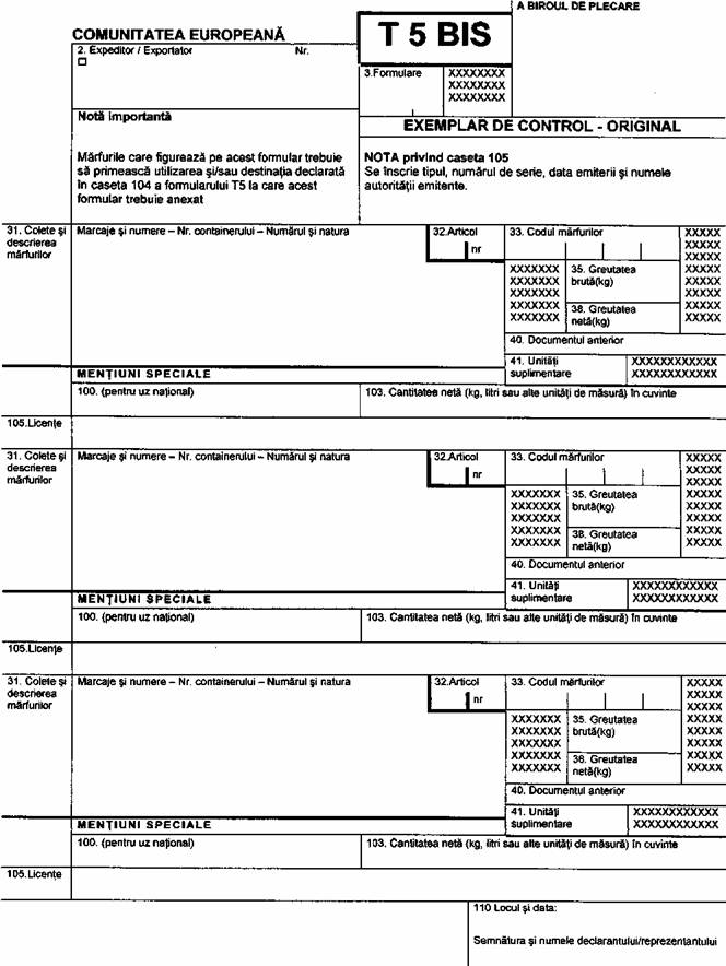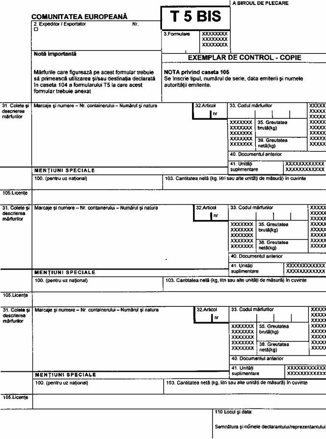 aceeaşi utilizare şi/sau destinaţie, indicată în caseta 104 a Exemplarului de Control T 5 la