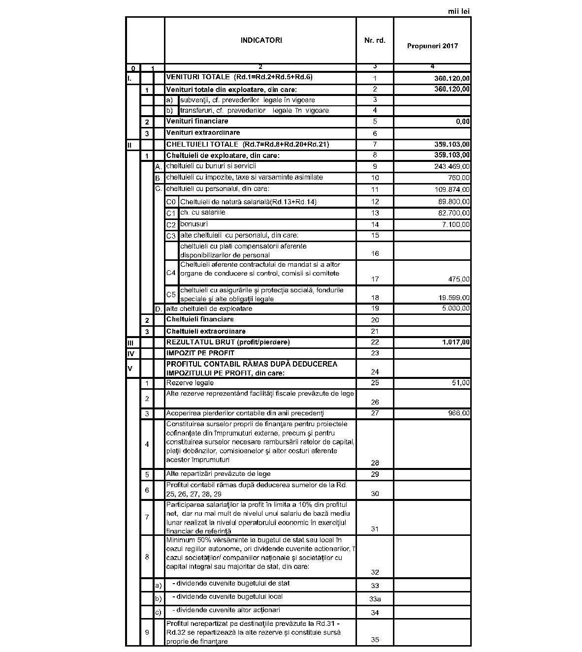 În temeiul art. 4 alin. (1) lit. b) din Ordonanţa Guvernului nr. 26/2013 privind întărirea disciplinei financiare la nivelul unor operatori economici la care statul sau unităţile administrativ-teritoriale sunt acţionari unici ori majoritari sau deţin direct ori indirect o participaţie majoritară, aprobată cu completări prin Legea nr. 47/2014, cu modificările şi completările ulterioare, al art. 5 alin. (4) din Hotărârea Guvernului nr. 21/2015 privind organizarea şi funcţionarea Ministerului Transporturilor, cu modificările şi completările ulterioare, al art. 10 alin. (4) din Hotărârea Guvernului nr. 34/2009 privind organizarea şi funcţionarea Ministerului Finanţelor Publice, cu modificările şi completările ulterioare, şi al art. 17 alin. (3) din Hotărârea Guvernului nr. 12/2017 privind organizarea şi funcţionarea Ministerului Muncii şi Justiţiei Sociale, ministrul transporturilor, ministrul finanţelor publice şi ministrul muncii şi justiţiei sociale emit următorul ordin: Articolul 1Se aprobă bugetul de venituri şi cheltuieli pe anul 2017 al Societăţii Comerciale „Electrificare CFR" - S.A., filiala Companiei Naţionale de Căi Ferate „C.F.R." - S.A., prevăzut în anexa care face parte integrantă din prezentul ordin. Articolul 2Prezentul ordin se publică în Monitorul Oficial al României, Partea I. Articolul 3 Societatea Comercială „Electrificare CFR" - S.A. va duce la îndeplinire prezentul ordin.Ministrul transporturilor,Alexandru-Răzvan CucMinistrul finanţelor publice,Viorel ŞtefanMinistrul muncii şi justiţiei sociale,Lia-Olguţa VasilescuANEXĂ*)*) Anexa este reprodusă în facsimilMINISTERUL TRANSPORTURILOR Operatorul economic: S.C. „Electrificare CFR" - S.A. Sediul/Adresa: bd. Dinicu Golescu nr. 38, sectorul 1, Bucureşti Cod unic de înregistrare 16828396 BUGETUL DE VENITURI ŞI CHELTUIELI pe anul 2017