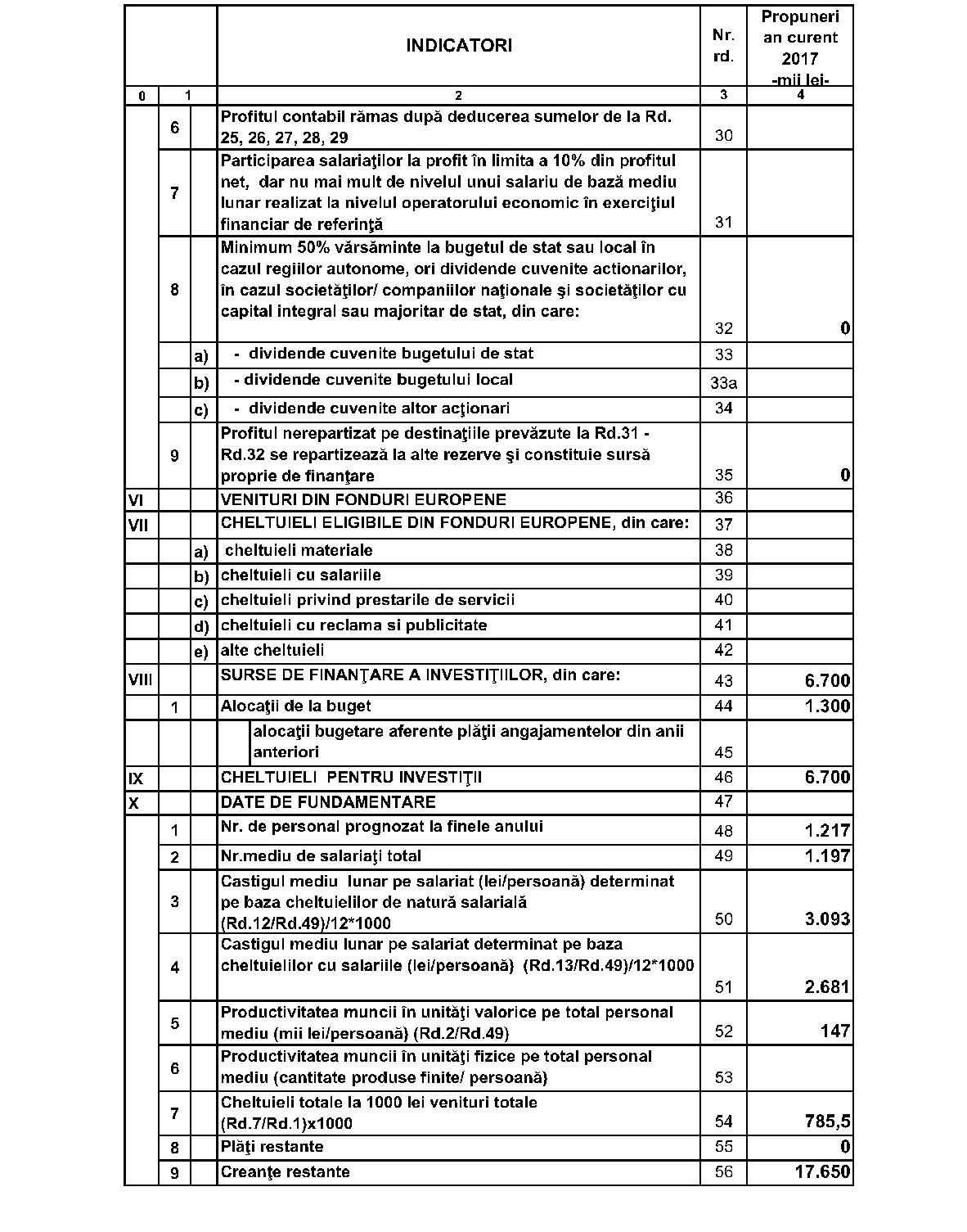 Având în vedere prevederile art. 4 alin. (1) lit. b) din Ordonanţa Guvernului nr. 26/2013 privind întărirea disciplinei financiare la nivelul unor operatori economici la care statul sau unităţile administrativ-teritoriale sunt acţionari unici ori majoritari sau deţin direct ori indirect o participaţie majoritară, aprobată cu completări prin Legea nr. 47/2014, cu modificările şi completările ulterioare,în temeiul prevederilor art. 10 alin. (6) din Hotărârea Guvernului nr. 27/2017 privind organizarea şi funcţionarea Ministerului Economiei, cu modificările ulterioare, ale art. 10 alin. (4) din Hotărârea Guvernului nr. 34/2009 privind organizarea şi funcţionarea Ministerului Finanţelor Publice, cu modificările şi completările ulterioare, şi ale art. 17 alin. (3) din Hotărârea Guvernului nr. 12/2017 privind organizarea şi funcţionarea Ministerului Muncii şi Justiţiei Sociale, ministrul economiei, ministrul finanţelor publice şi ministrul muncii şi justiţiei sociale emit următorul ordin: Articolul 1Se aprobă bugetul de venituri şi cheltuieli pe anul 2017 pentru Societatea „Uzina Mecanică Cugir" - S.A. - filiala Companiei Naţionale „ROMARMˮ - S.A., prevăzut în anexa care face parte integrantă din prezentul ordin. Articolul 2 Prezentul ordin se publică în Monitorul Oficial al României, Partea I.Ministrul economiei,Mihai TudoseMinistrul finanţelor publice,Viorel Ştefanp. Ministrul muncii şi justiţiei sociale,Adrian Marius Rîndunică,secretar de statANEXĂ*)*) Anexa este reprodusă în facsimil.MINISTERUL ECONOMIEI Societatea „Uzina Mecanică Cugirˮ - S.A. - filiala Companiei Naţionale „ROMARMˮ - S.A. Sediul/Adresa: Str. 21 Decembrie 1989 nr. 1, Cugir, judeţul Alba Cod unic de înregistrare: RO1769224, J01/40/1999 BUGETUL DE VENITURI ŞI CHELTUIELI pe anul 2017