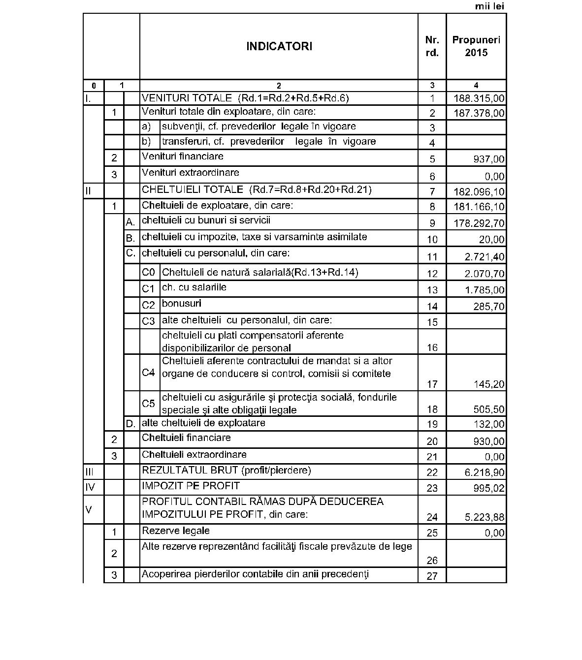 În temeiul art. 4 alin. (1) lit. b) din Ordonanţa Guvernului nr. 26/2013 privind întărirea disciplinei financiare la nivelul unor operatori economici la care statul sau unităţile administrativ-teritoriale sunt acţionari unici ori majoritari sau deţin direct ori indirect o participaţie majoritară, aprobată cu completări prin Legea nr. 47/2014 , cu modificările şi completările ulterioare, al art. 5 alin. (4) din Hotărârea Guvernului nr. 21/2015 privind organizarea şi funcţionarea Ministerului Transporturilor, cu modificările şi completările ulterioare, al art. 10 alin. (4) din Hotărârea Guvernului nr. 34/2009 privind organizarea şi funcţionarea Ministerului Finanţelor Publice, cu modificările şi completările ulterioare, şi al art. 18 alin. (3) din Hotărârea Guvernului nr. 344/2014 privind organizarea şi funcţionarea Ministerului Muncii, Familiei, Protecţiei Sociale şi Persoanelor Vârstnice, precum şi pentru modificarea unor acte normative, cu modificările şi completările ulterioare,ministrul transporturilor, ministrul finanţelor publice şi ministrul muncii, familiei, protecţiei sociale şi persoanelor vârstnice emit următorul ordin: Articolul 1Se aprobă bugetul de venituri şi cheltuieli pe anul 2015 al Societăţii Comerciale ROFERSPED - S.A., la care Societatea Naţională de Transport Feroviar de Marfă „CFR-Marfă“ - S.A. deţine o participaţie majoritară, prevăzut în anexa care face parte integrantă din prezentul ordin. Articolul 2Prezentul ordin se publică în Monitorul Oficial al României, Partea I. Articolul 3Societatea Comercială ROFERSPED - S.A. va duce la îndeplinire prevederile prezentului ordin. Ministrul transporturilor, Iulian-Ghiocel Matache Ministrul finanţelor publice, Eugen Orlando Teodorovici p. Ministrul muncii, familiei, protecţiei sociale şi persoanelor vârstnice, Gabriel Lungu, secretar de stat ANEXĂ*)__*) Anexa este reprodusă în facsimil.MINISTERUL TRANSPORTURILOR Societatea Comercială ROFERSPED - S.A. Str. Turda nr. 98, bl. 29 A, tronson 3, sectorul 1, Bucureşti CIF: RO9825567 BUGETUL DE VENITURI ŞI CHELTUIELI PE ANUL 2015