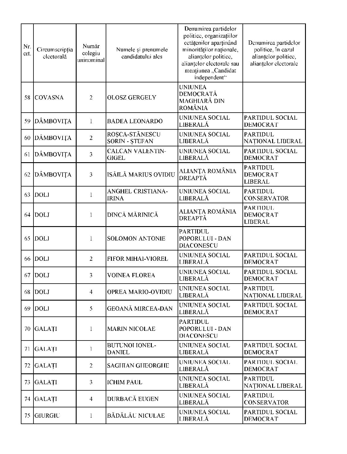 privind rezultatele alegerilor din 9 decembrie 2012 pentru Camera Deputaţilor şi Senat