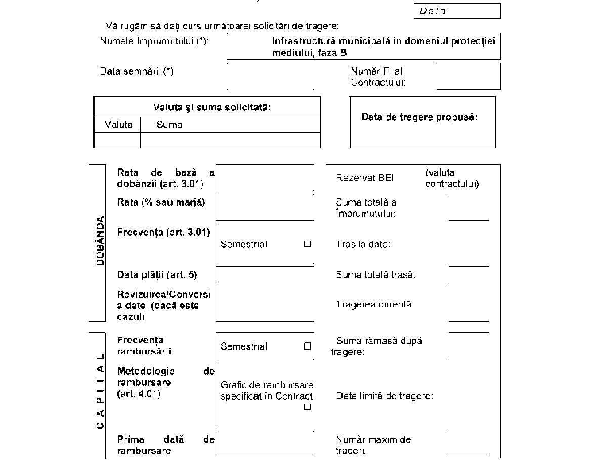 ANEXA D*)Formatul pentru Împrumutat Cerere de tragere Ţara - Proiectul